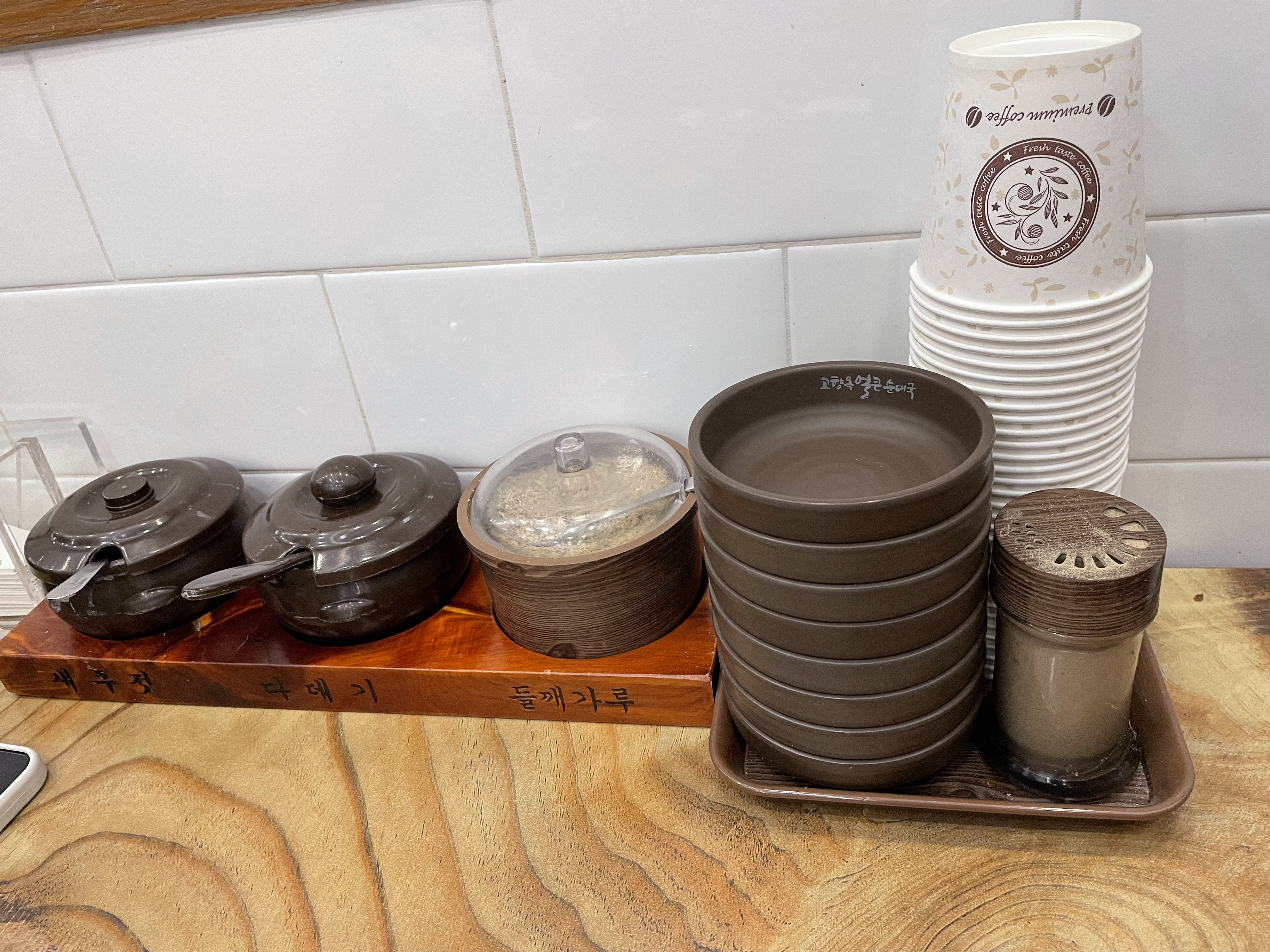 기본적으로 테이블 세팅이 자세하고 친절하게 갖추어져 있습니다. 새우젓과 다데기, 들깨가루가 준비되어 있습니다. 수저받침이 준비되어 있는 것도 좋았어요.
