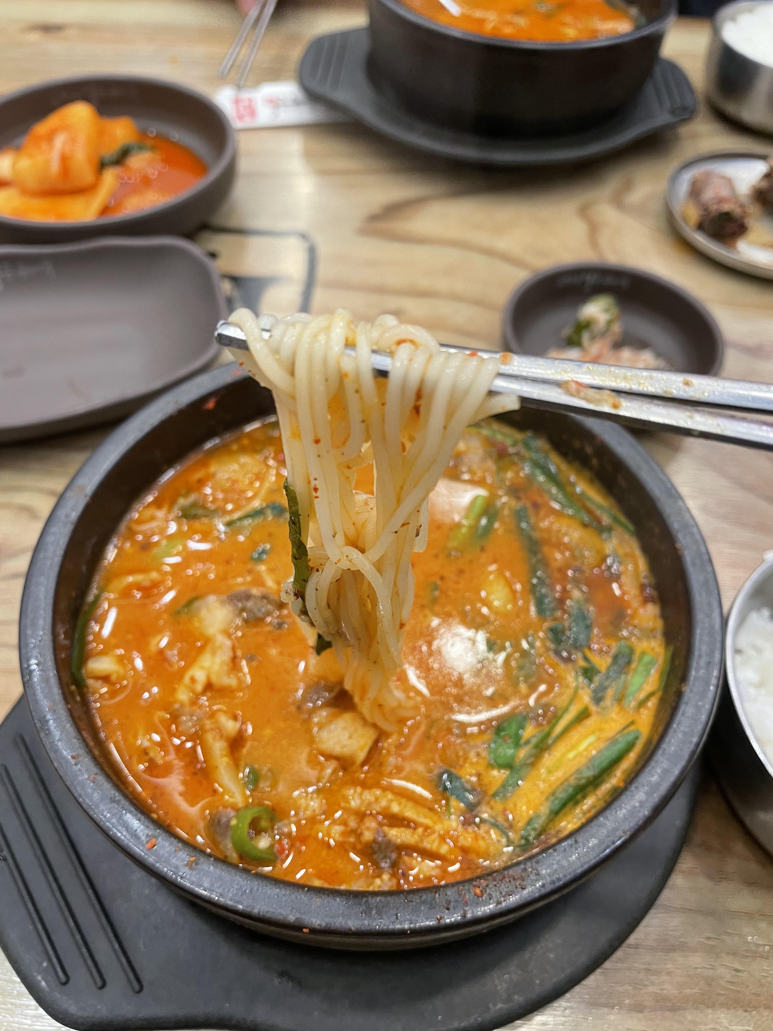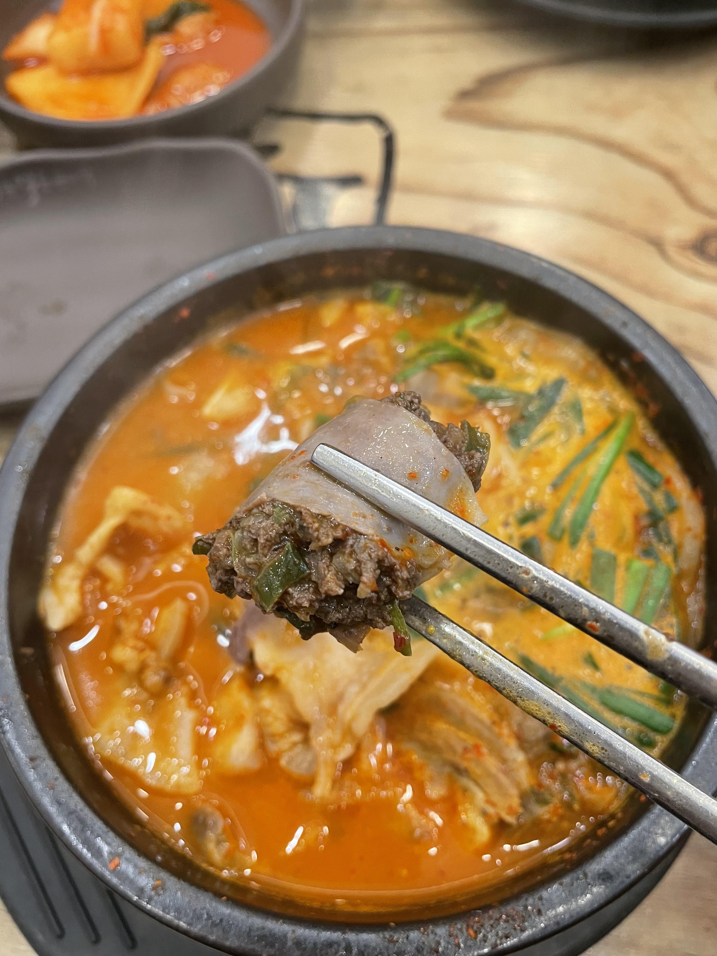 국물은 기본적으로 맵고 얼큰한 편이지만, 맵찔이가 못 먹을 정도로 맵진 않아요. 하지만 빈 속이라면 사람에 따라서 조금 자극적일 수도 있을 것 같아요.