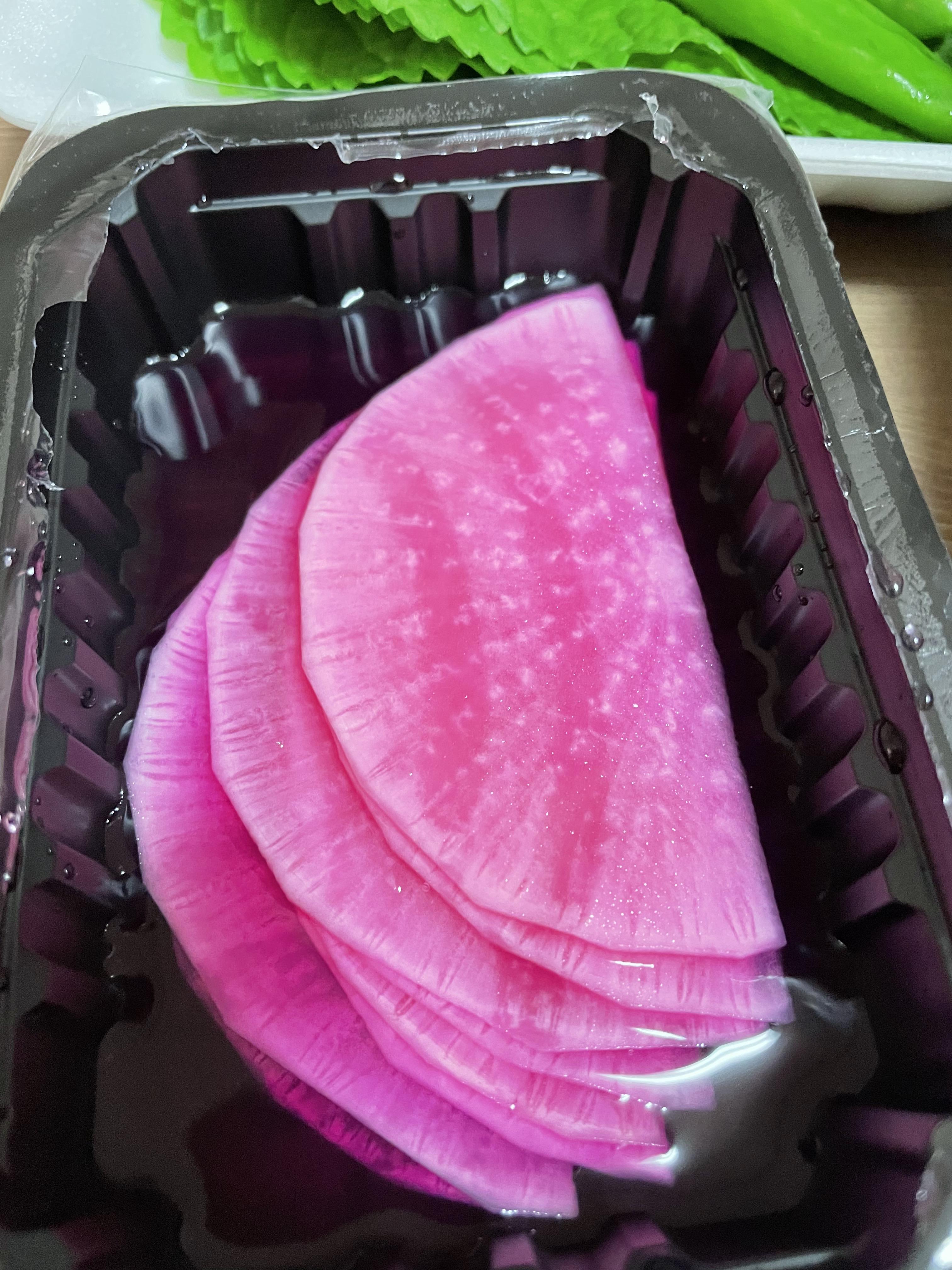 쌈무와 깻잎, 고추도 같이 왔네요.
