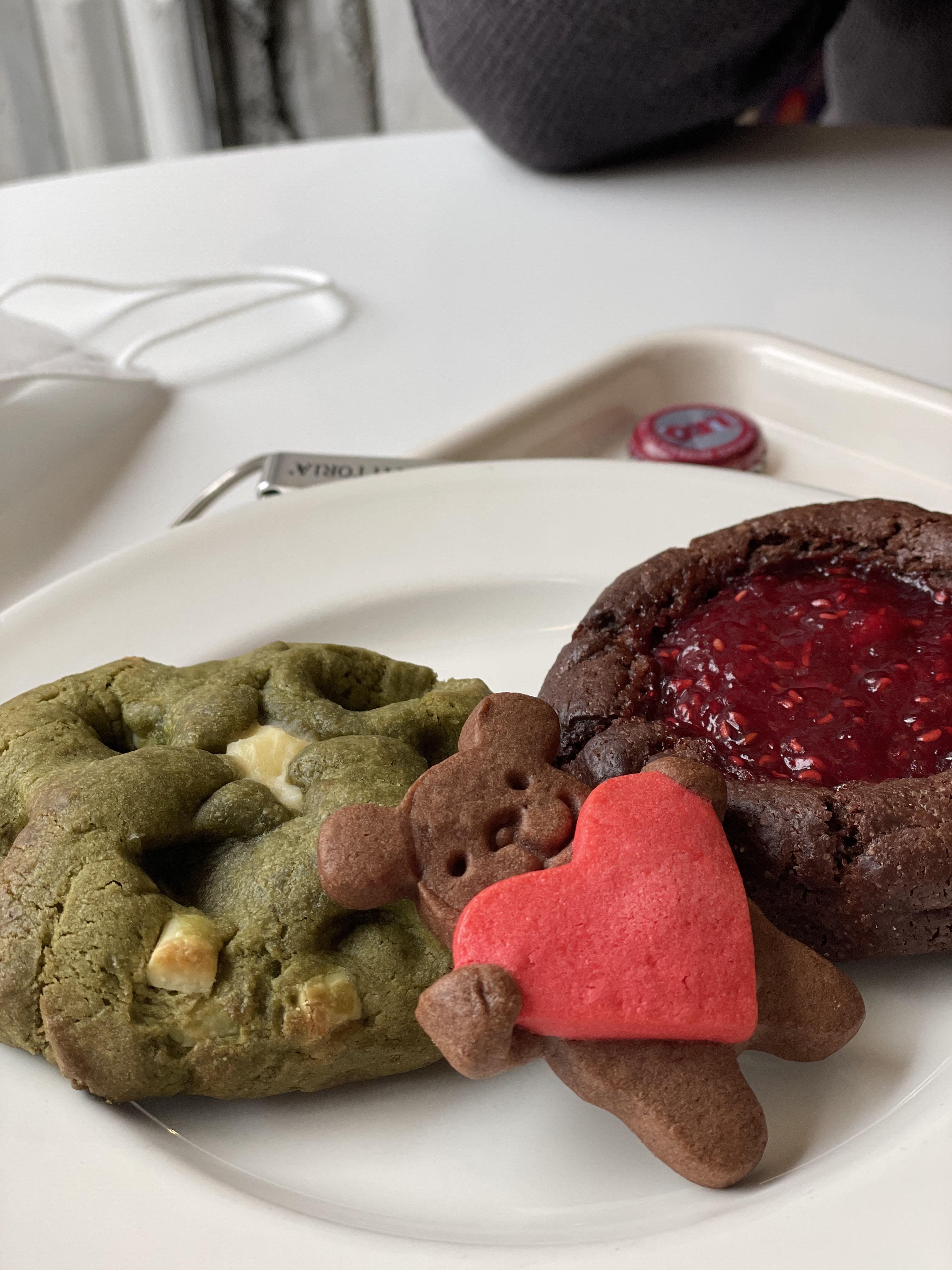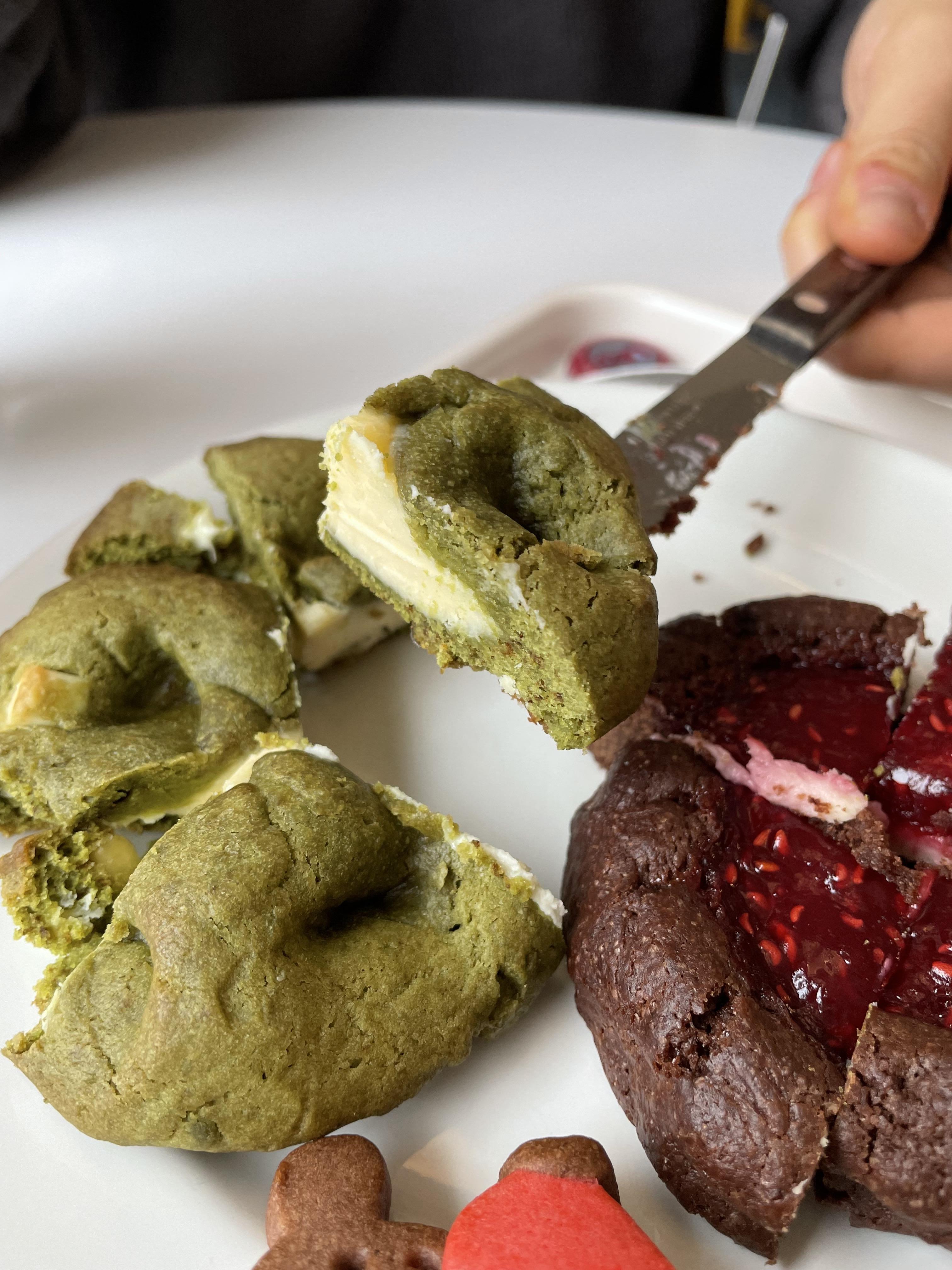 말차 마카다미아 쿠키는 일행의 픽이었는데, 말차 맛이 진한 쿠키였어요. 이 쿠키 안에는 치즈가 더 많이 들어갔는데, 저는 치즈를 멀리해야 해서 얼마 못 뺏어 먹었습니다.