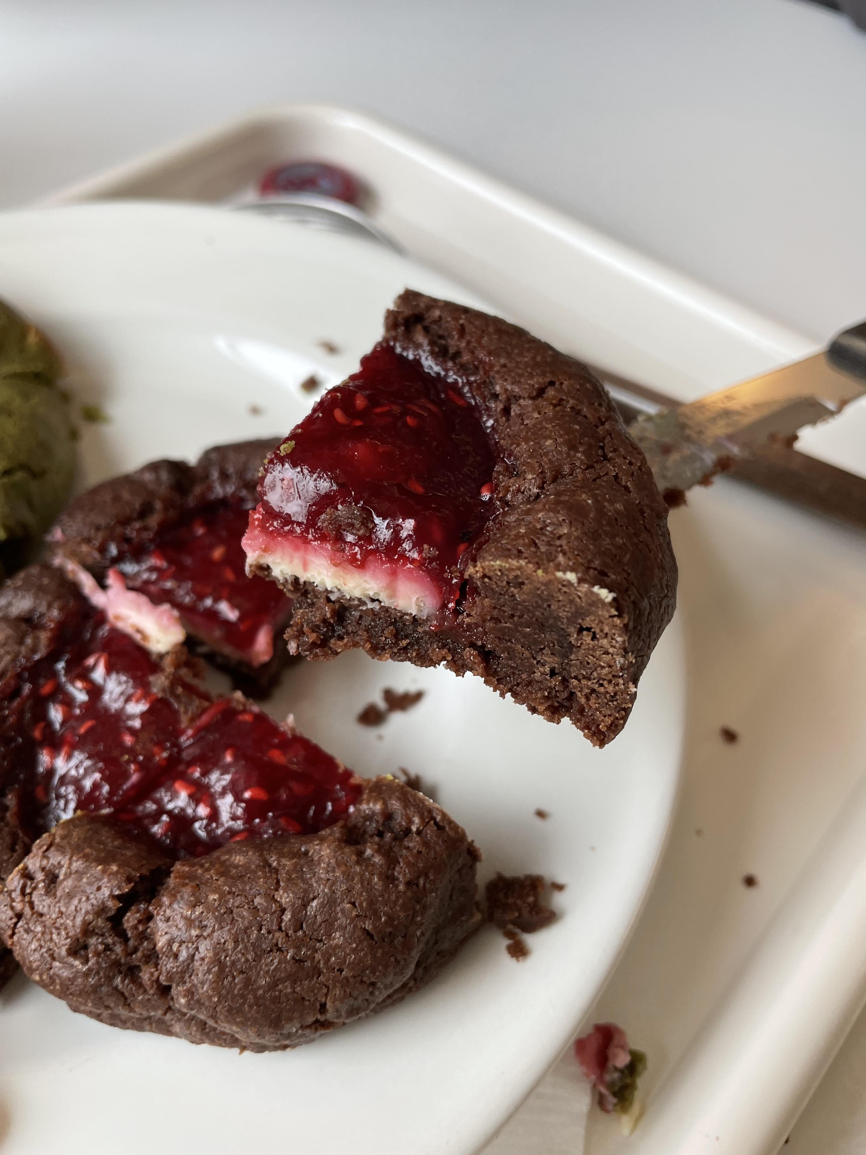저의 픽은 초코 라즈베리 쿠키입니다. 꾸덕한 식감에 달달한 초코와 상큼한 라즈베리의 조합이 맛있었어요! 몰랐는데 안에 크림치즈가 들어가 있었어요~