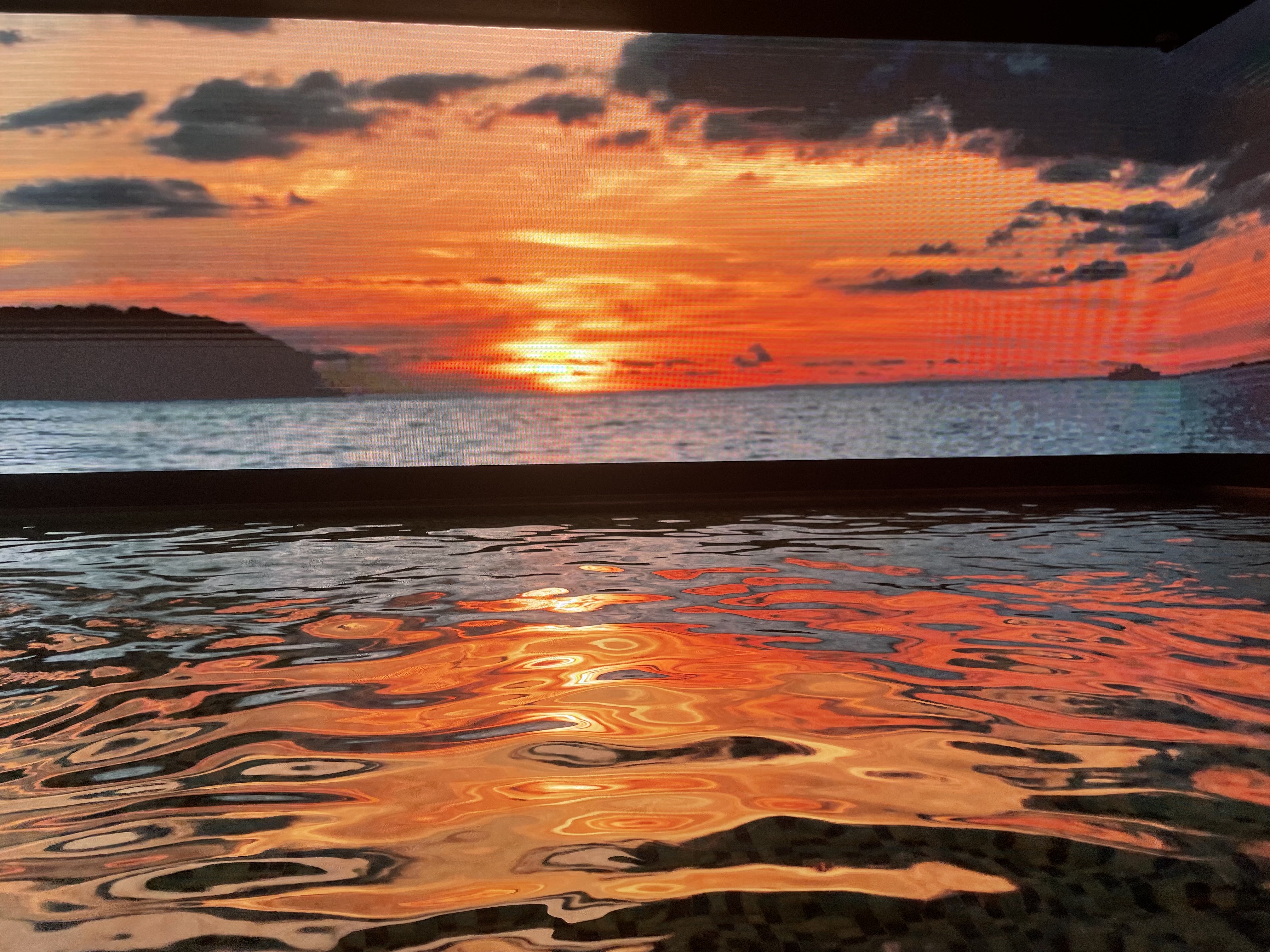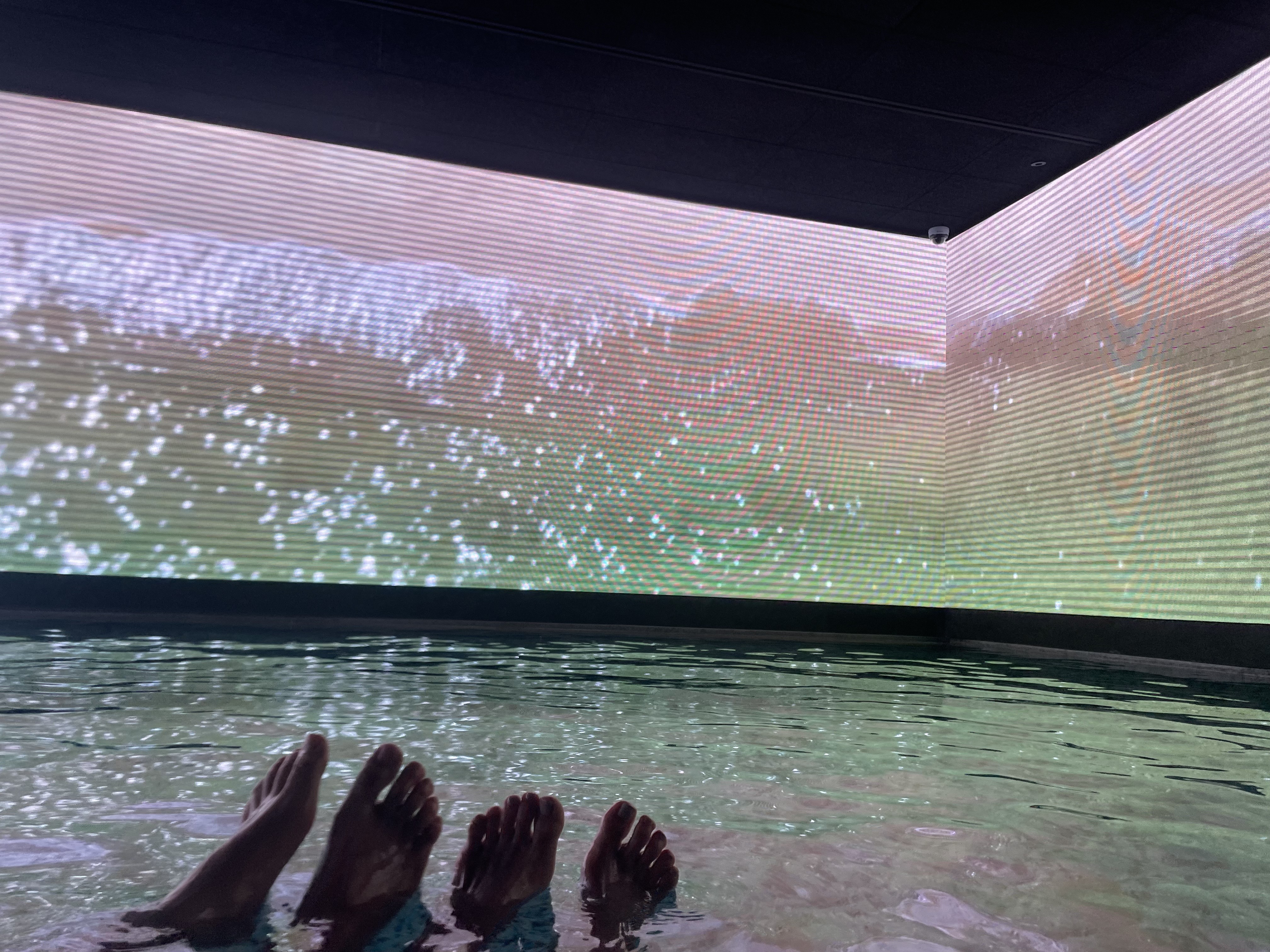 제일 좋았던 건 미디어 아트월에 둘러싸여 다양한 뷰를 보여줬던 버츄어스파예요. 3면을 둘러싼 미디어 아트월을 바라보며 멍 때리고 있으니 너무 좋더라고요. 잔잔한 음악도 나와요.