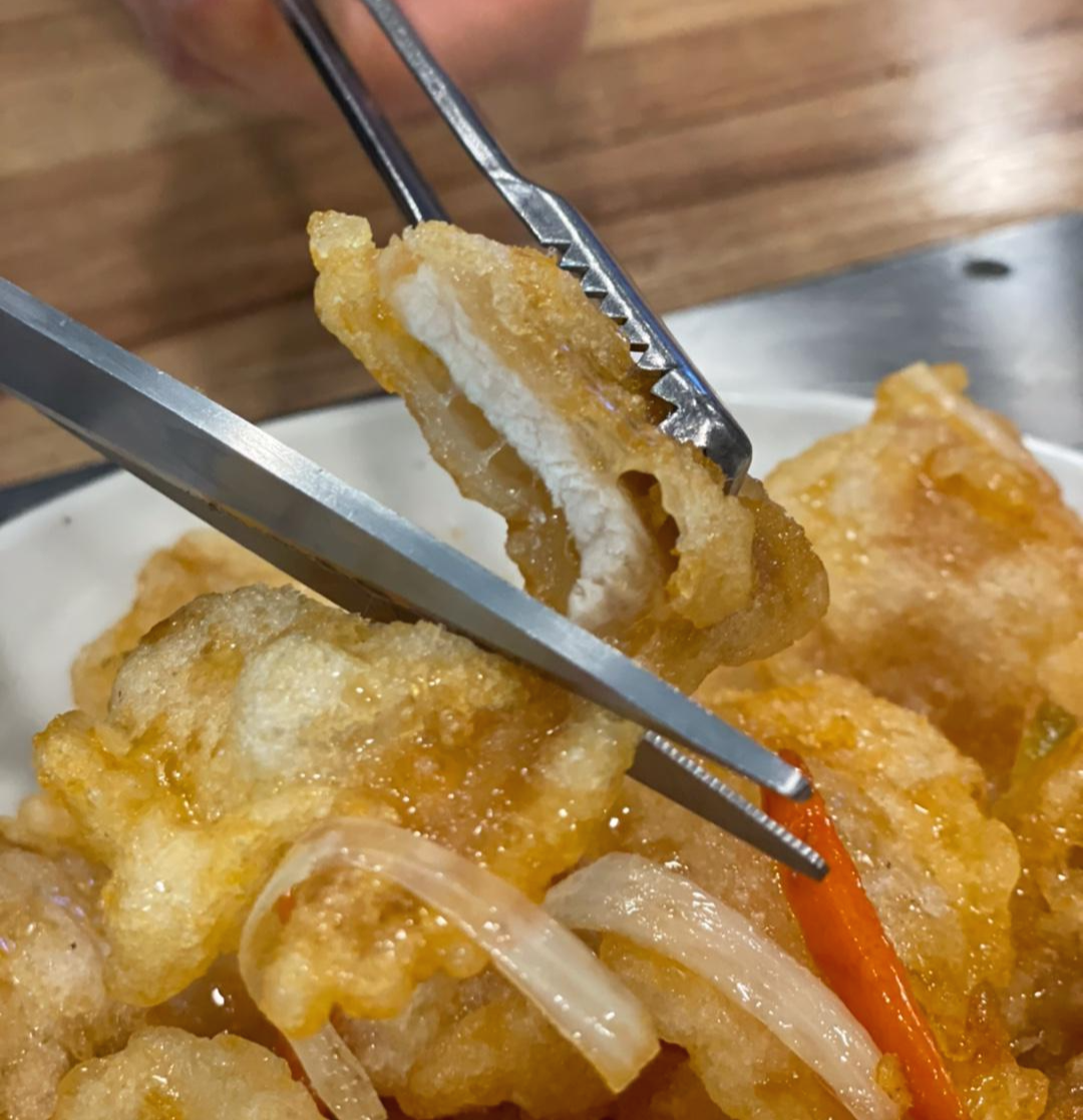 약간 찹쌀 탕수육 같기도 하고, 소스는 새콤달콤하면서 끝 맛이 약간 알싸해요. 결론은 맛있습니다!