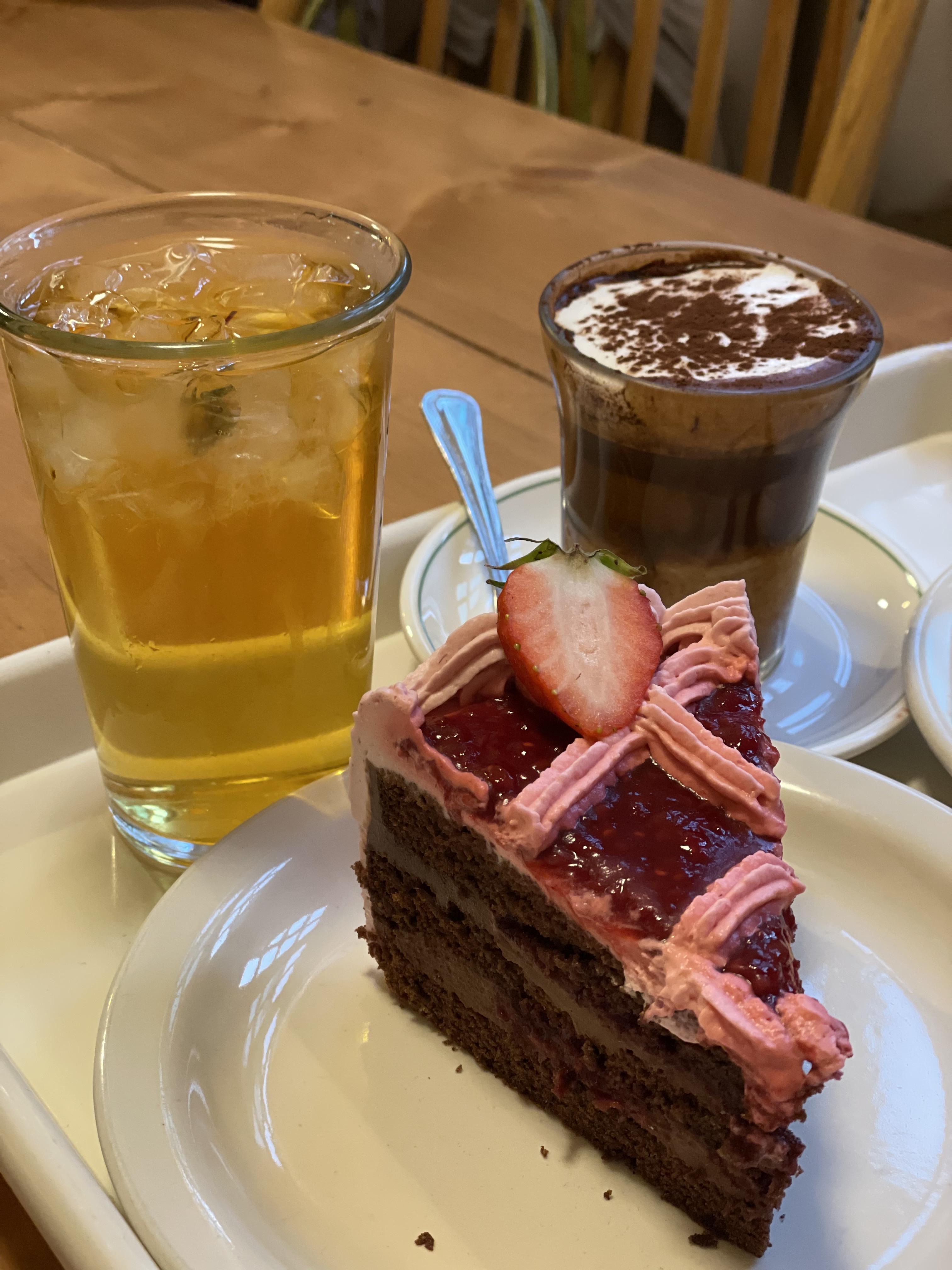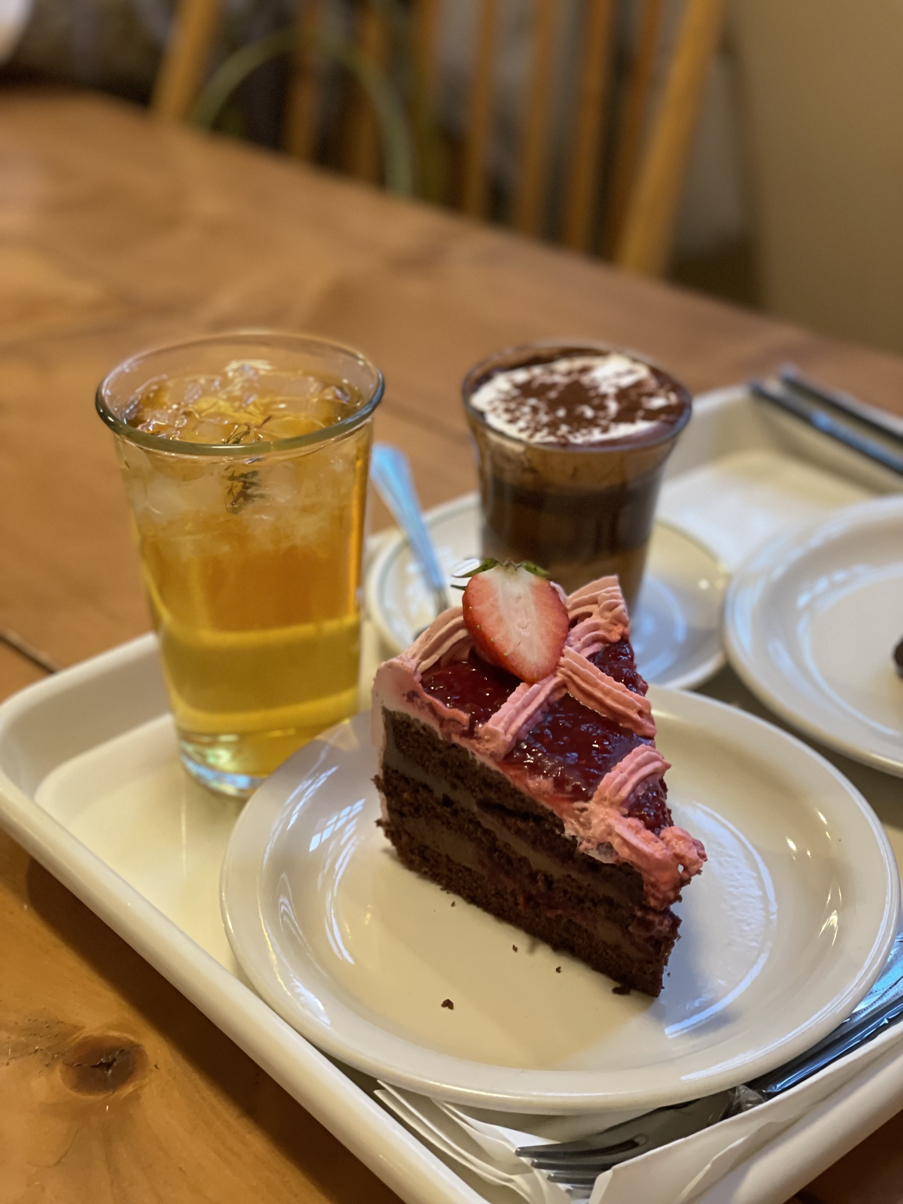 저희는 라즈베리초콜릿케이크와 초콜릿쿠키를 주문했어요.