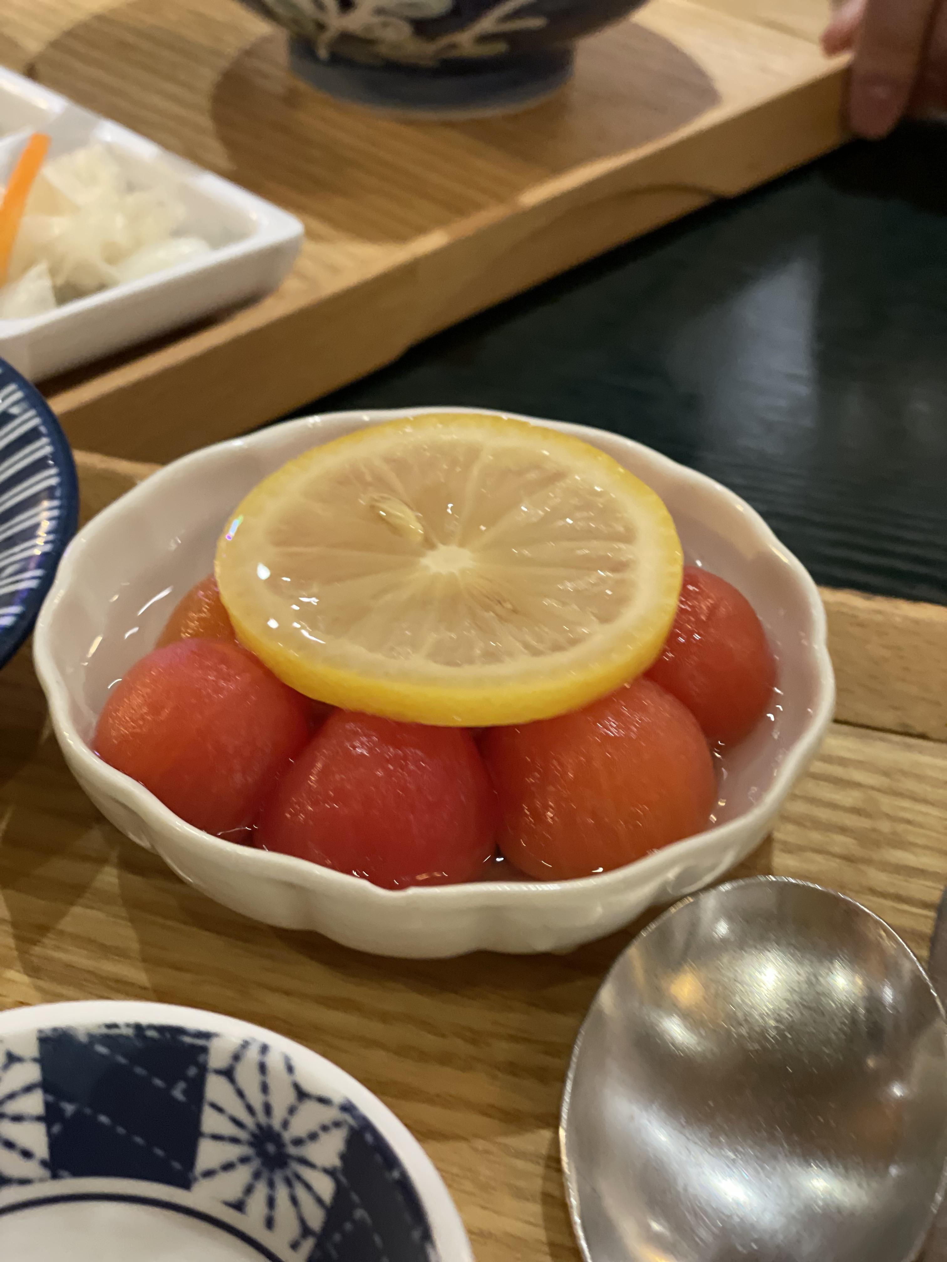궁합이 참 잘맞았던 토마토절임이에요. 상큼 새콤한 게 느끼한 튀김과 잘 어울렸어요. 전반적으로 맛있는 집이었는데, 가격은 살짝 비쌌던 것 같아요. 매운맛으로 바꿔도 좋았을 것 같아요!