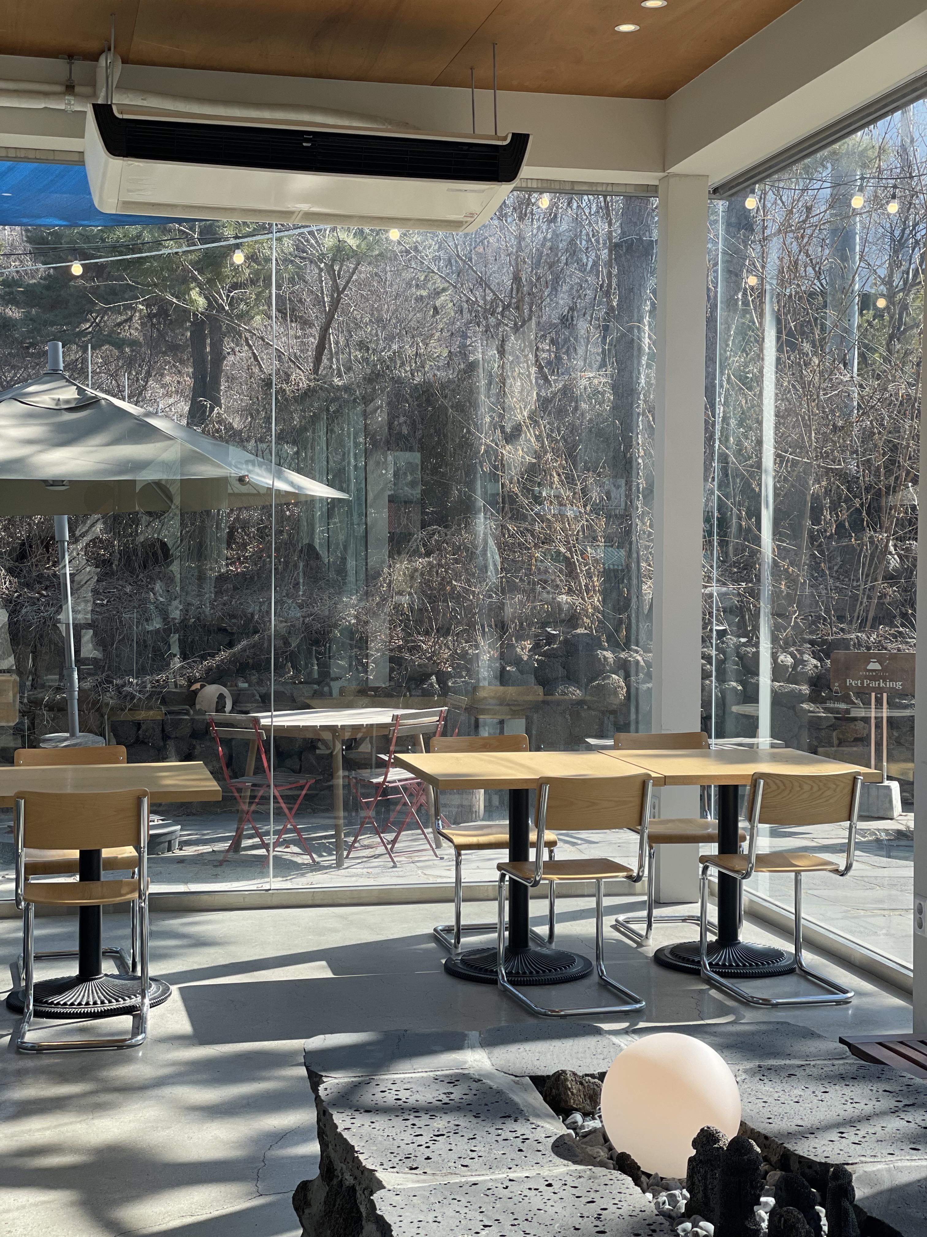입구존은 확실히 햇살을 가득 받을 수 있는 청명하고 깨끗한 분위기의 공간으로 봄이나 가을에 앉으면 딱 좋겠다는 생각을 했어요. 저희는 아직 좀 추워서 안쪽으로 들어갔습니다.