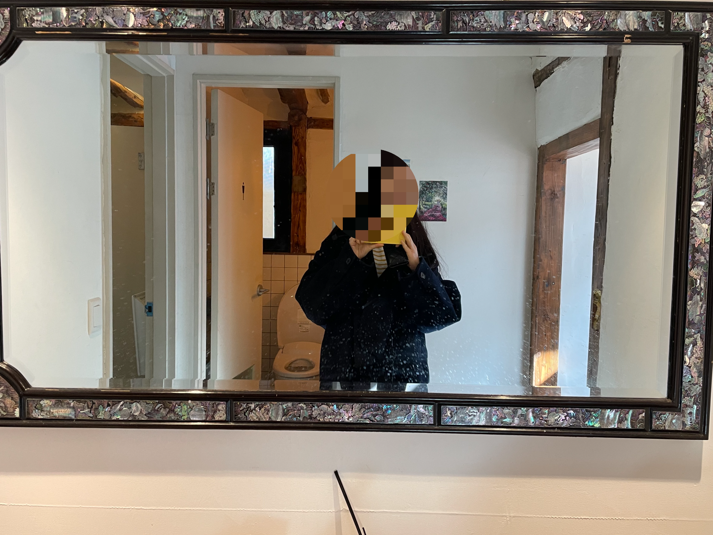 화장실 거울인데, 이렇게 자개로 된 거울이라서 재밌네요.