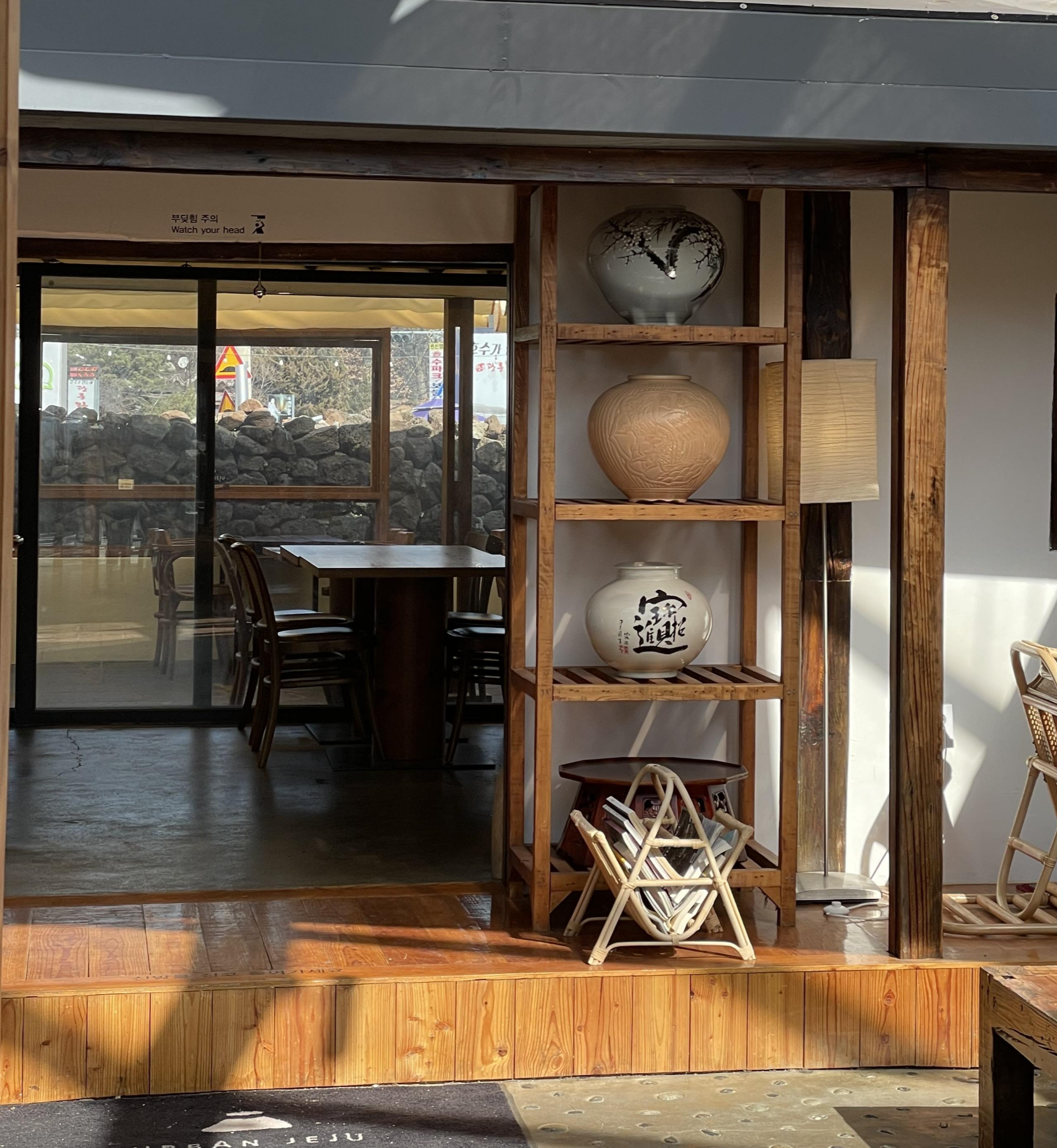 전반적인 분위기는 토속적인 제주의 모습에 한국 전통의 미를 더한 분위기로 굉장히 고즈넉하고 여유로워 좋았습니다.