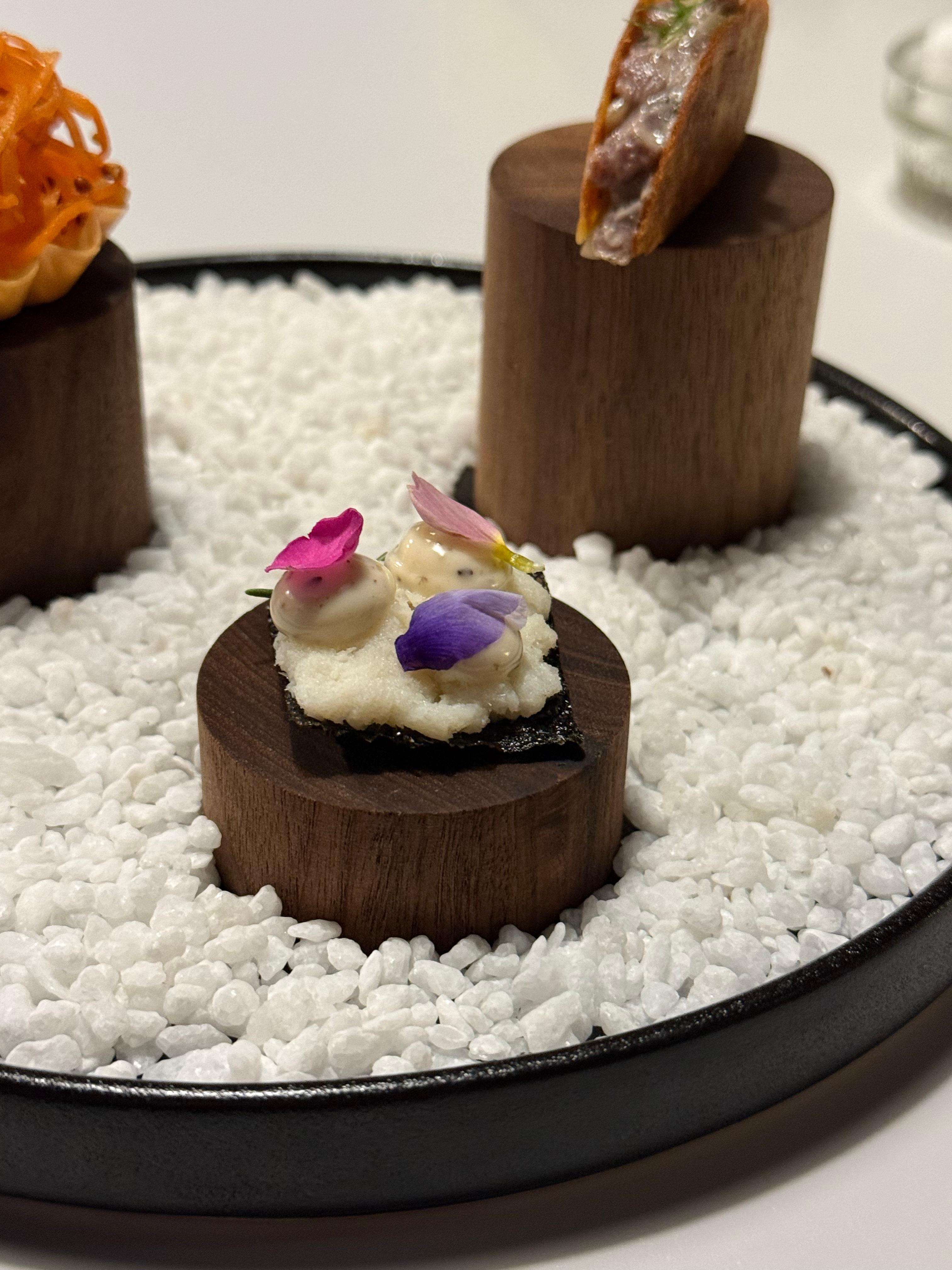 샤인머스켓으로 만든 캐비어의 식감이 톡톡 터져 재밌었고, 짭조름한 소스가 부드럽고 조화로웠어요!