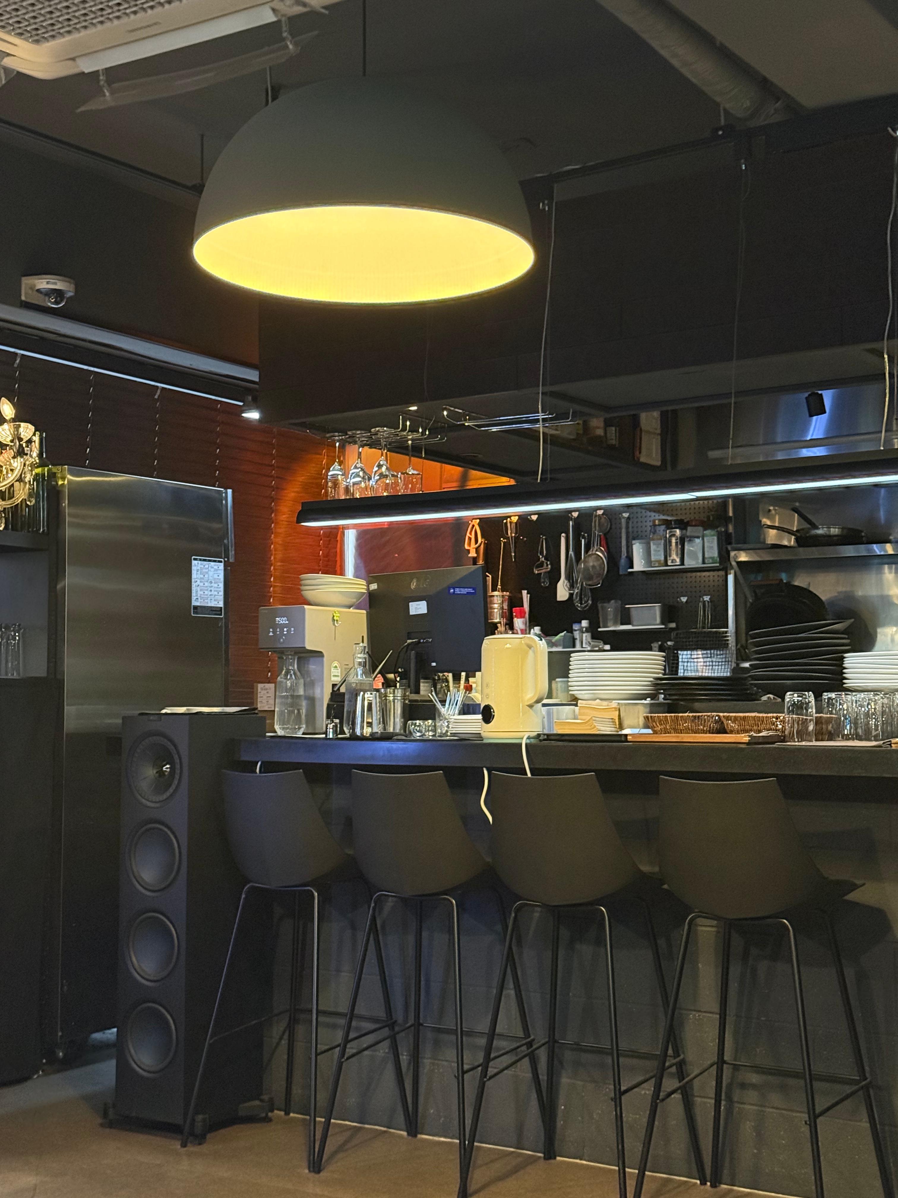 오픈 주방이 있고, 홀에는 테이블 3개 정도 있었습니다. 화장실은 가게를 나가서 왼쪽입니다.