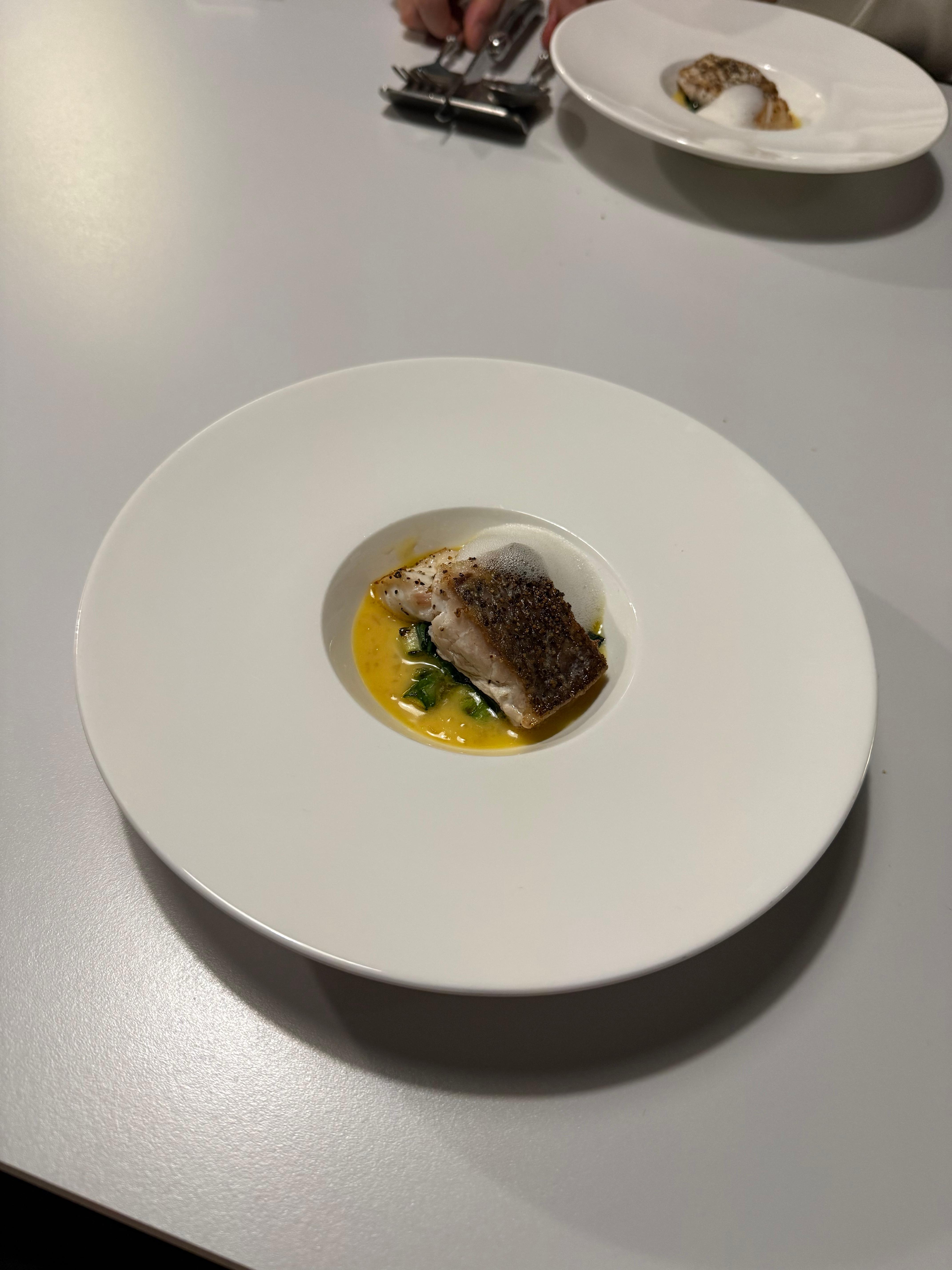 소스의 상큼한 끝맛이 참돔의 부드러움과 푸른채소들의 아삭함과 잘 어울렸습니다.