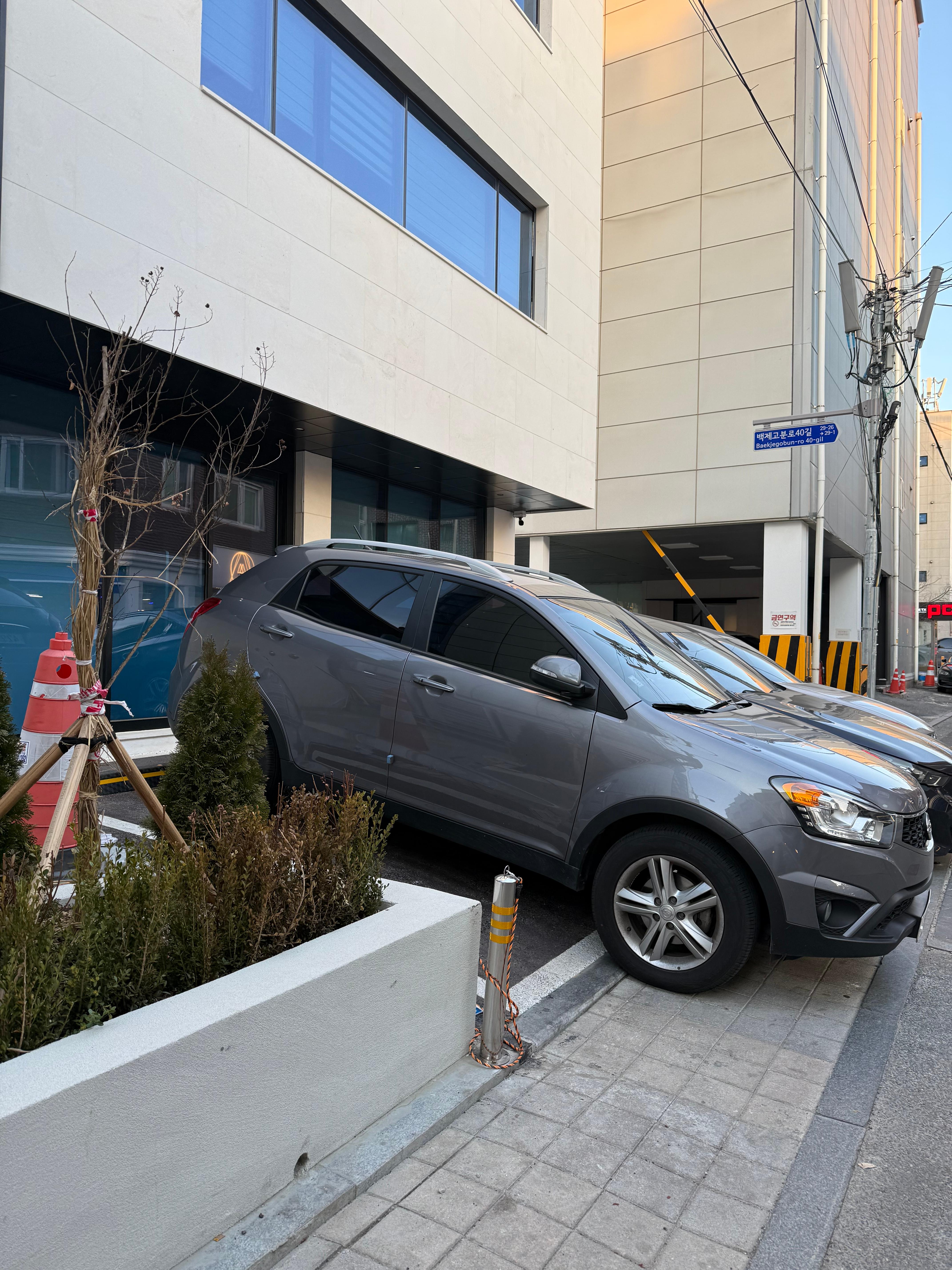 주차는 가게 바로 앞에 흰색 건물이 있는데, 이 앞에 경사진 주차자리 3대 정도 가능해요! 가게 바로 앞에도 한 대 정도 댈 수 있게 해주시더라구요.