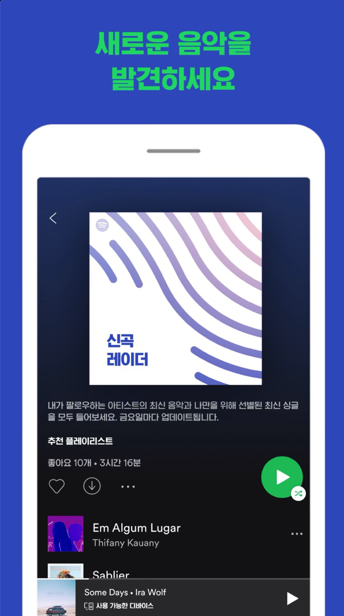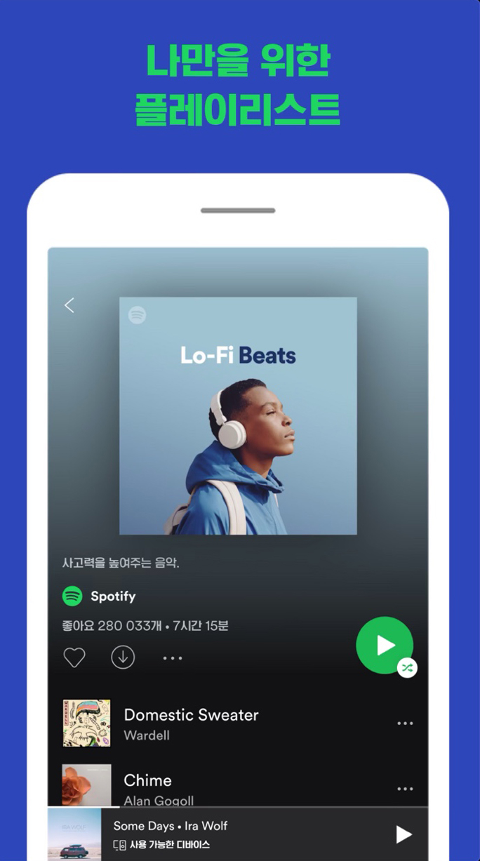 섬세한 개인화 서비스가 기대되는 스포티파이였는데, 중요한 국내 음원을 확보하지 못한 점은 개인적으로 아쉽네요.