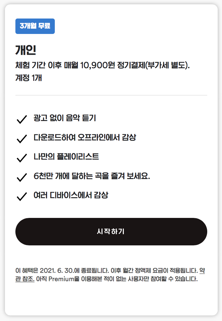 스포티파이 는 가입 후 3개월 동안 무료 사용 가능하지만, 그 후에는 한달에 10,900원 이라는 요금을 결제해야하는데요. 이 가격은 다른 음원 플랫폼보다 높은 가격입니다.