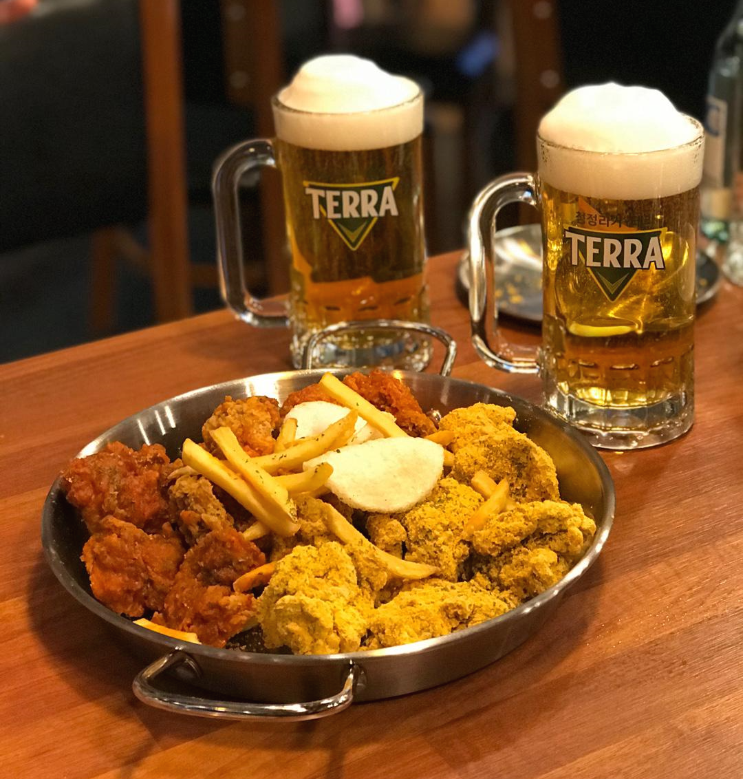 치즈치즈닭을 먹고 있으니 맥주가 급 땡겨서 생맥주 시켰어요.