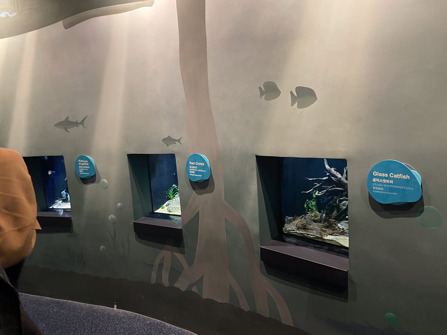한편에는 오목하게 수조가 들어가 있고 그 안에서 찍을 수 있는 포토존이 있네요.