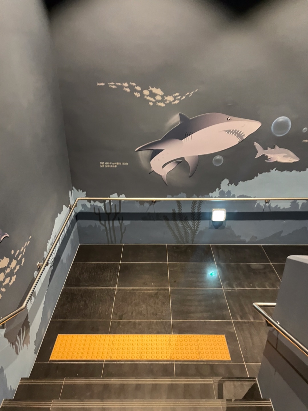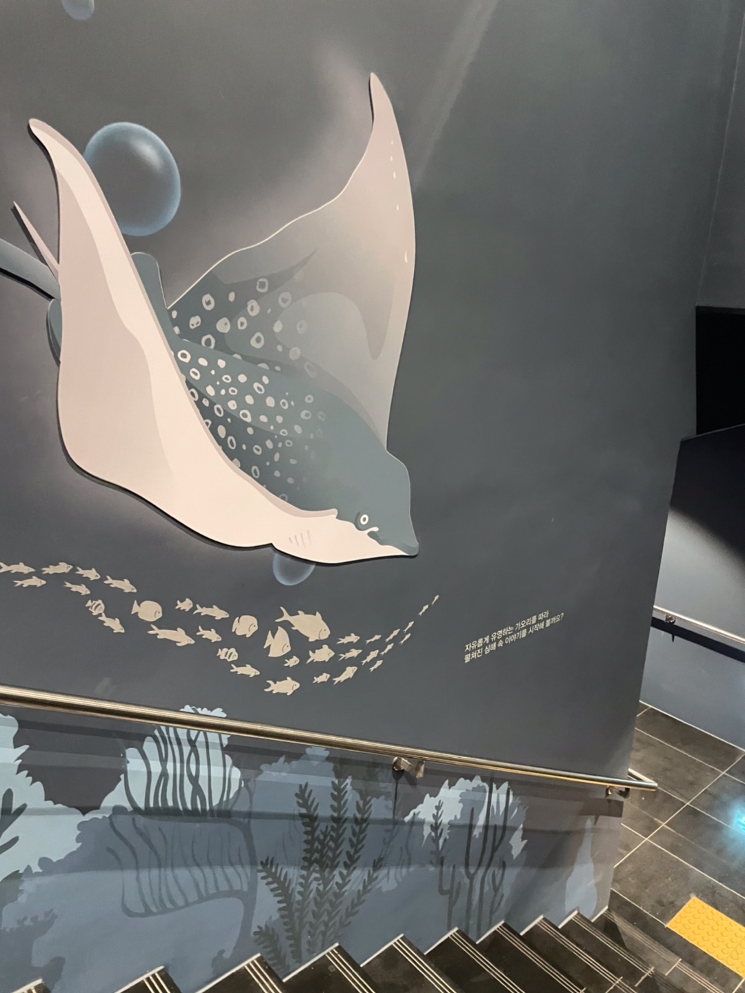 계단을 따라 내려가면 가오리 친구들이 있는 대형 수조를 마주할 수 있어요.