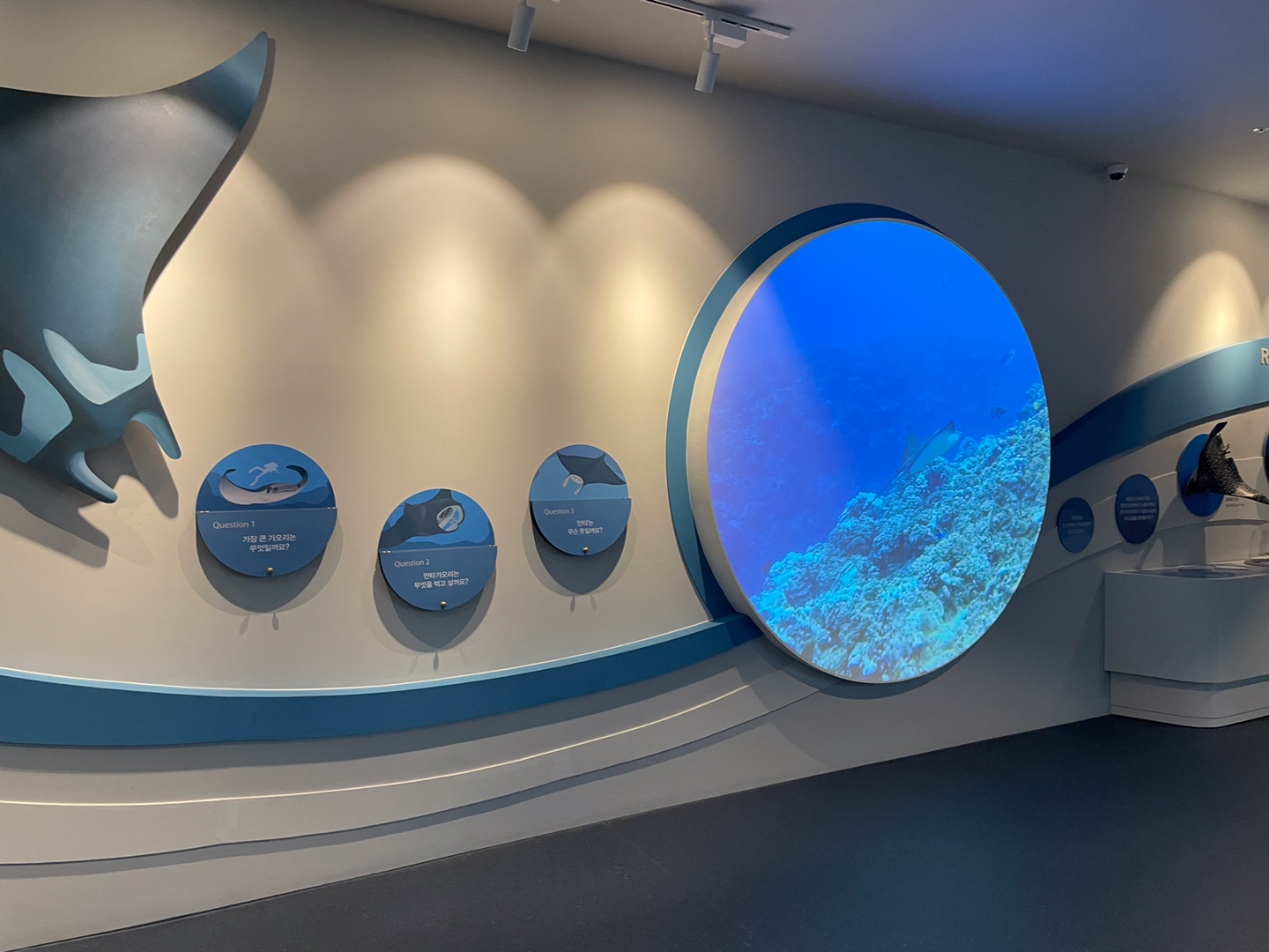 아주 큰 가오리 수조관을 둘러싸고 이런 시설들이 있어요.