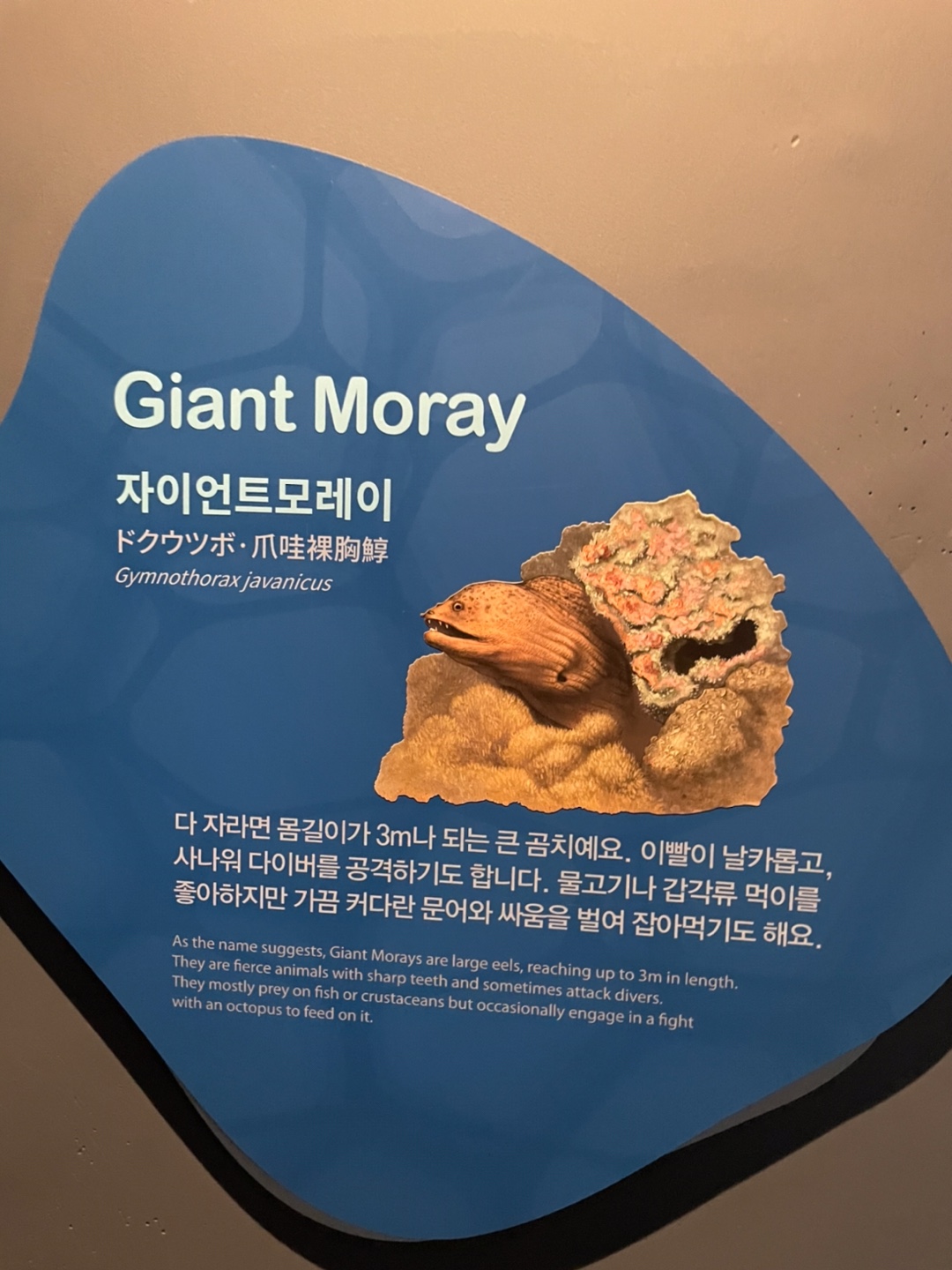 살짝 무서웠던 자이언트 모레이. 곰치라고 하는데 생각보다 커서 저는 약간 무서웠어요.
