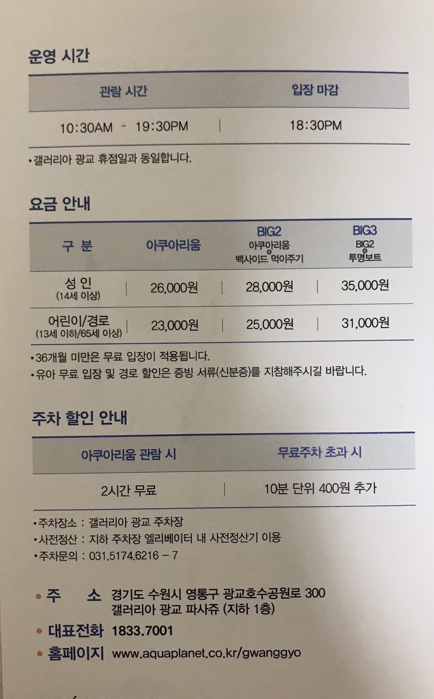 주소 : 경기 수원시 영통구 광교호수 공원로 300 B1 아쿠아플라넷