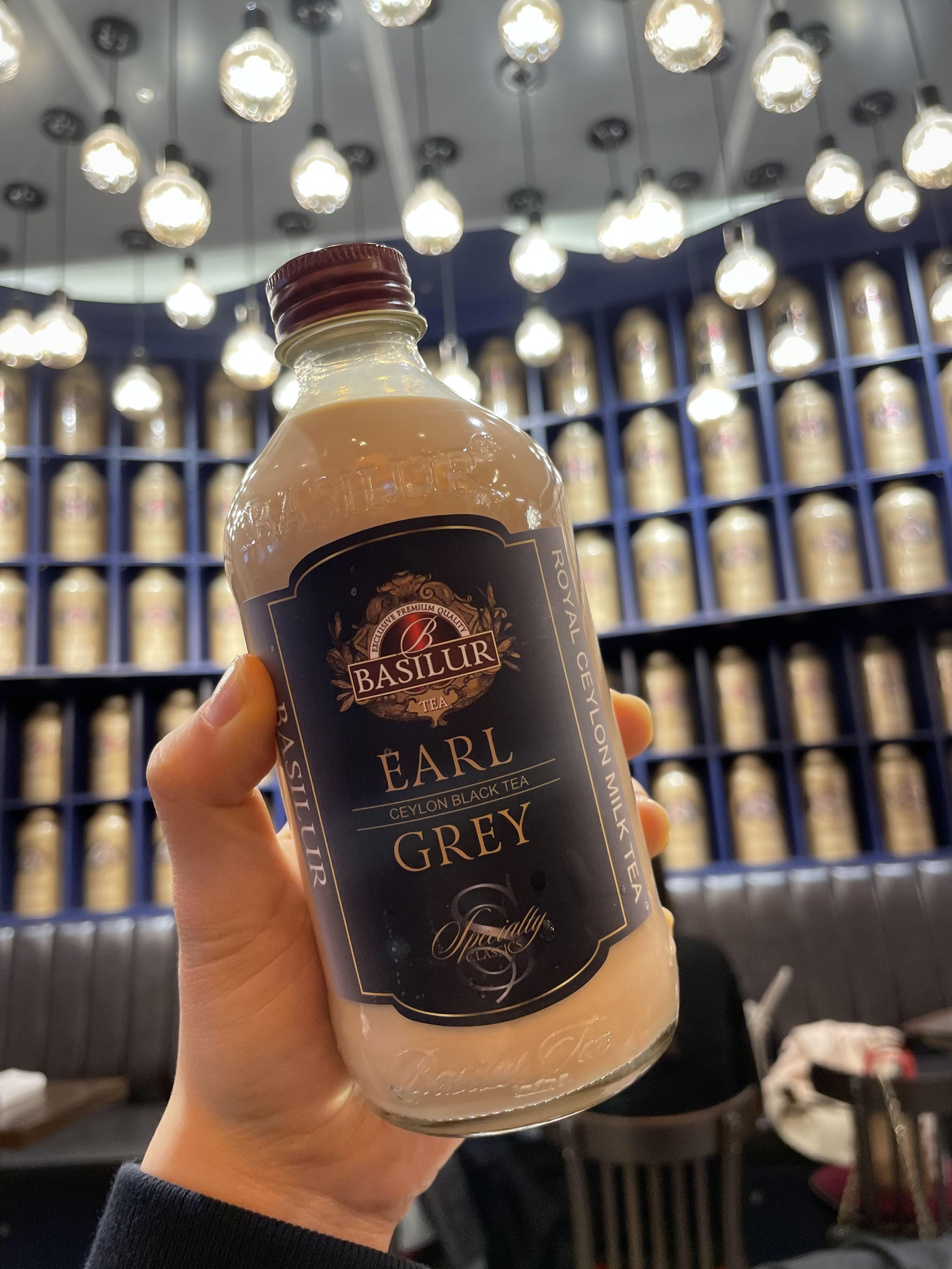 짠! 병이 너무 예쁘죠? 보틀로 시키길 너무 잘한 것 같아요. 화려한 조명과 네이비 컬러의 얼그레이 보틀이 너무 잘 어울려요.