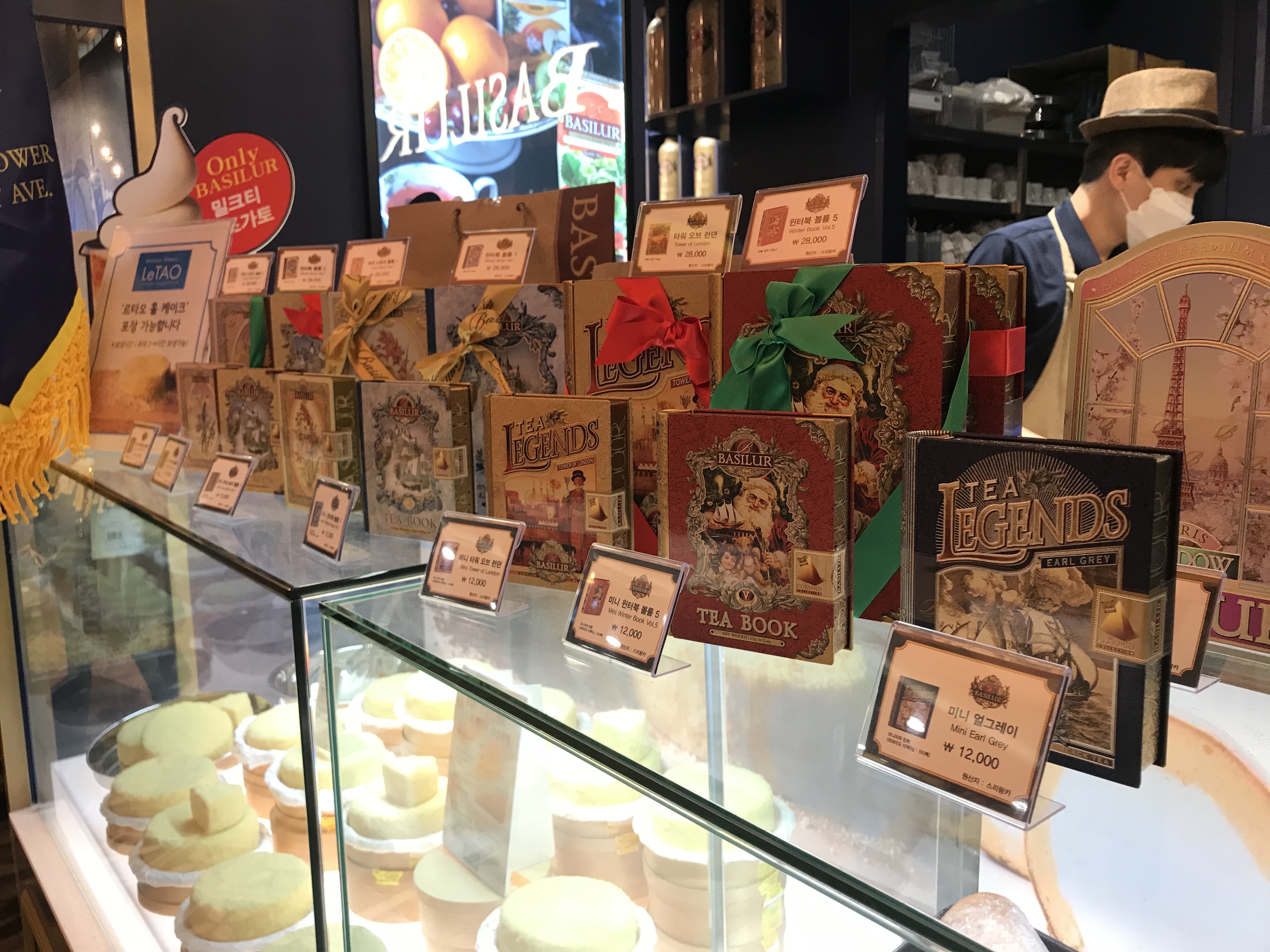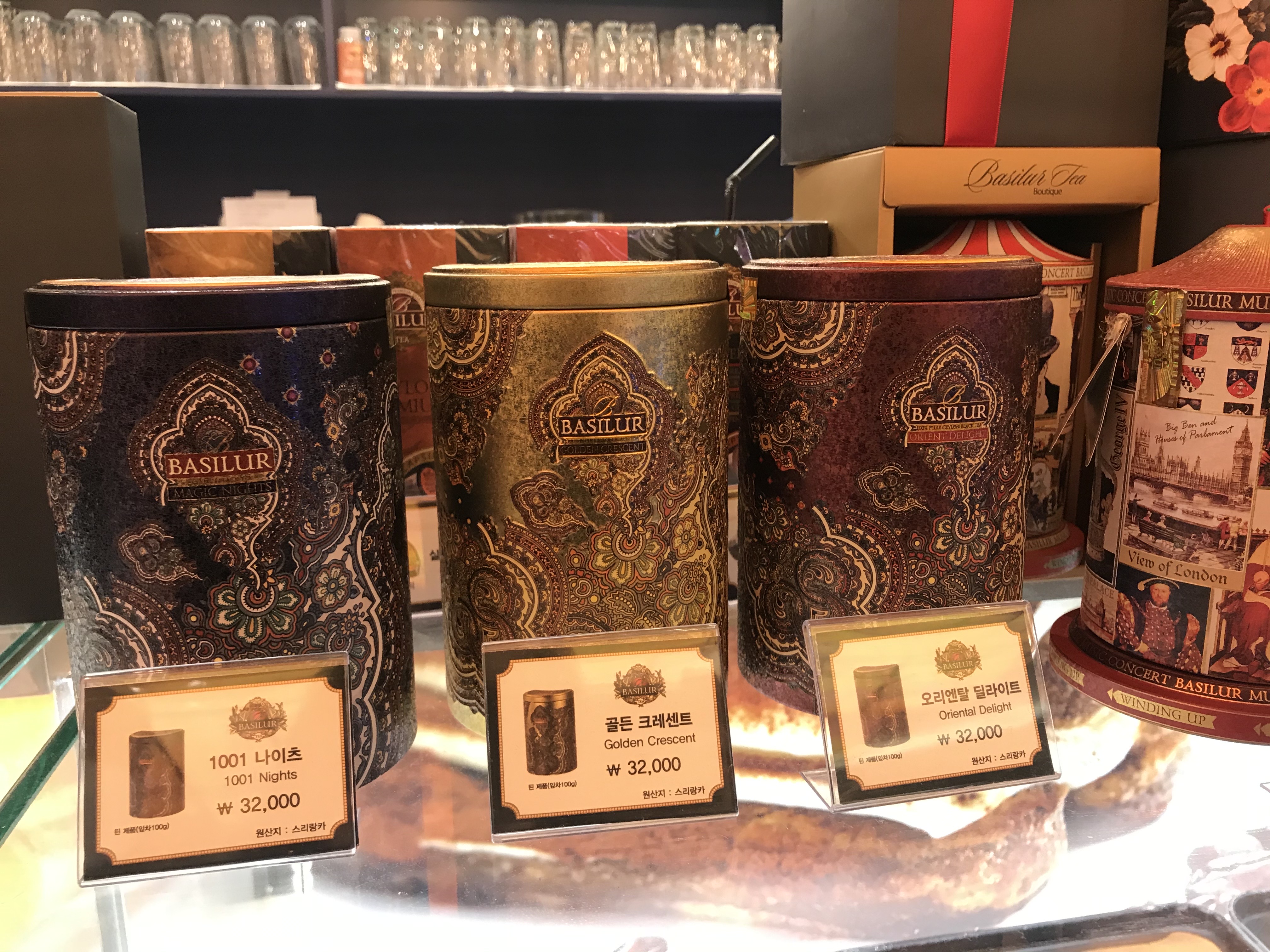 카운터 근처에는 아주 예쁜 패키지에 담긴 티를 팔고 있었어요.