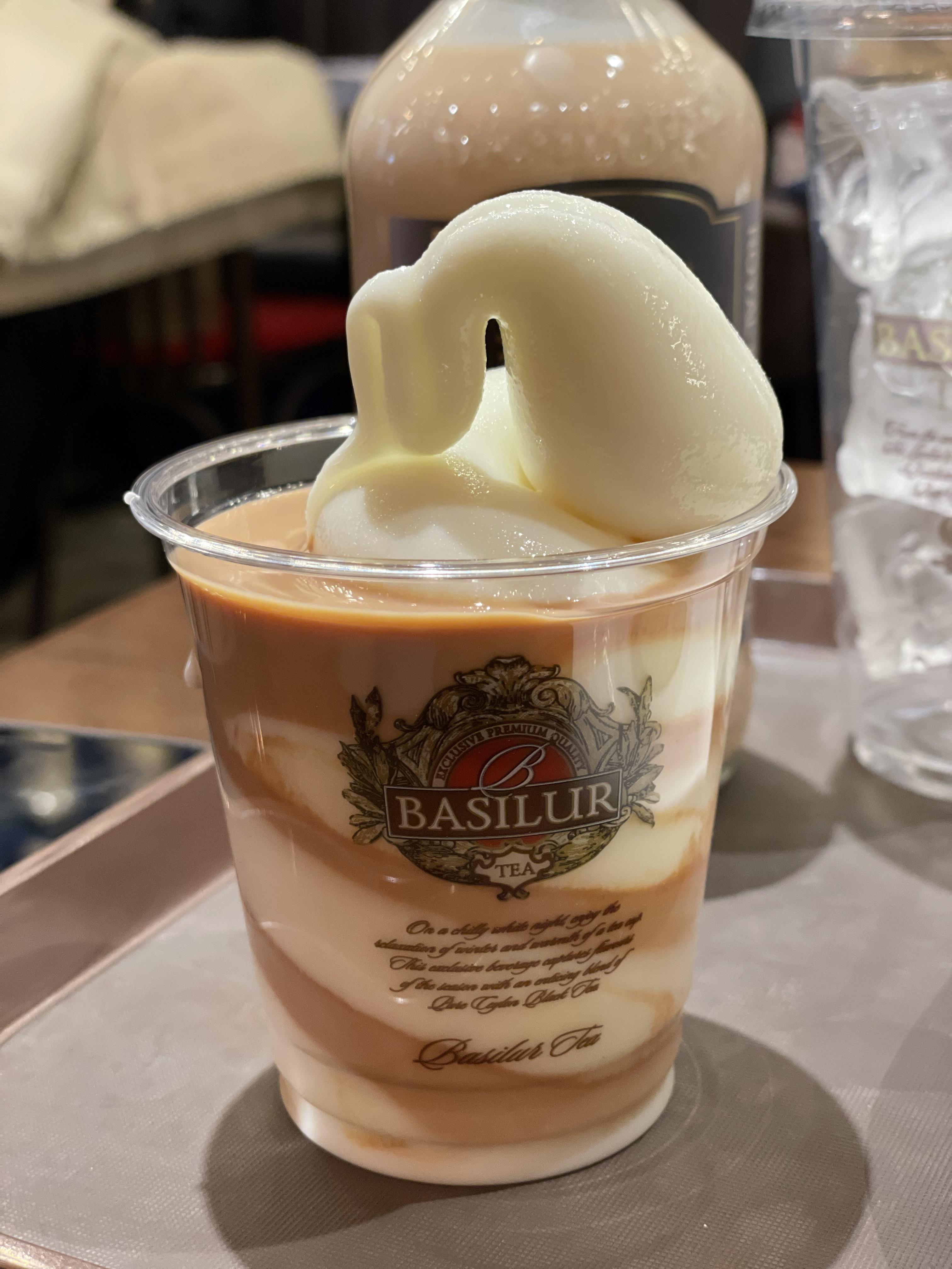 아포가토는 얼그레이 맛에, 달콤한 바닐라 소프트 아이스크림이 섞인 맛이에요. 인기가 많아서 품절될 때도 많다고 하는데 왜 그런지 알 것 같아요. 향긋하고 달콤한 기분 좋은 디저트예요.
