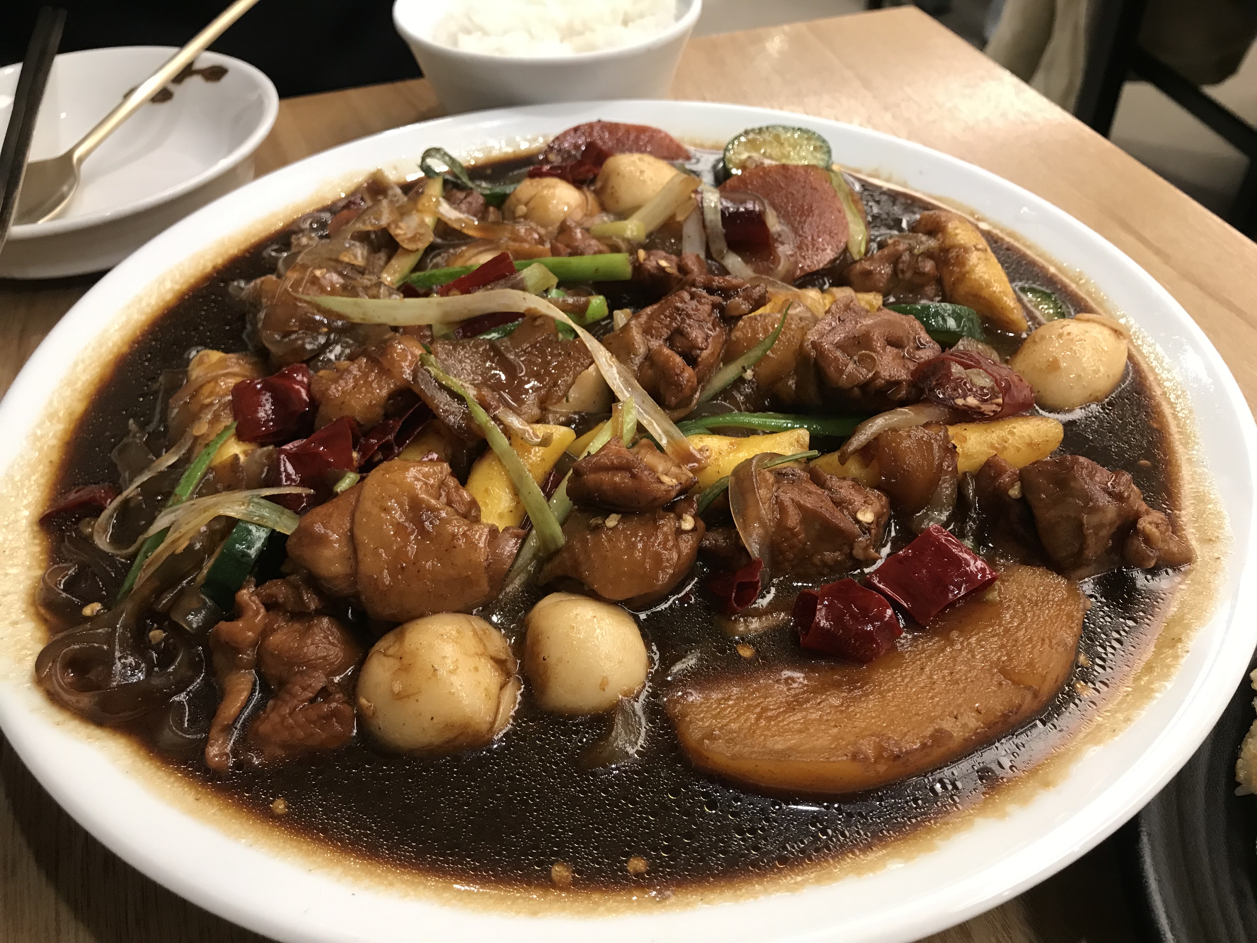 찜닭이 나왔어요. 그런데 예전에 왔을 때는 분명 가스버너에 올려서 주셨었거든요? 근데 식당 내부를 둘러보니 버너는 싹 사라졌네요? 먹으면서 불 조절을 해서 먹었던 것 같은데, 무슨 일 때문에 그냥 접시에 담아 주시는지 궁금하네요.