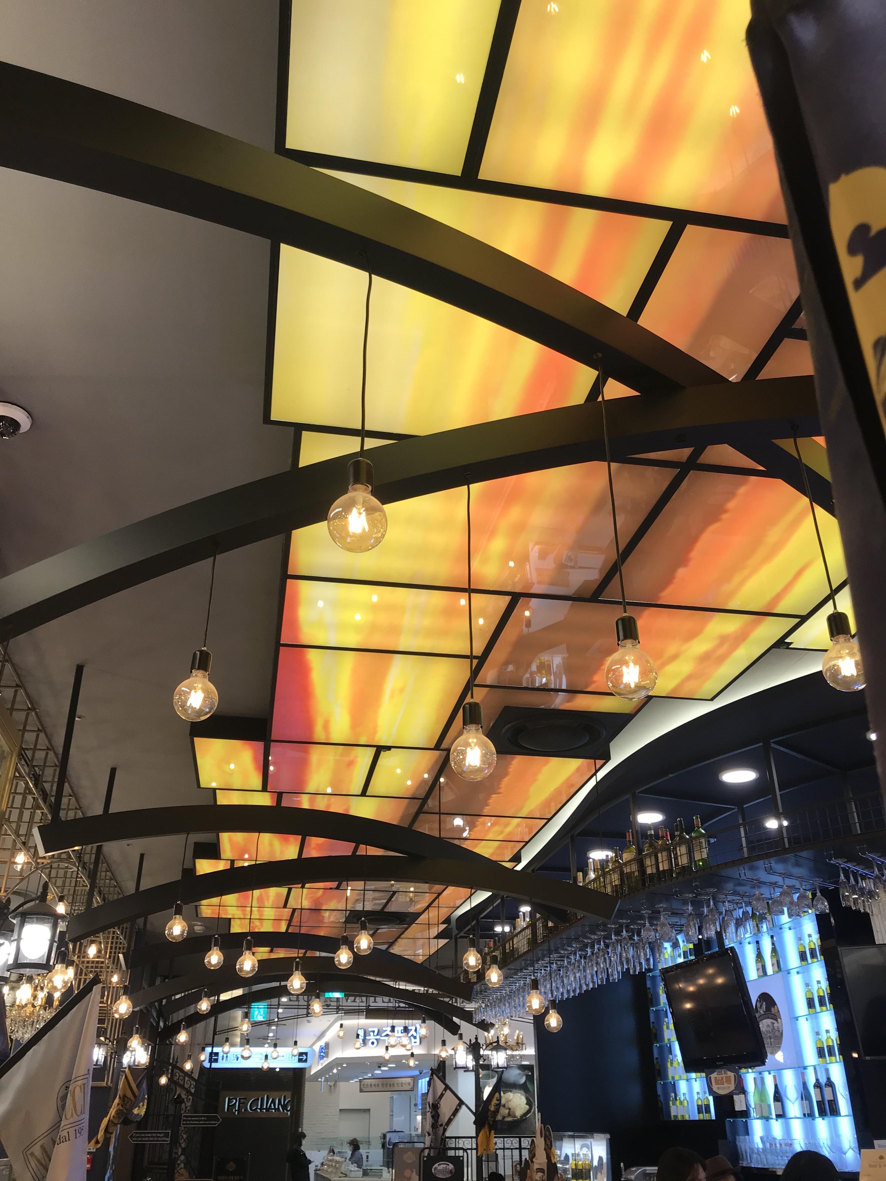 해질녘거리라는 컨셉에 맞게 예쁘고 화려한 조명이 있었구요. 이국적인 분위기의 장식장이 벽을 가득 채웠어요.