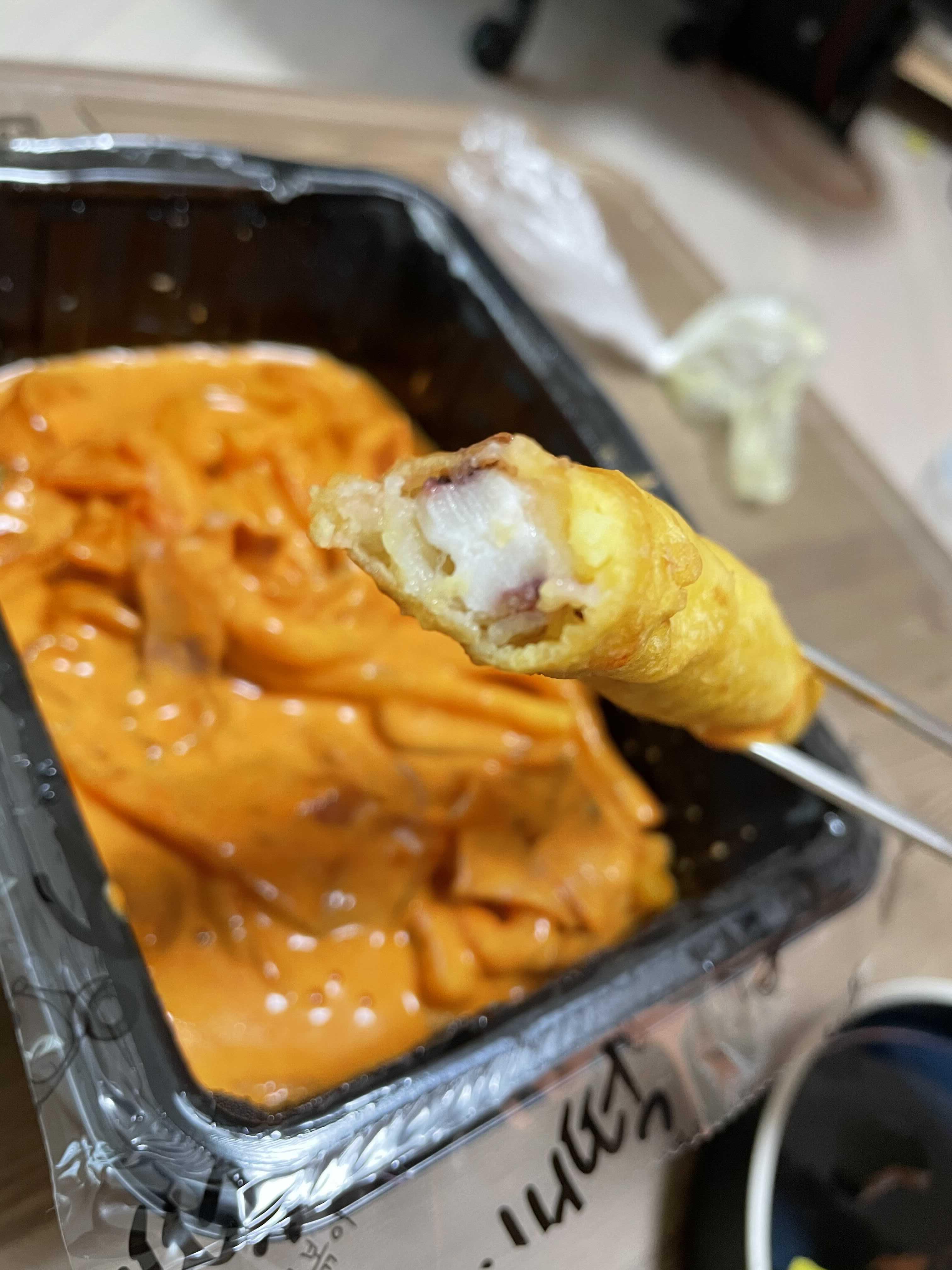 드디어 만나게 된 로제떡볶이. 용기가 작아보이지만 생각보단 깊은 편이라 양이 막 적은 편은 아니예요.