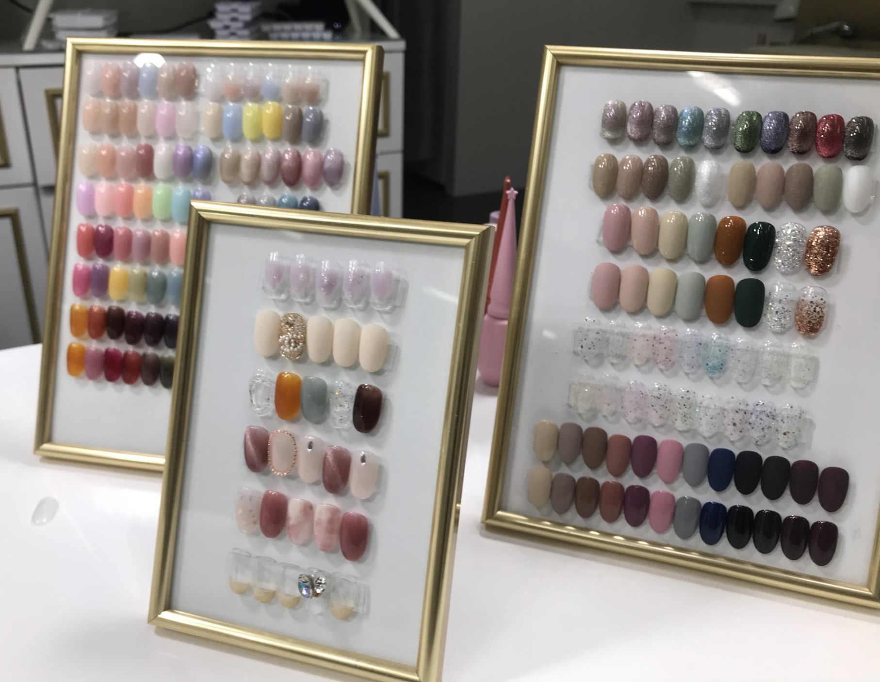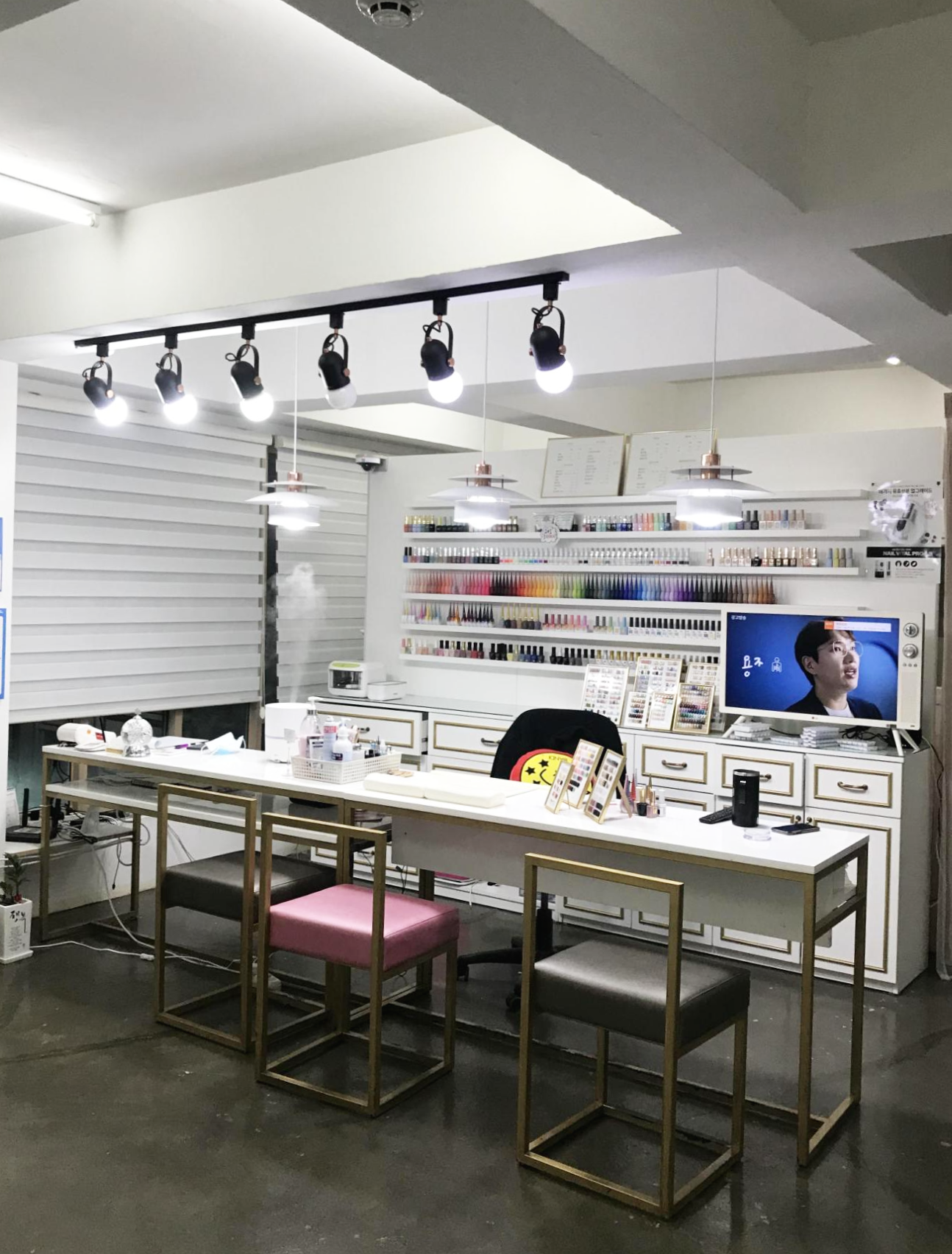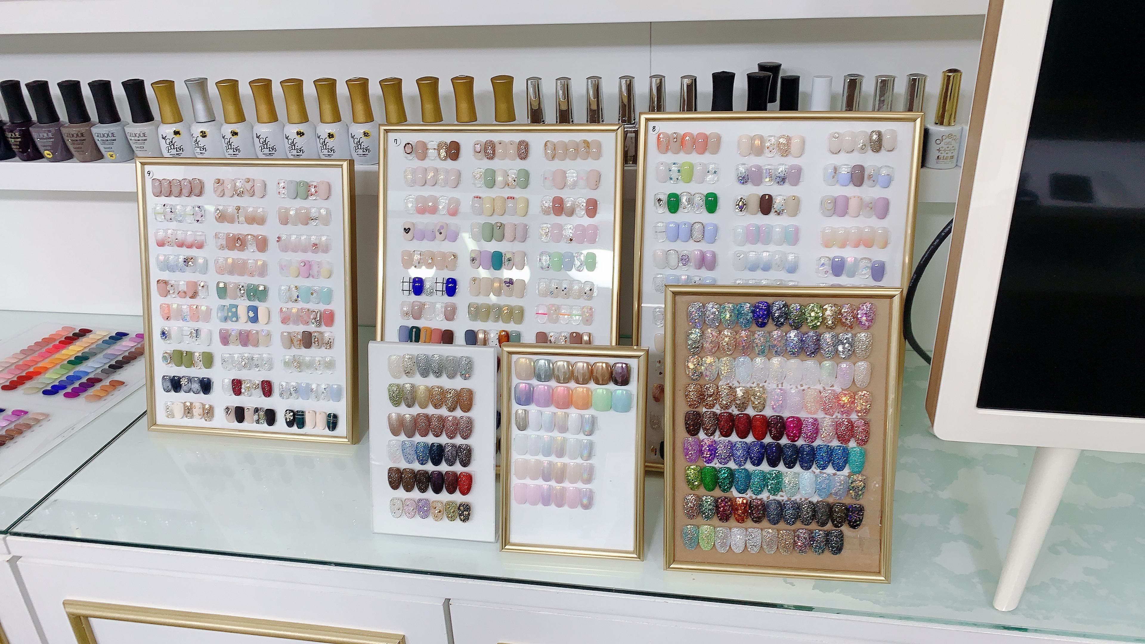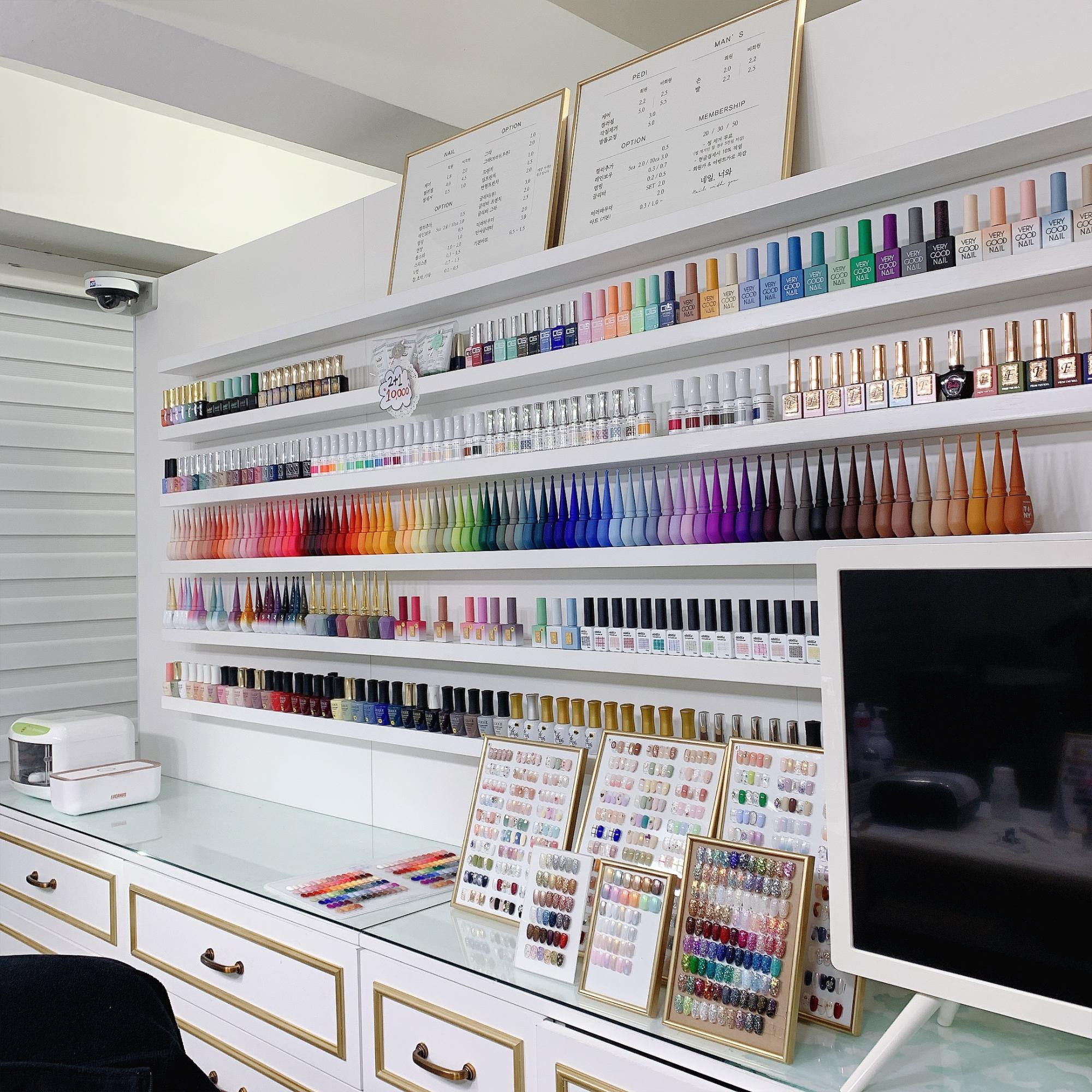 깨끗한 화이트톤의 인테리어에 컬러풀한 젤네일들이 나란히 줄세워져있어요. 원장님의 꼼꼼하고 깔끔한 성격이 돋보이는 것 같아요.