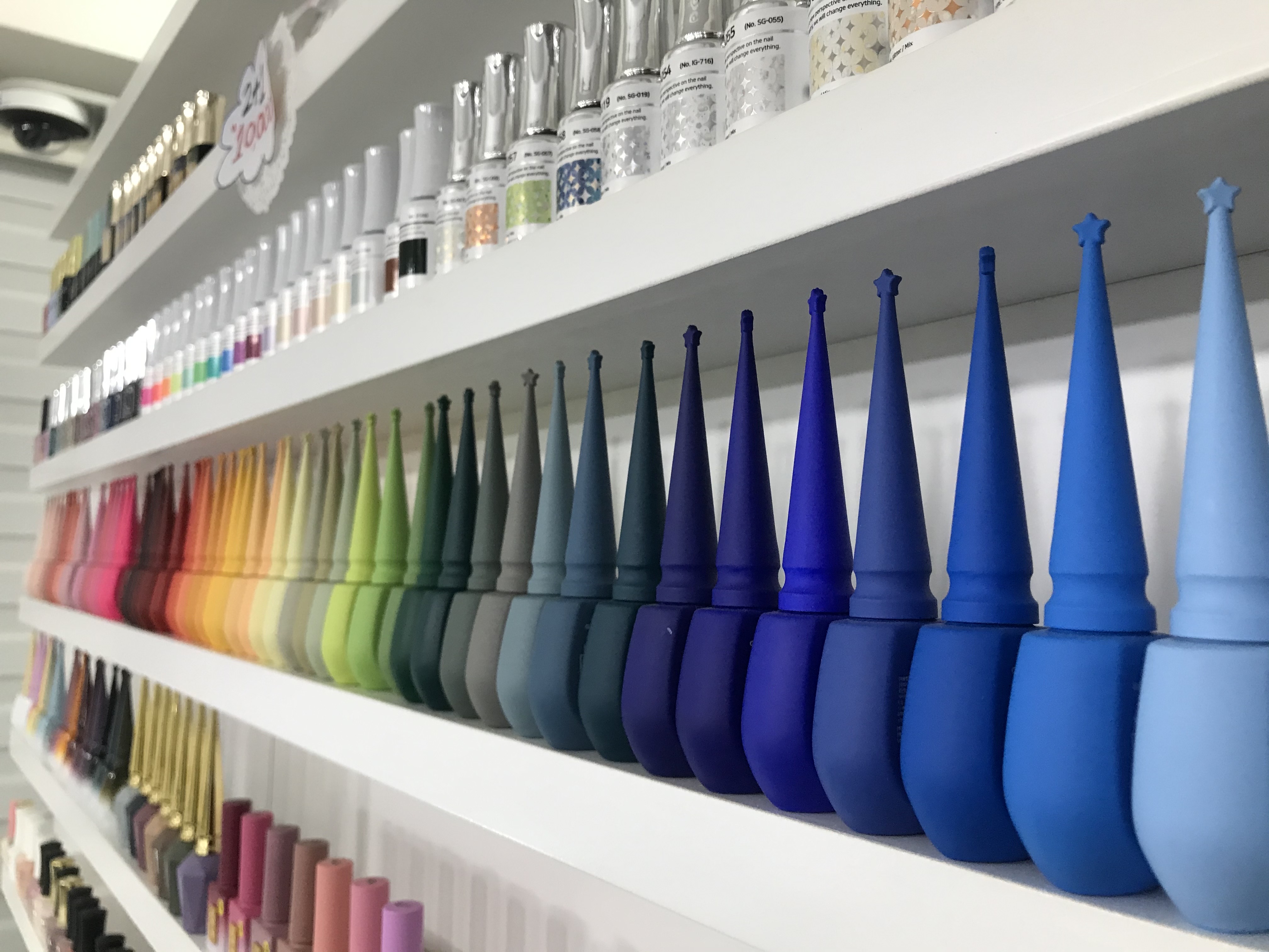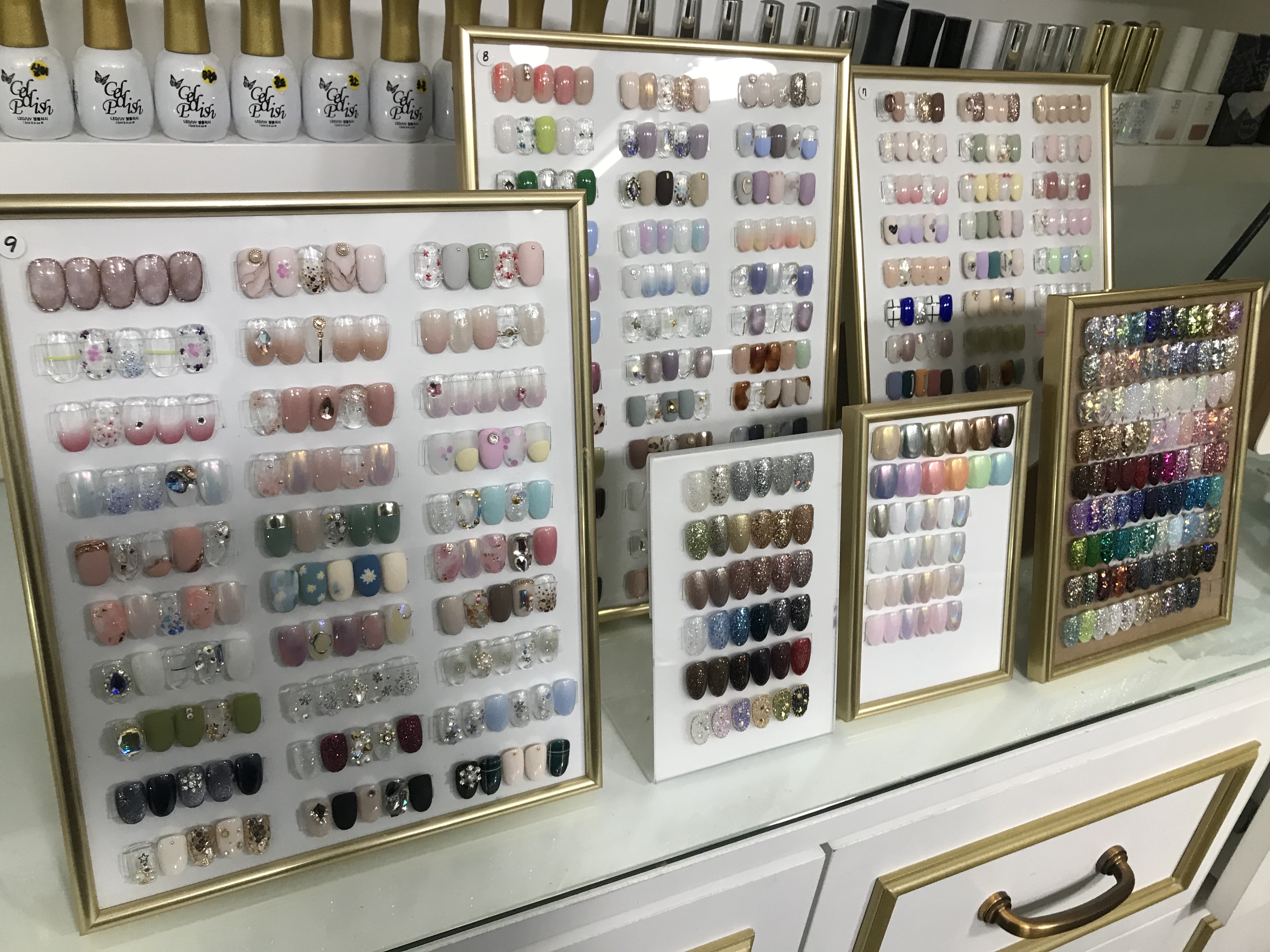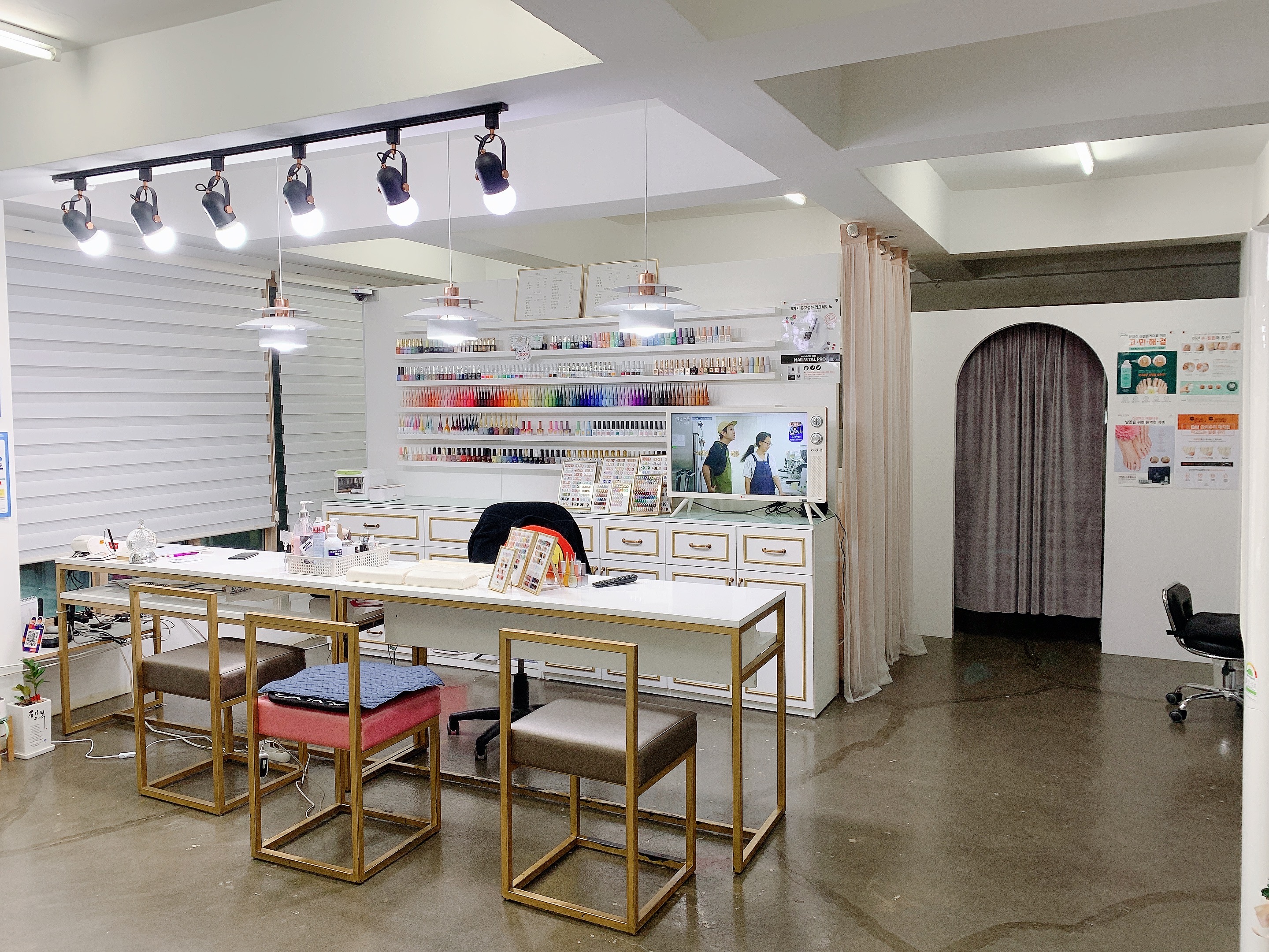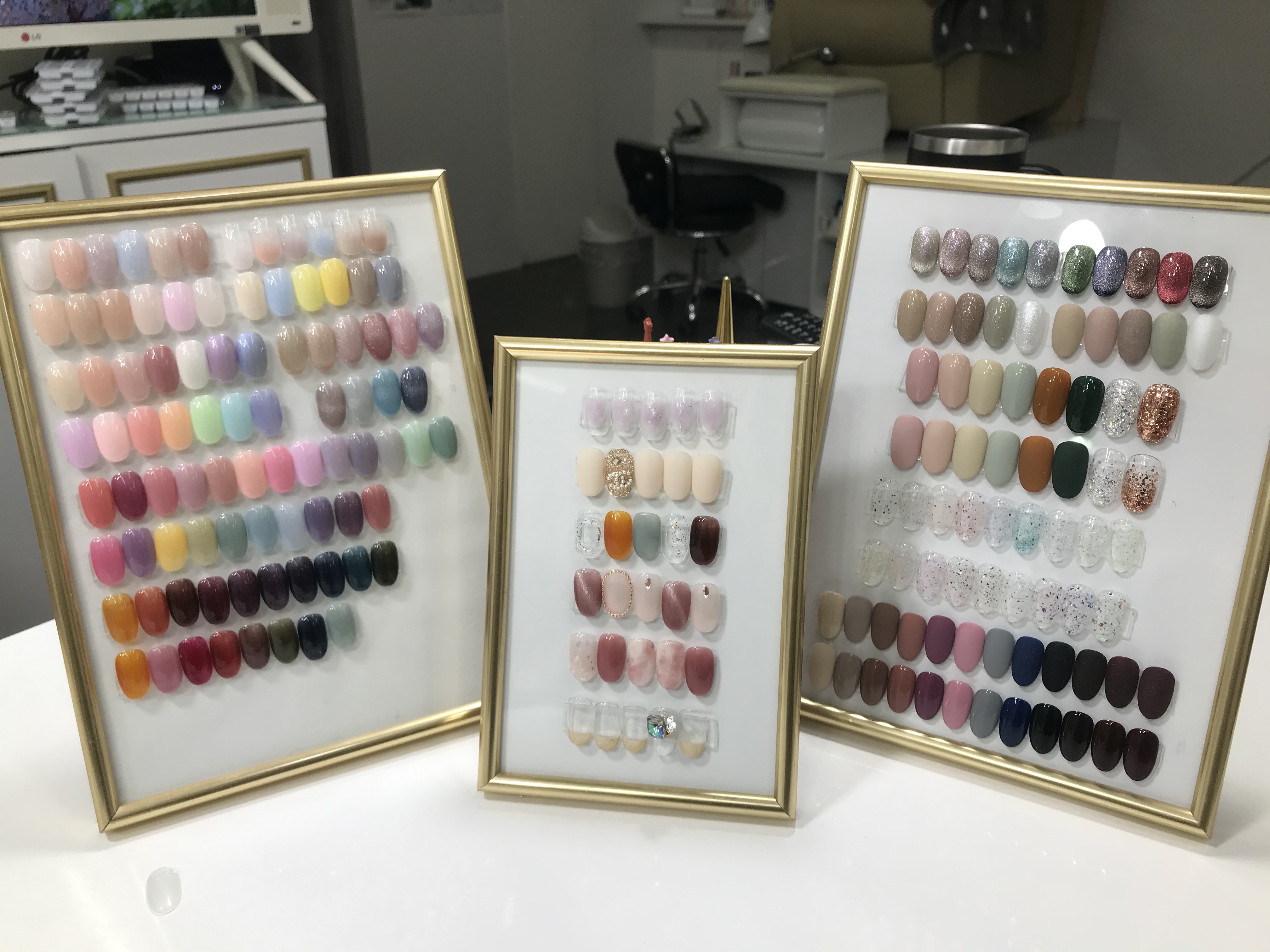 깨끗한 화이트톤의 인테리어에 컬러풀한 젤네일들이 나란히 줄세워져있어요. 원장님의 꼼꼼하고 깔끔한 성격이 돋보이는 것 같아요.
