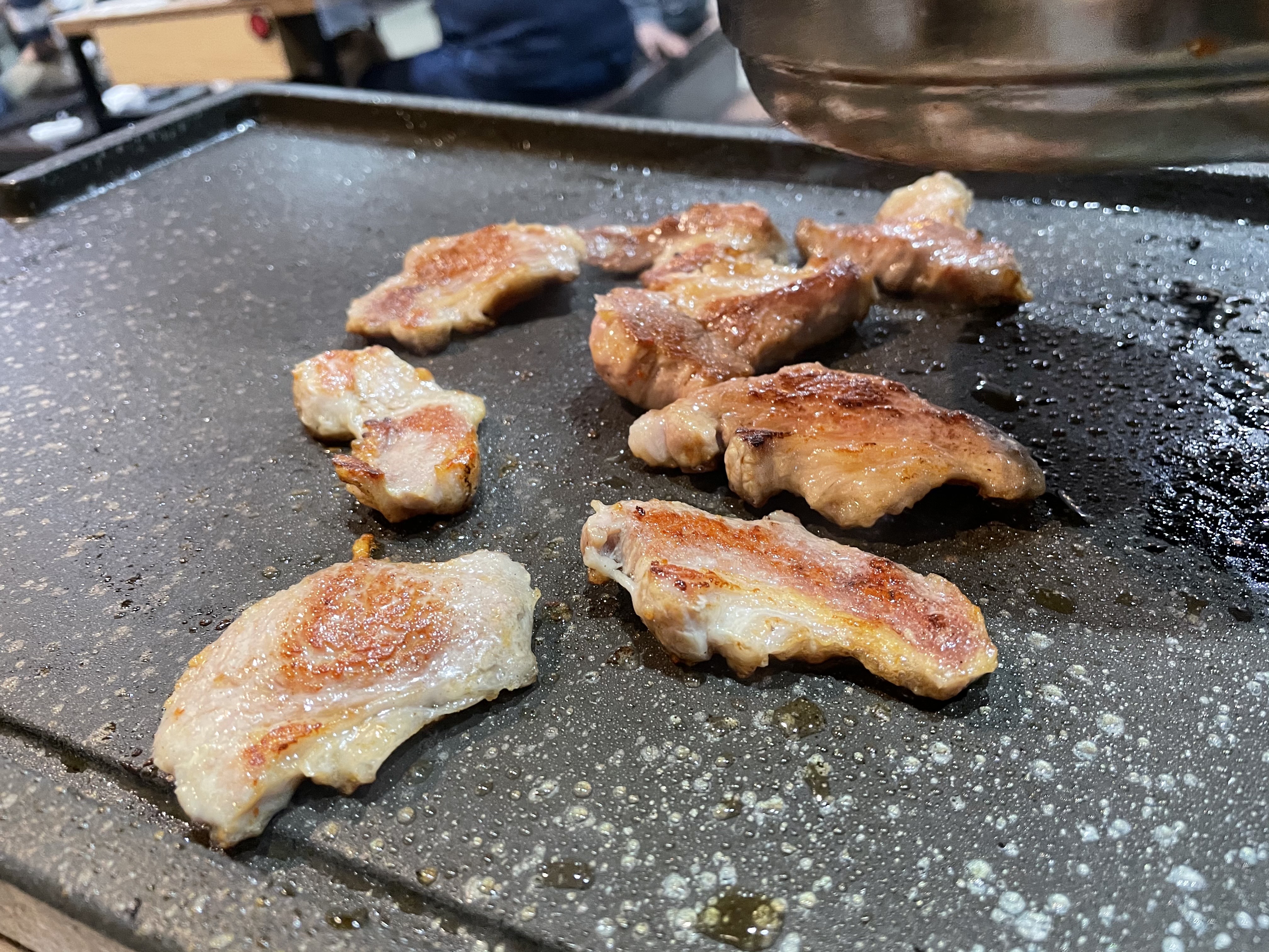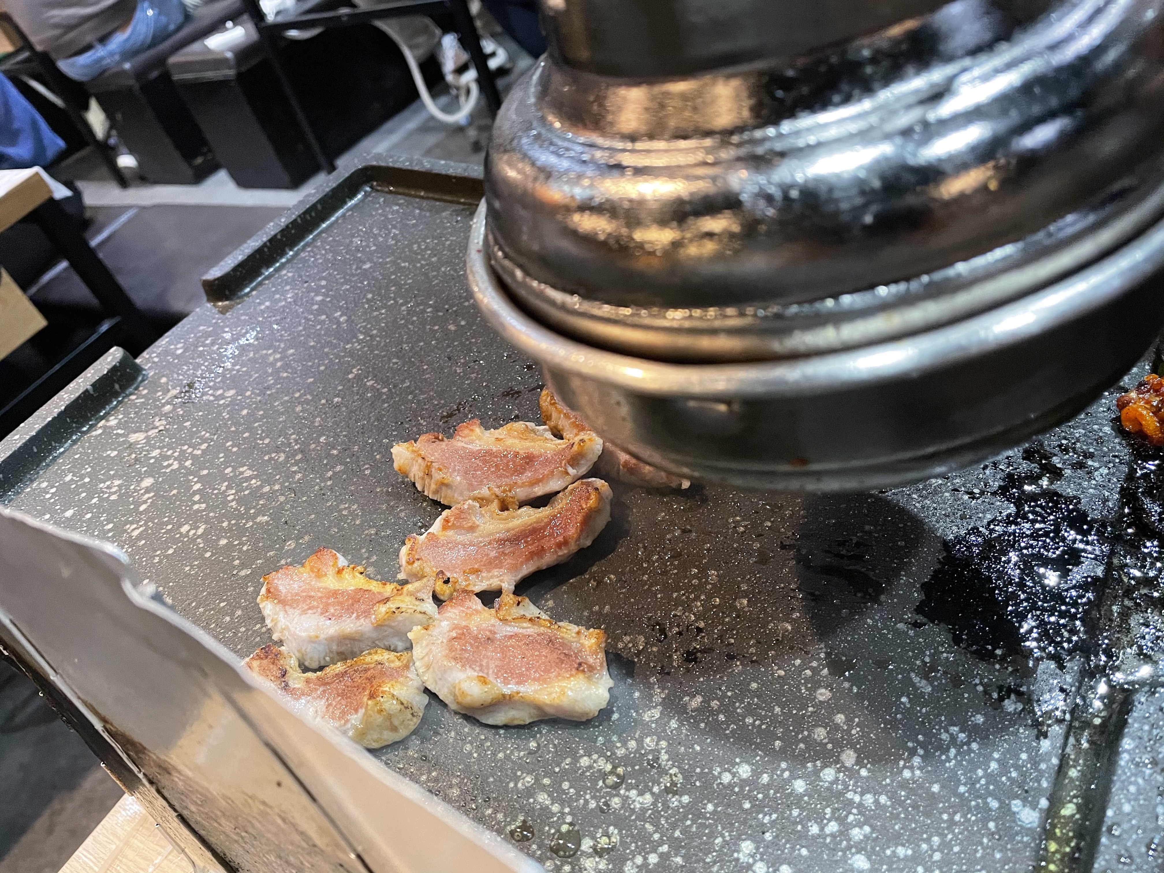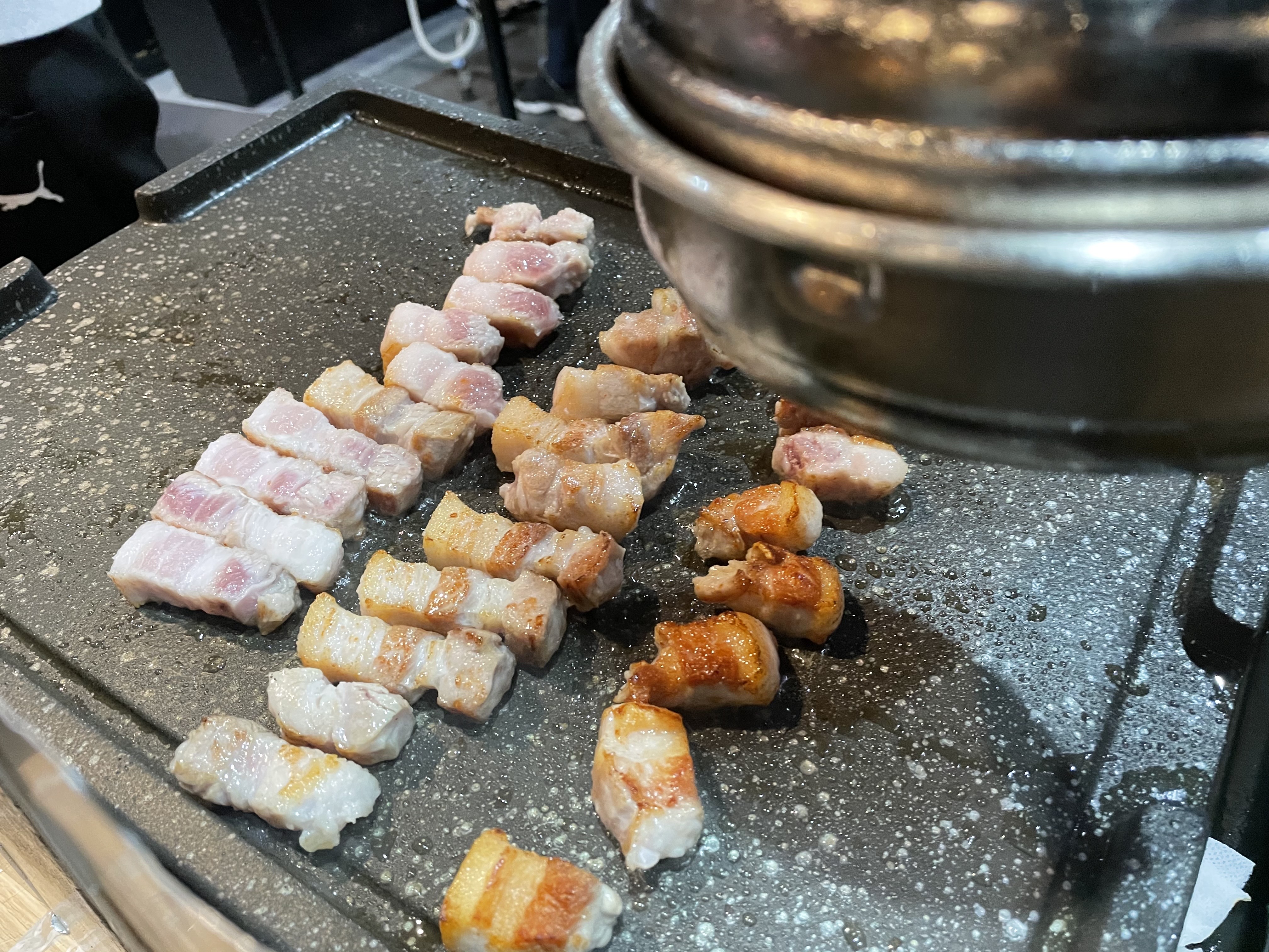 2. 하지만 어제가 삼겹살데이라 그런지 너무 바쁘셔서 고기를 너무 늦게 구워주시고, 벨을 눌러도 안 오시고...