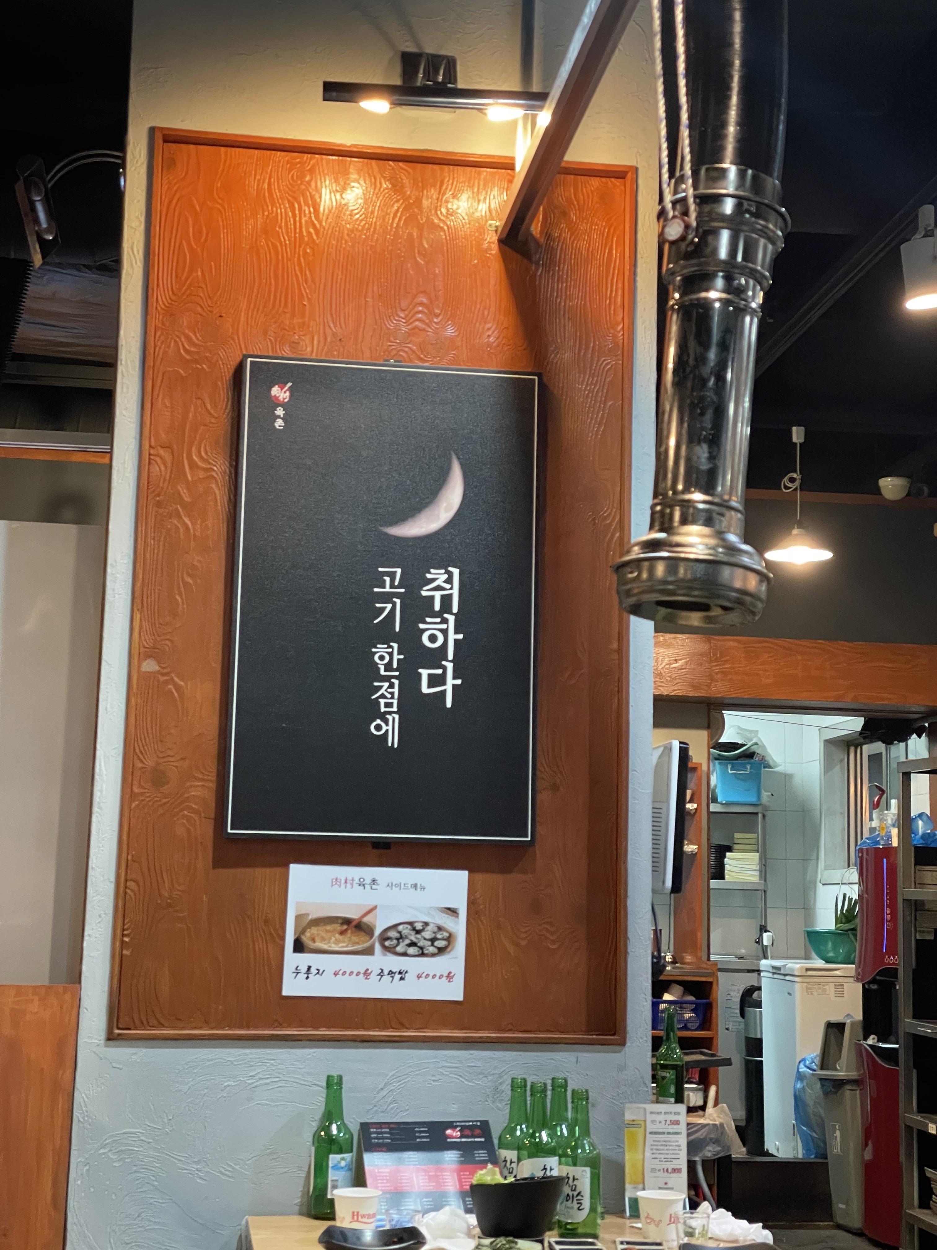 맞은편에는 바로 다연이라는 고깃집이 있어서 살짝 고민을 했지만, 상대적으로 덜 붐비는 육촌을 선택했어요. 원래는 하남돼지집이었는데 바뀐 것 같네요.