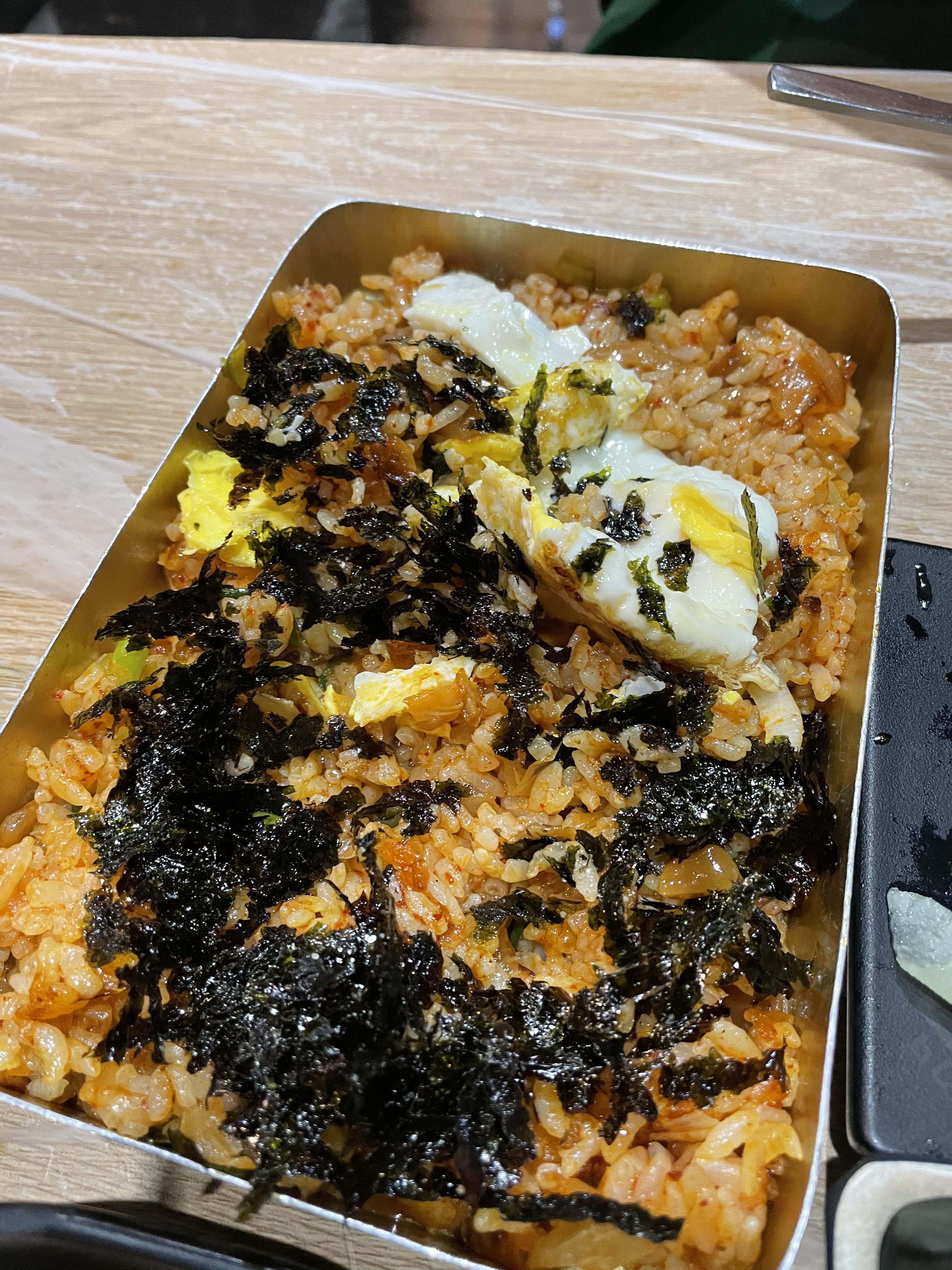 반찬으로 나온 김치도 구워주셨는데 참기름인지 들기름인지를 뿌려서 더 맛있었어요.