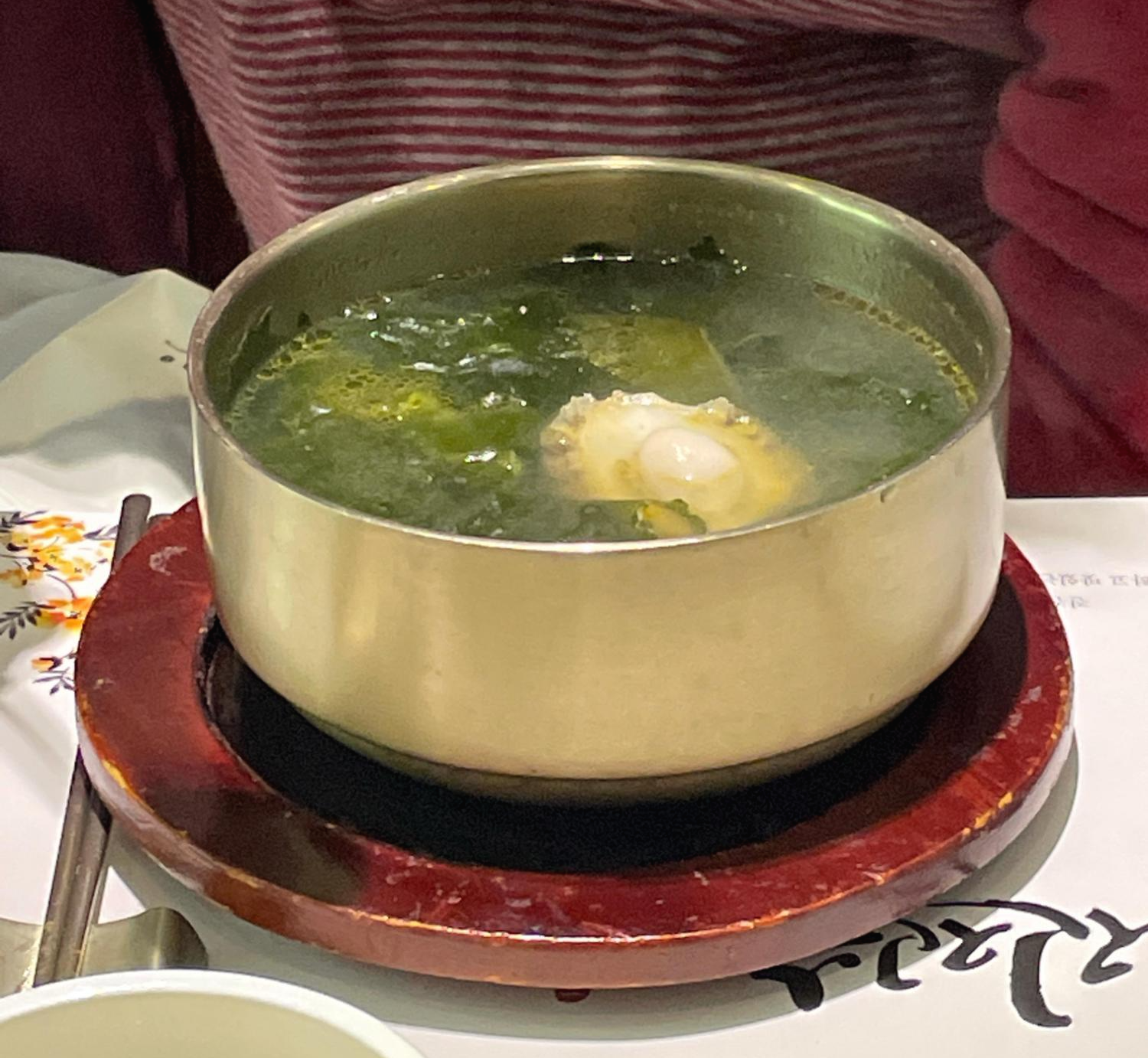이건 미역국인데, 메뉴에는 없지만 일행분들중에 생신이신 분이 계셔서 서비스로 주신 것 같았어요. 된장찌개보다 맛있고 좋았어요. 전복이 들어있어서 좋았네요.