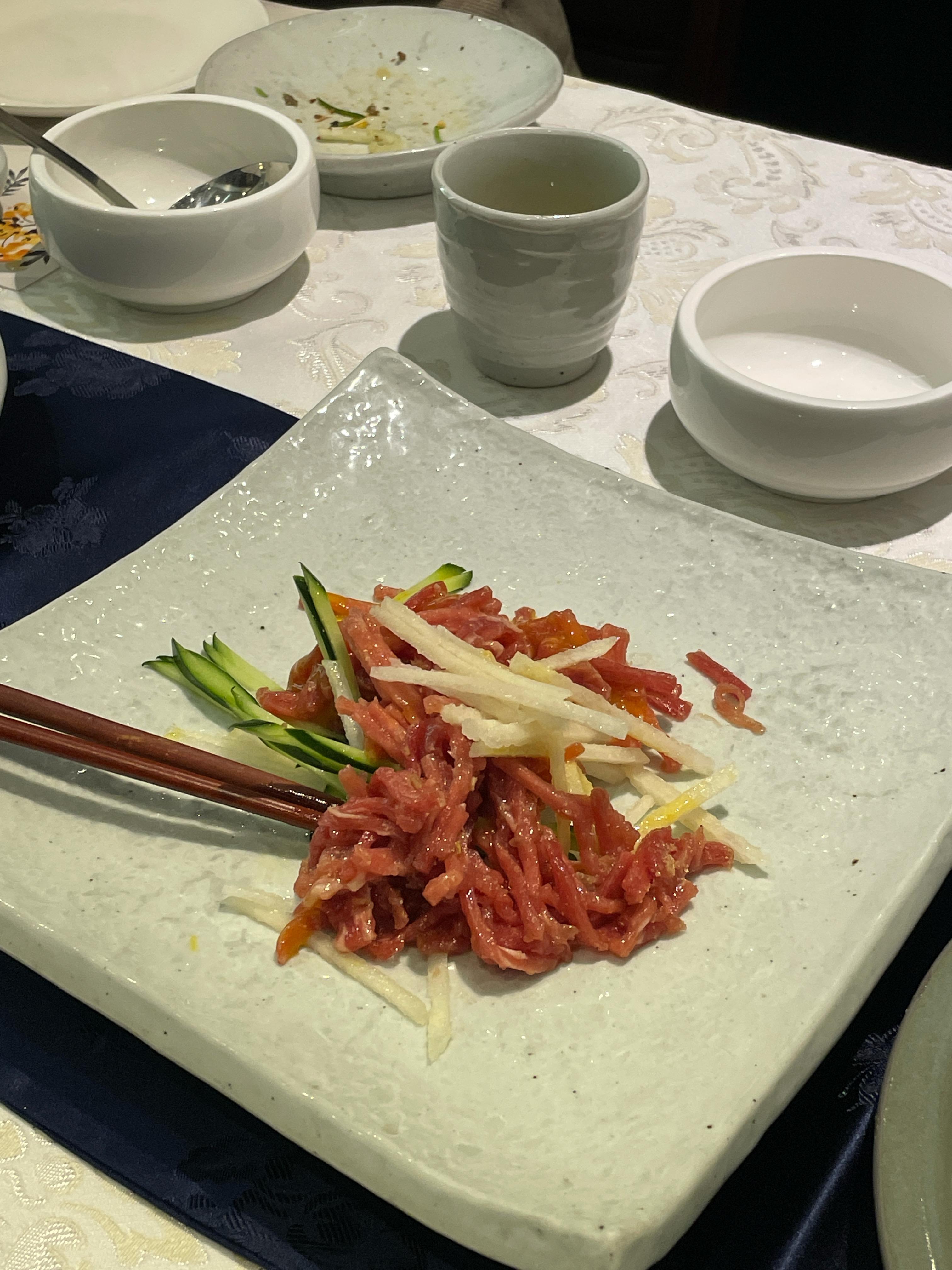 육회는 제가 아는 그 맛. 참기름이 뿌려져 고소했어요.