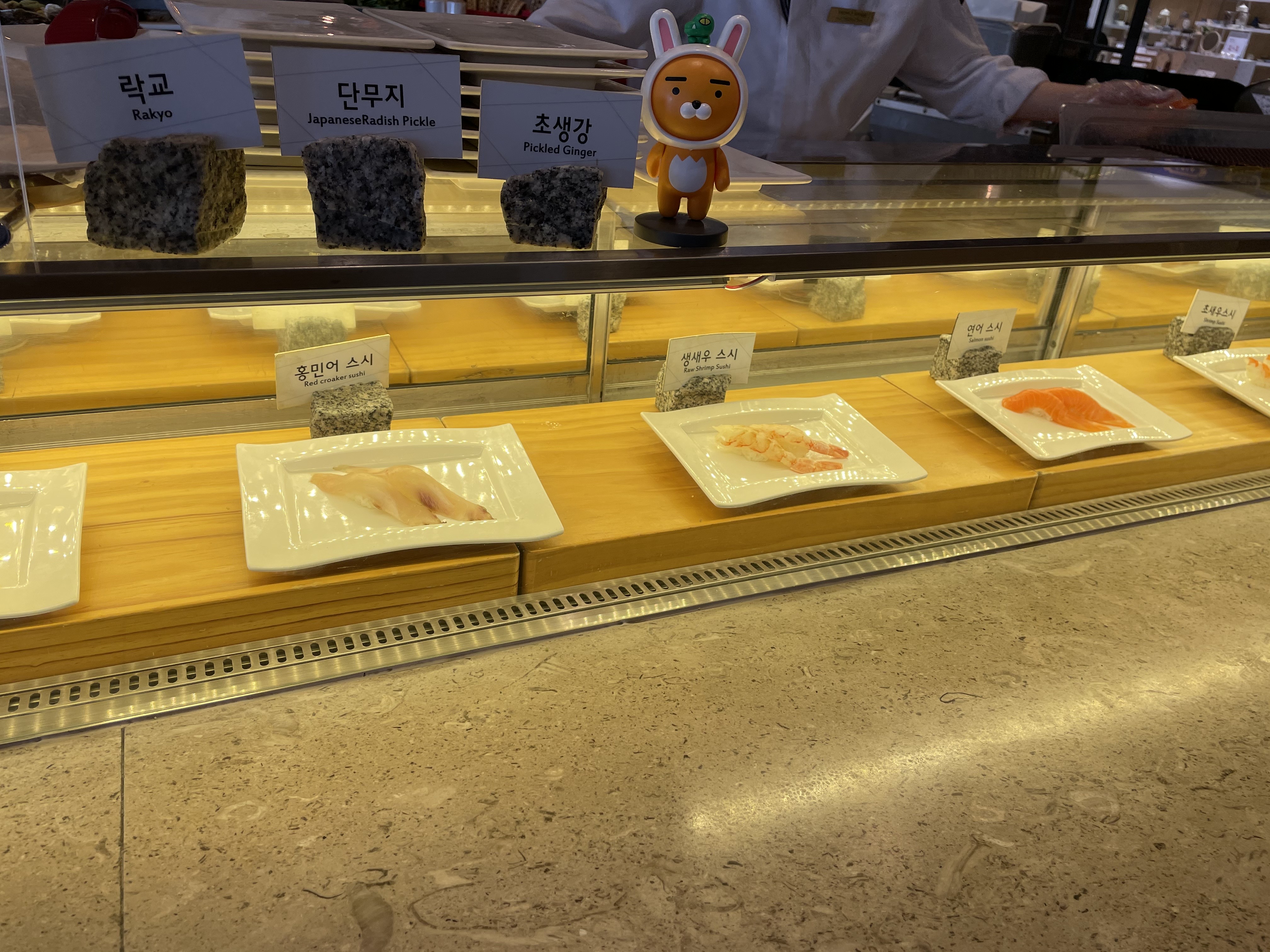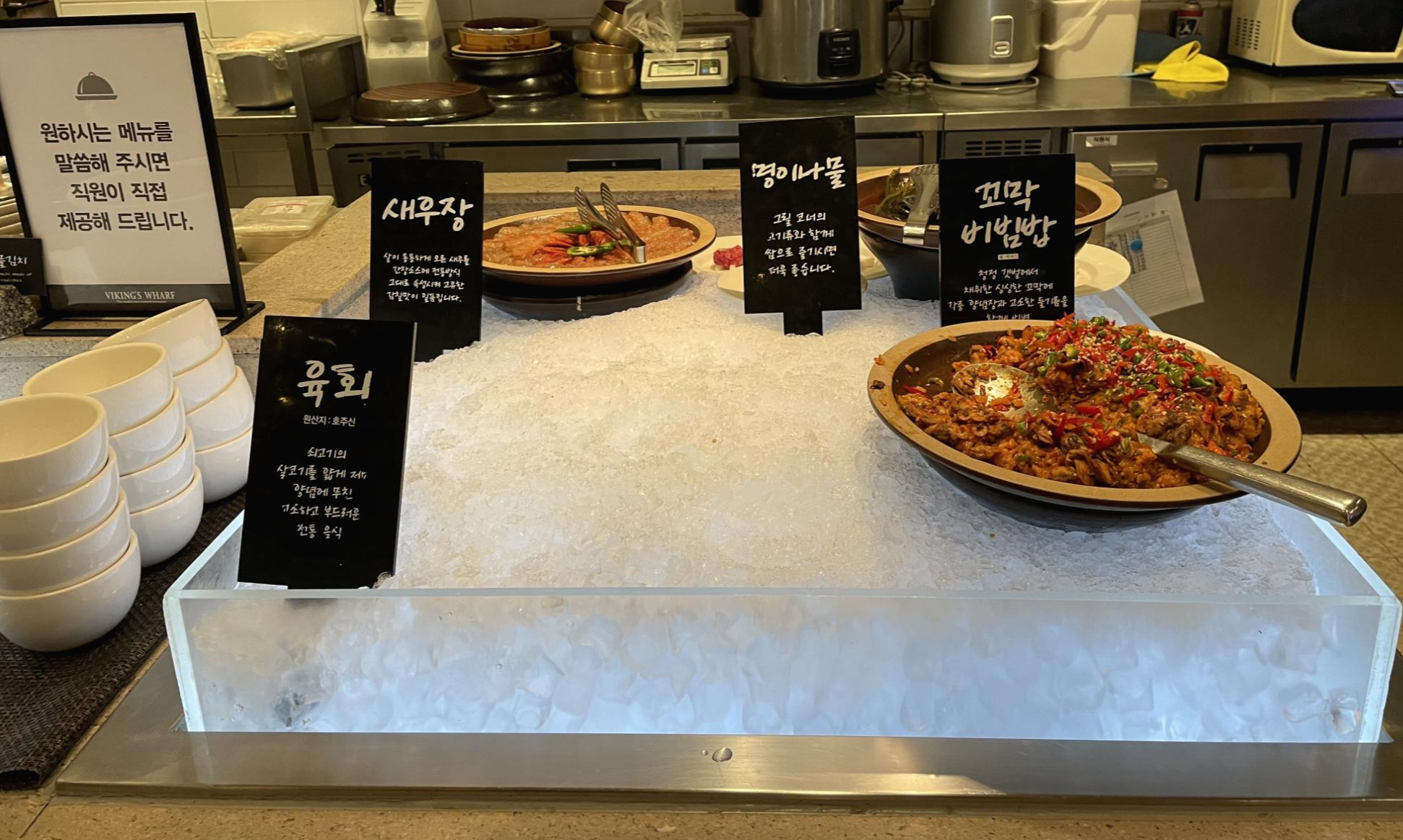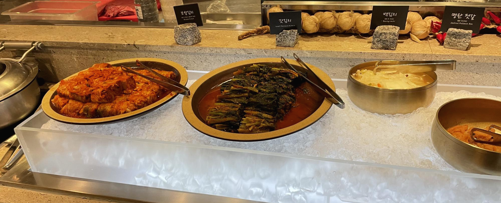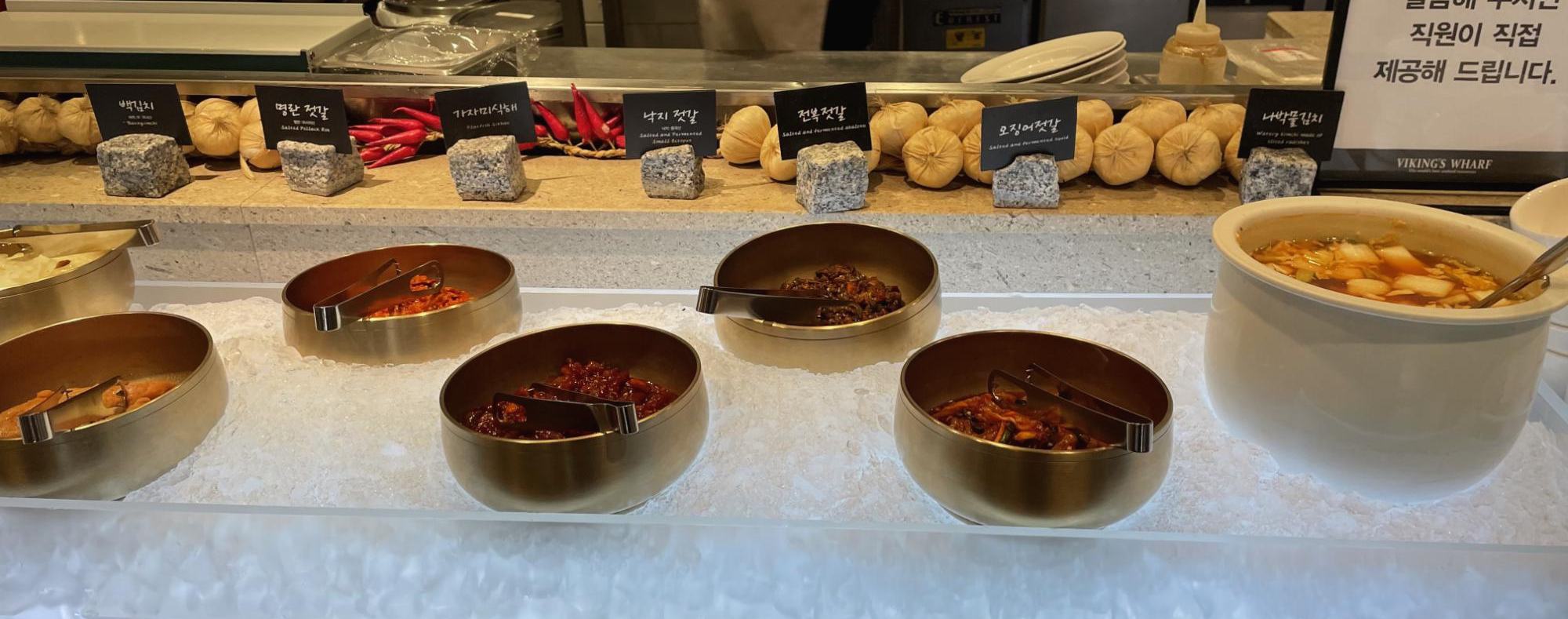 이 곳은 한국 반찬들이 가득해요. 김치도 보쌈김치, 갓김치, 백김치, 나박김치 등 다양하고, 젓갈도 낙지, 전복, 명란, 오징어, 가자미식해 등 다양하게 있었어요. 아무래도 해산물과의 조합을 생각해서 다양하게 구성된 것 같았어요.