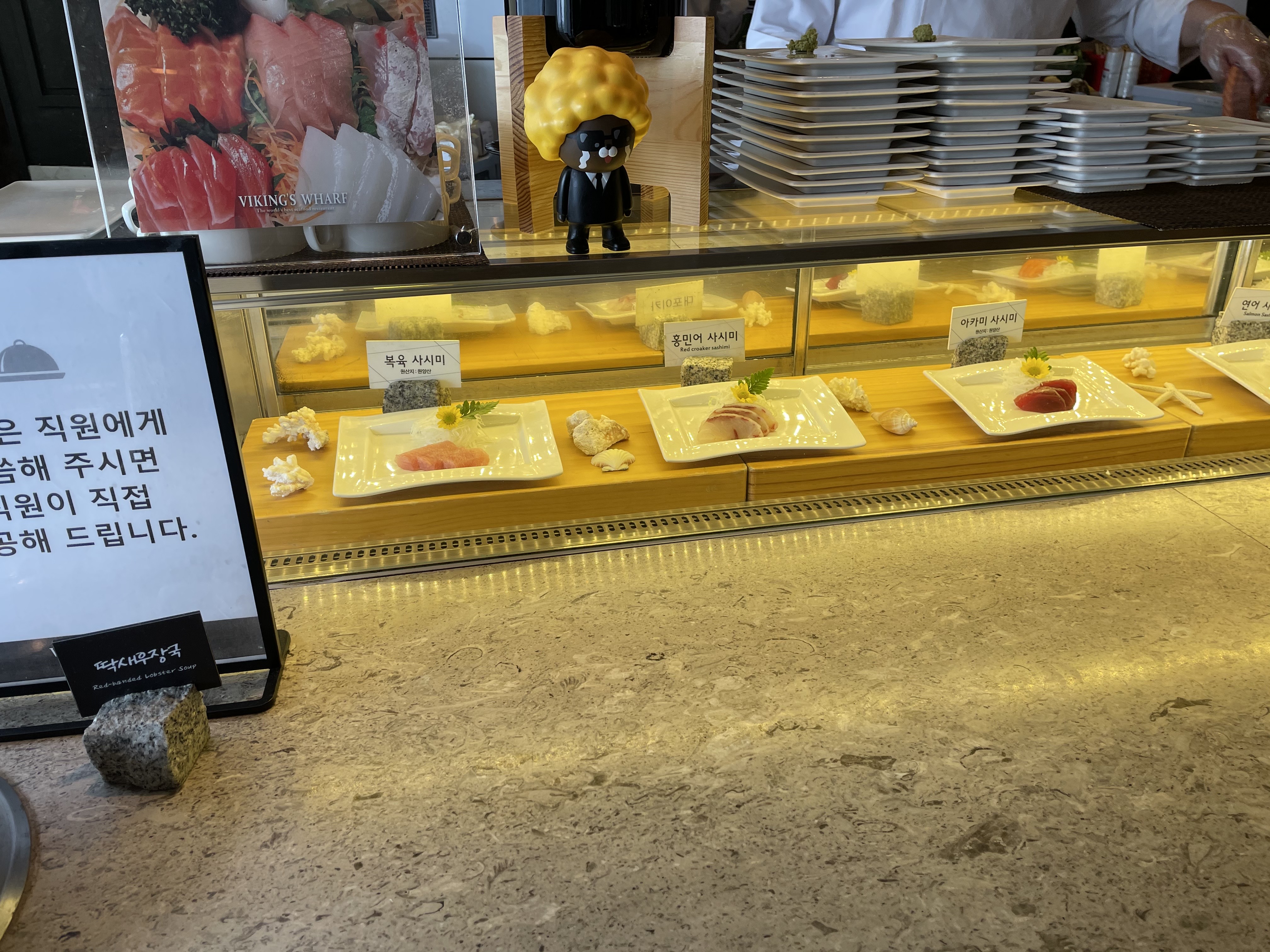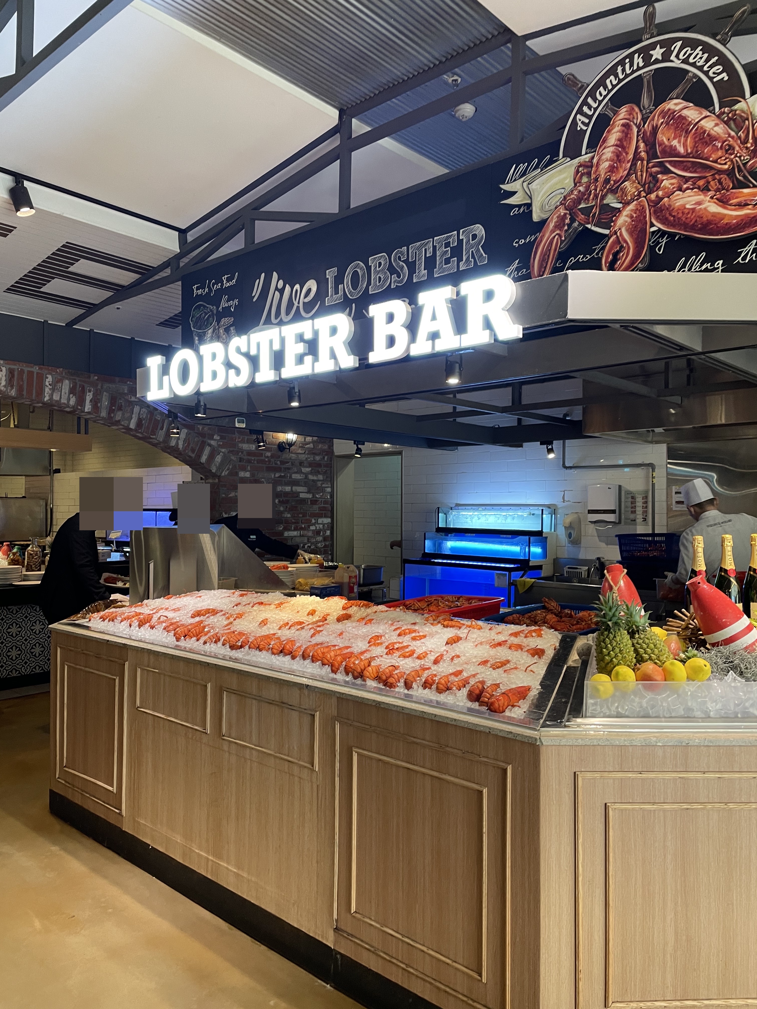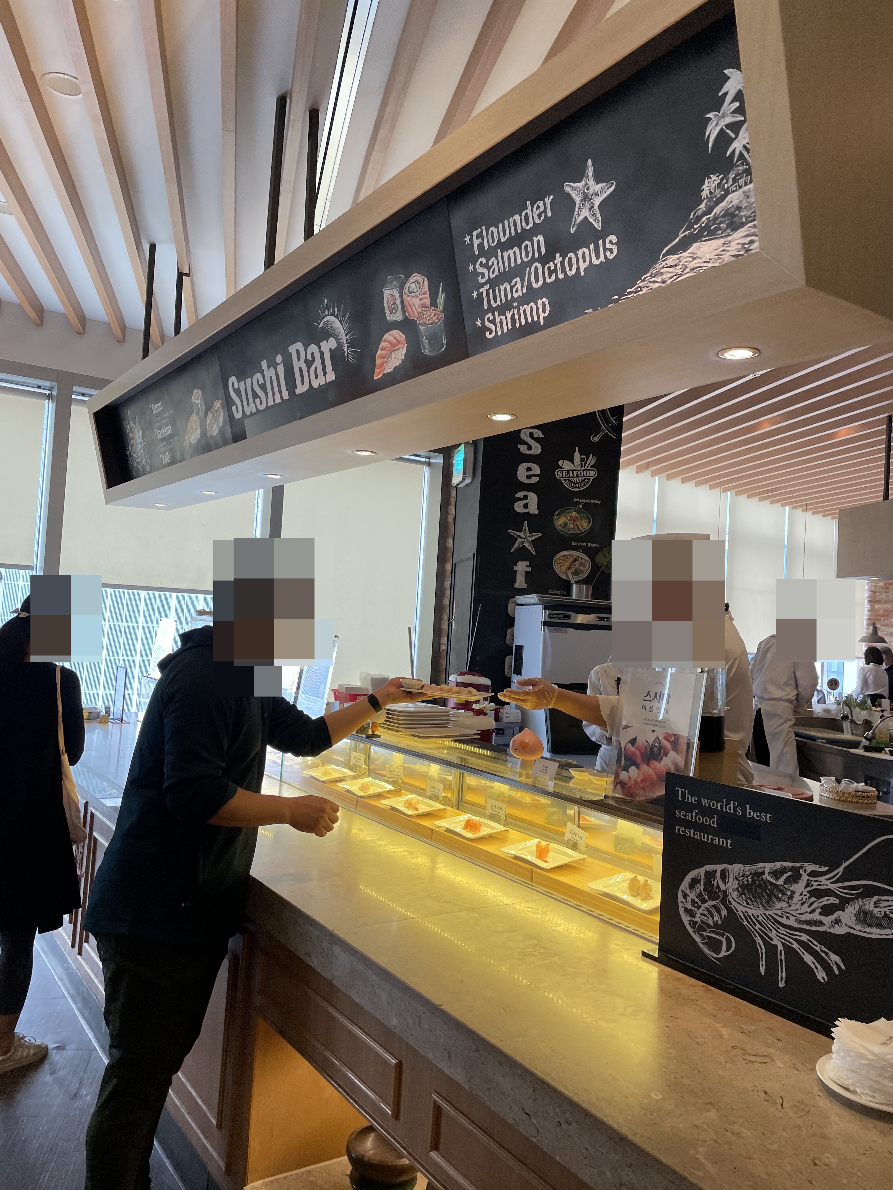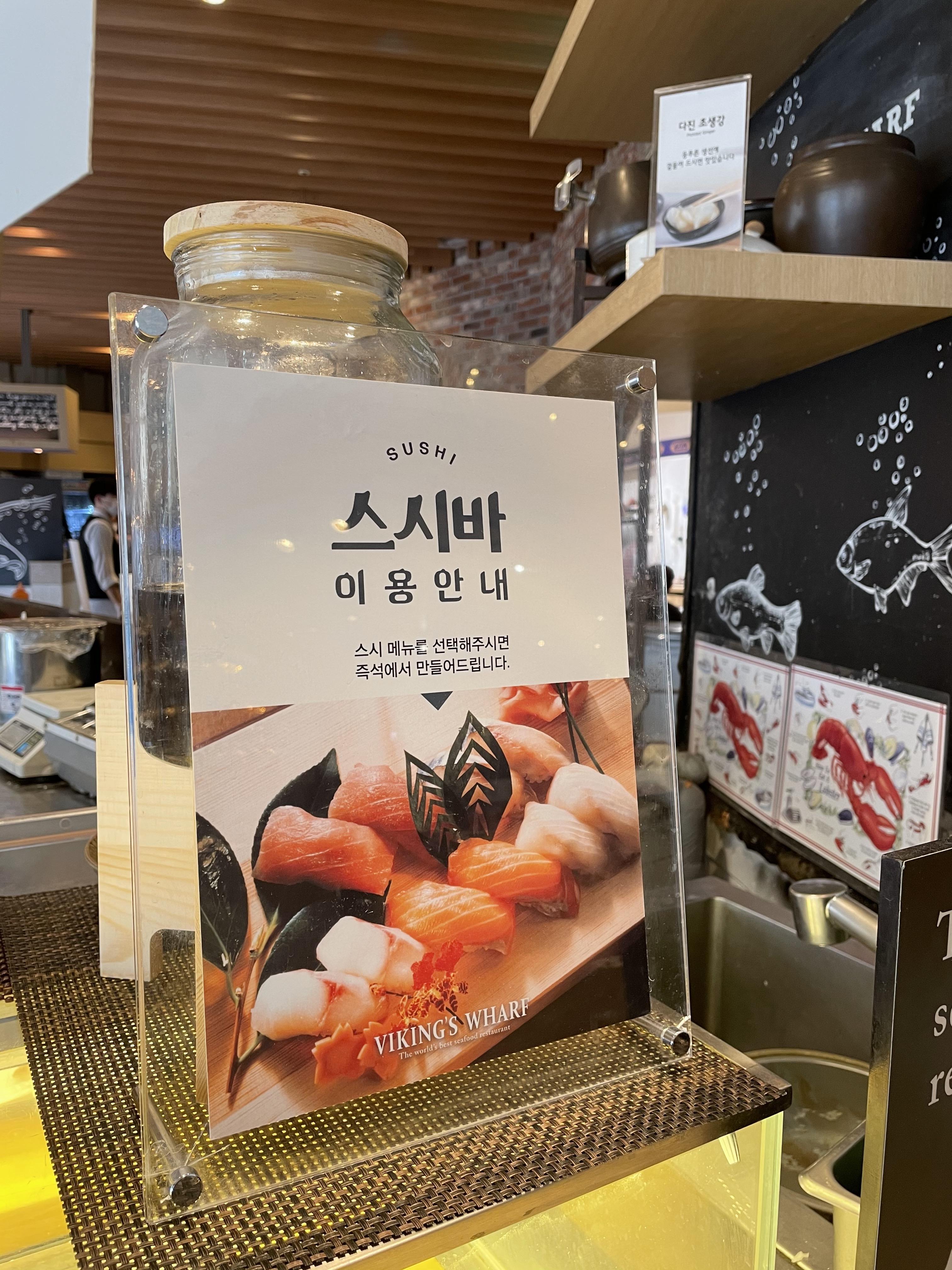크게 랍스터바, 그릴바, 스시바, 해산물코너, 샐러드코너, 디저트코너와 기타 요리를 먹을 수 있는 아시안코너로 나눠져 있어요.