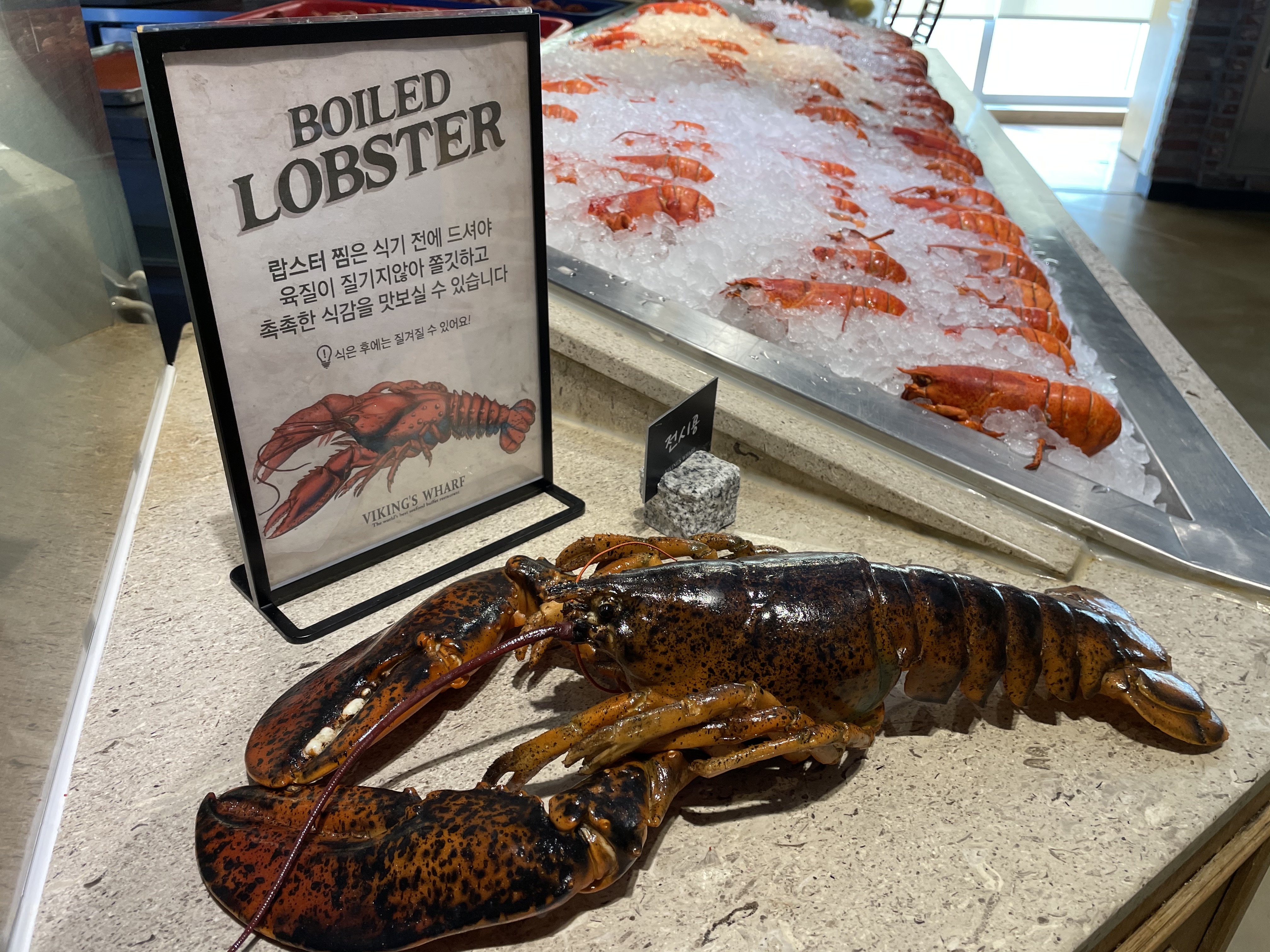 랍스터바에서는 찐 랍스터를 맛볼 수 있어요. 아무래도 바이킹스워프의 메인인 것 같아요! 서 계신 직원분께 원하는 마릿수와 테이블 넘버를 말씀하시면 가져다주십니다.