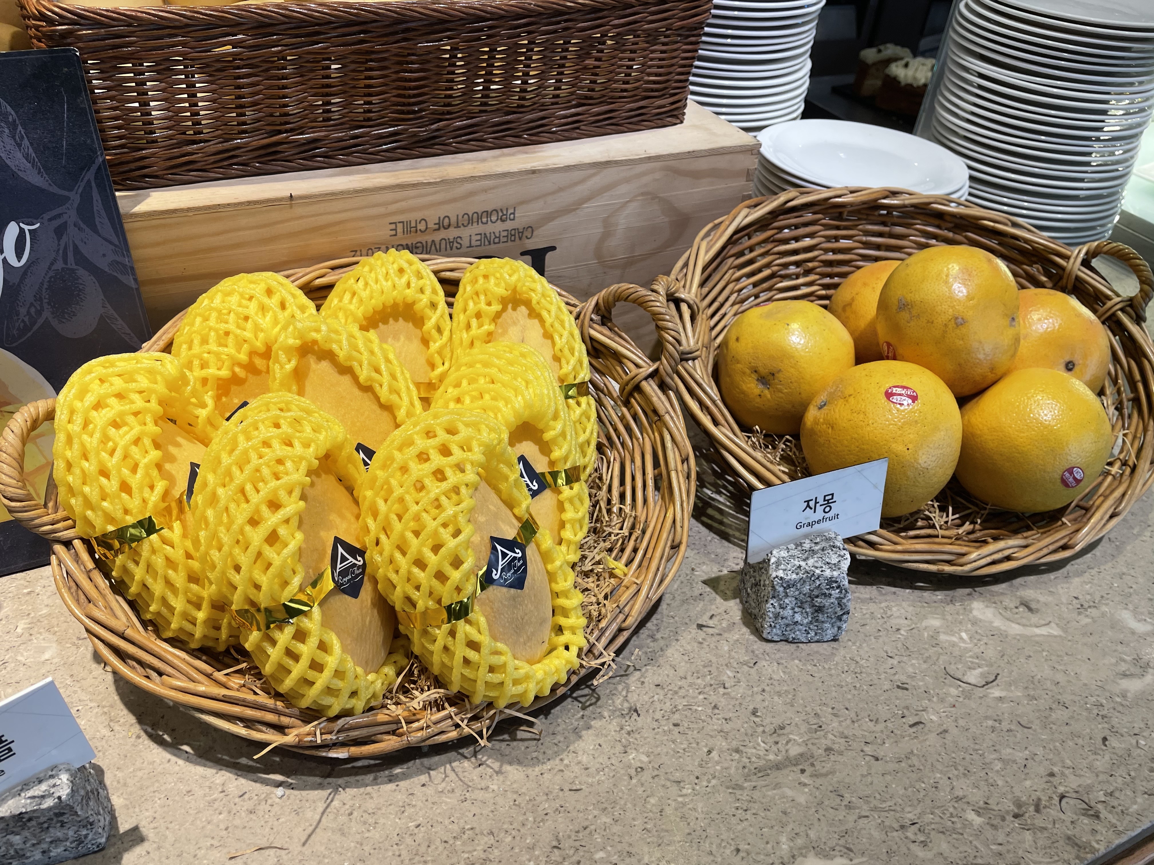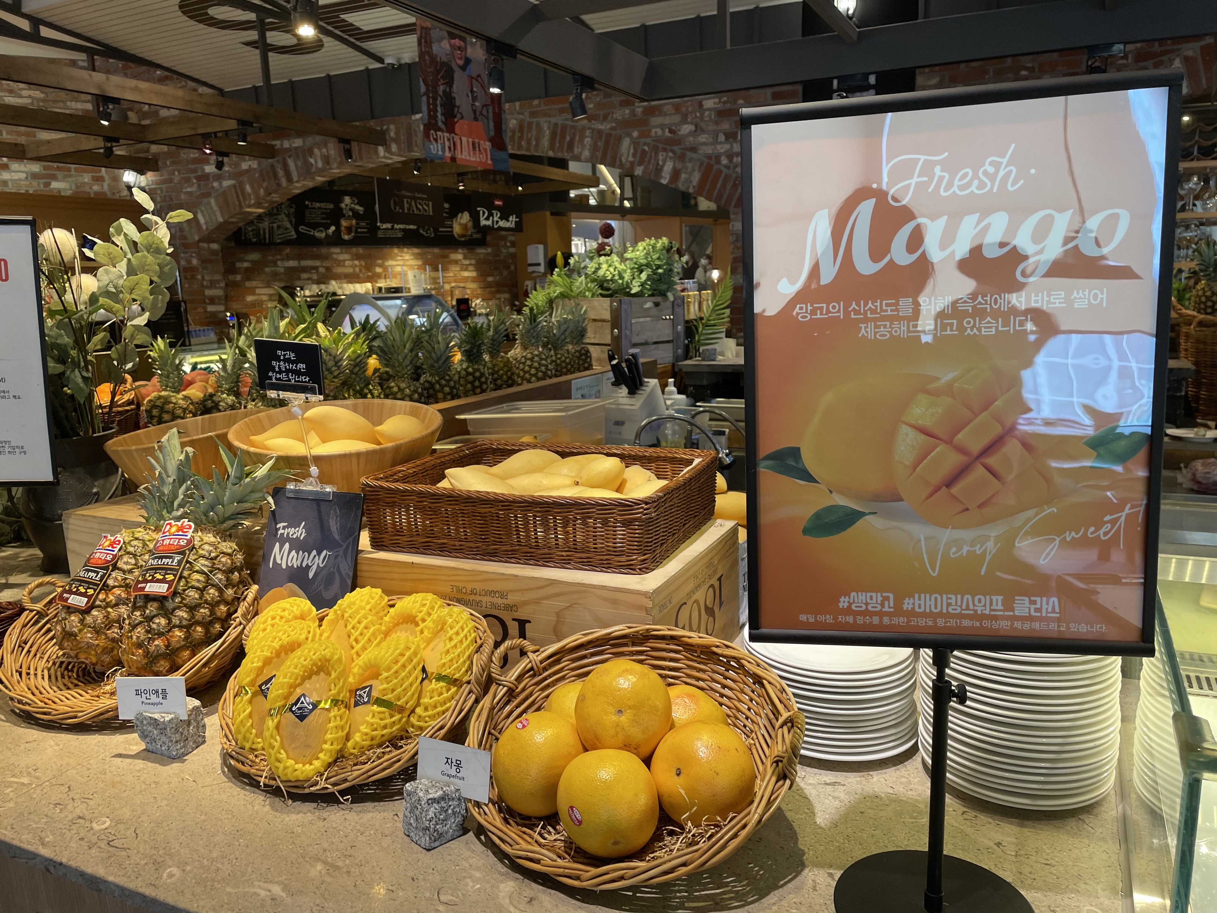 망고와 파인애플, 자몽을 즉석에서 잘라주시는 코너예요. 망고를 좋아해서 한 4 접시 먹었던 것 같네요.