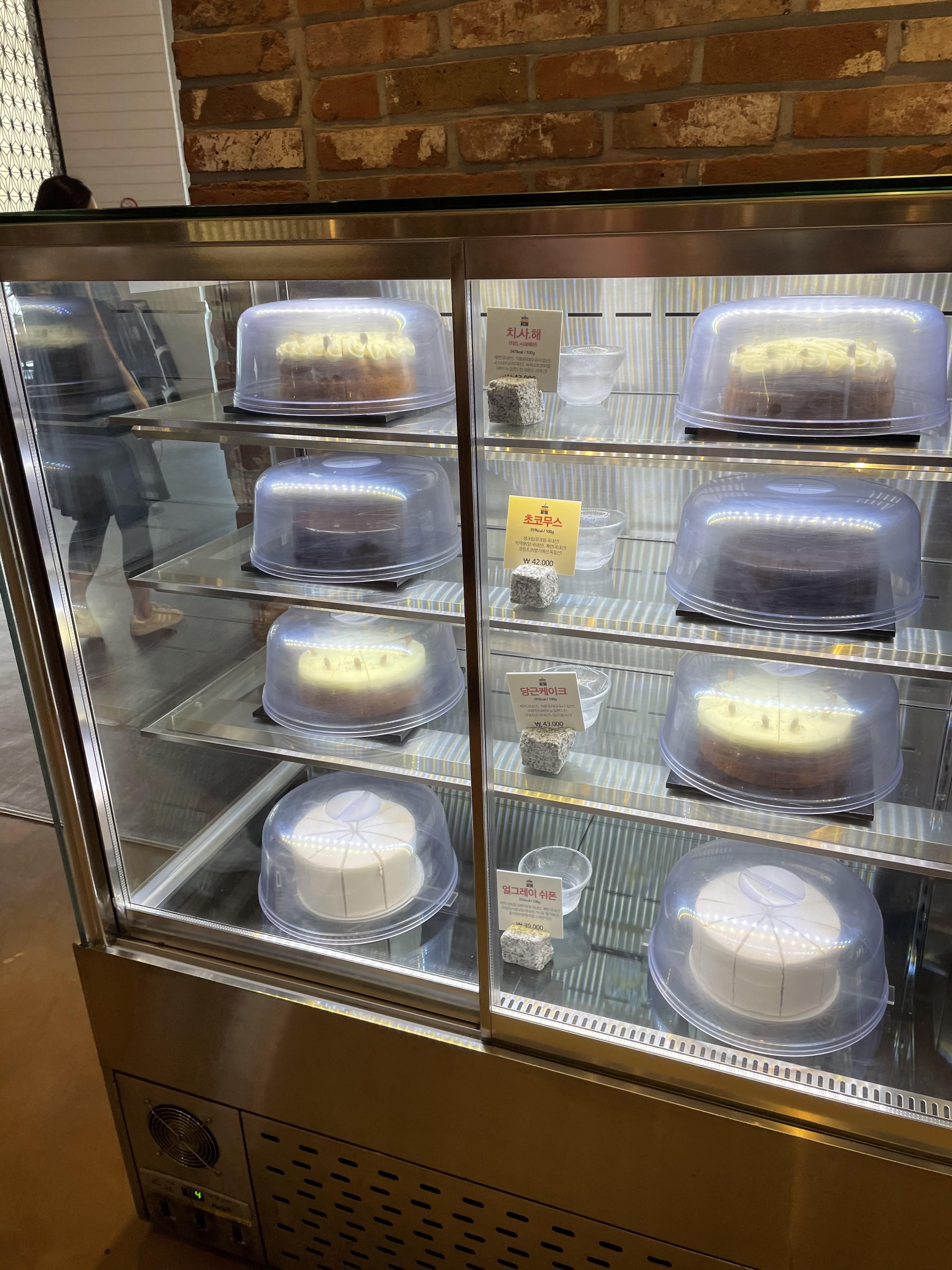 입구 쪽에는 이렇게 홀케이크로도 구매할 수 있게 안내한 진열 냉장고도 있었어요.