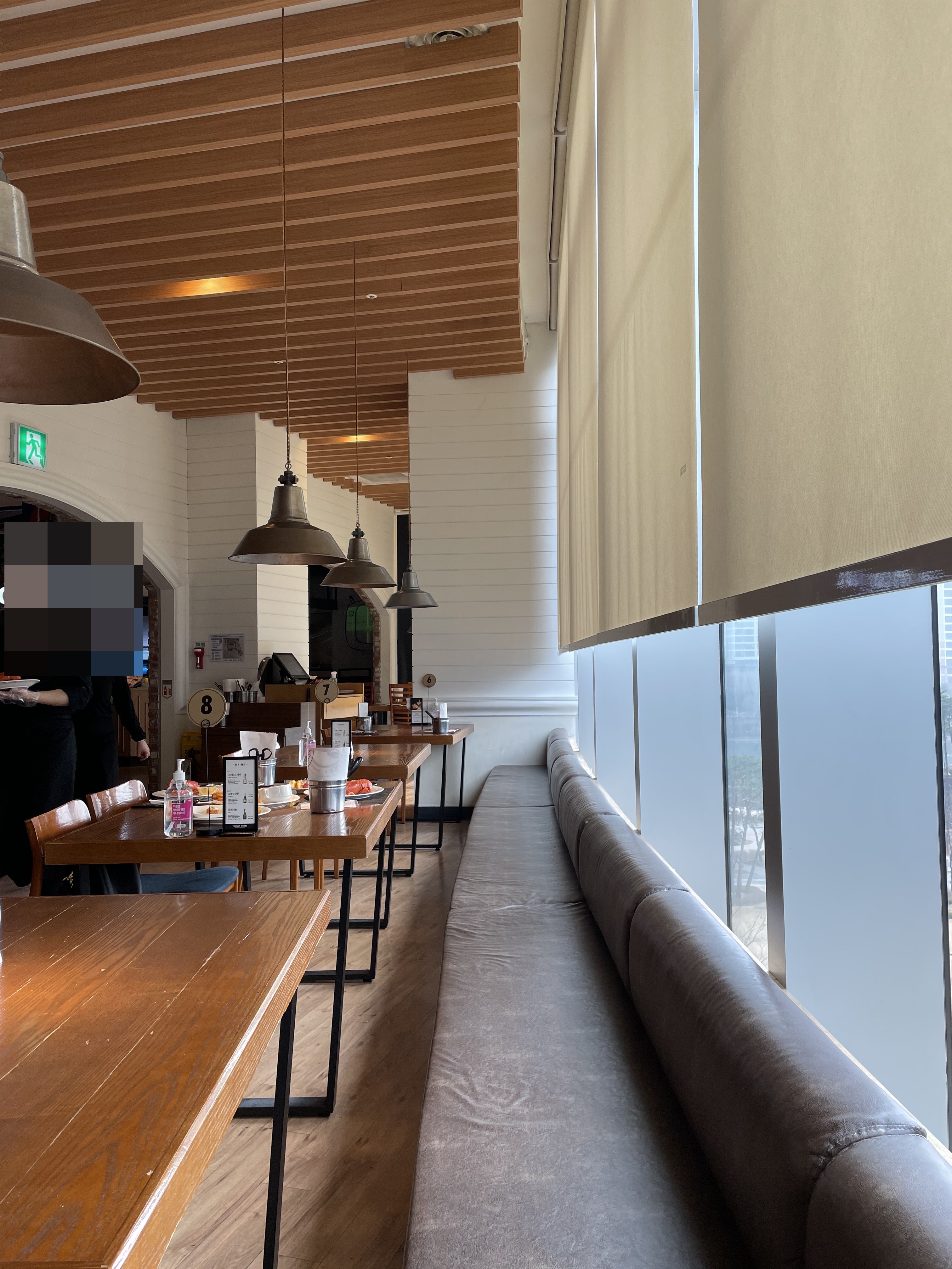 저희는 이런 창가 자리에 배정받았는데, 기본 4인석 같은 테이블에 앉게 돼서 테이블이 좁다거나 한 건 전혀 없었어요.