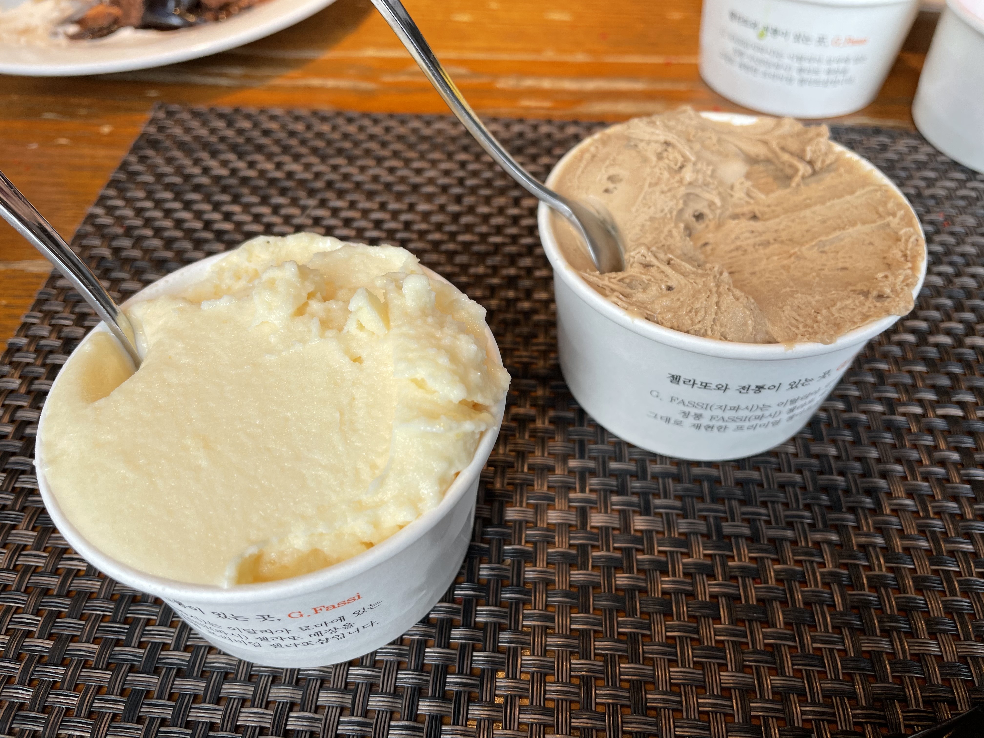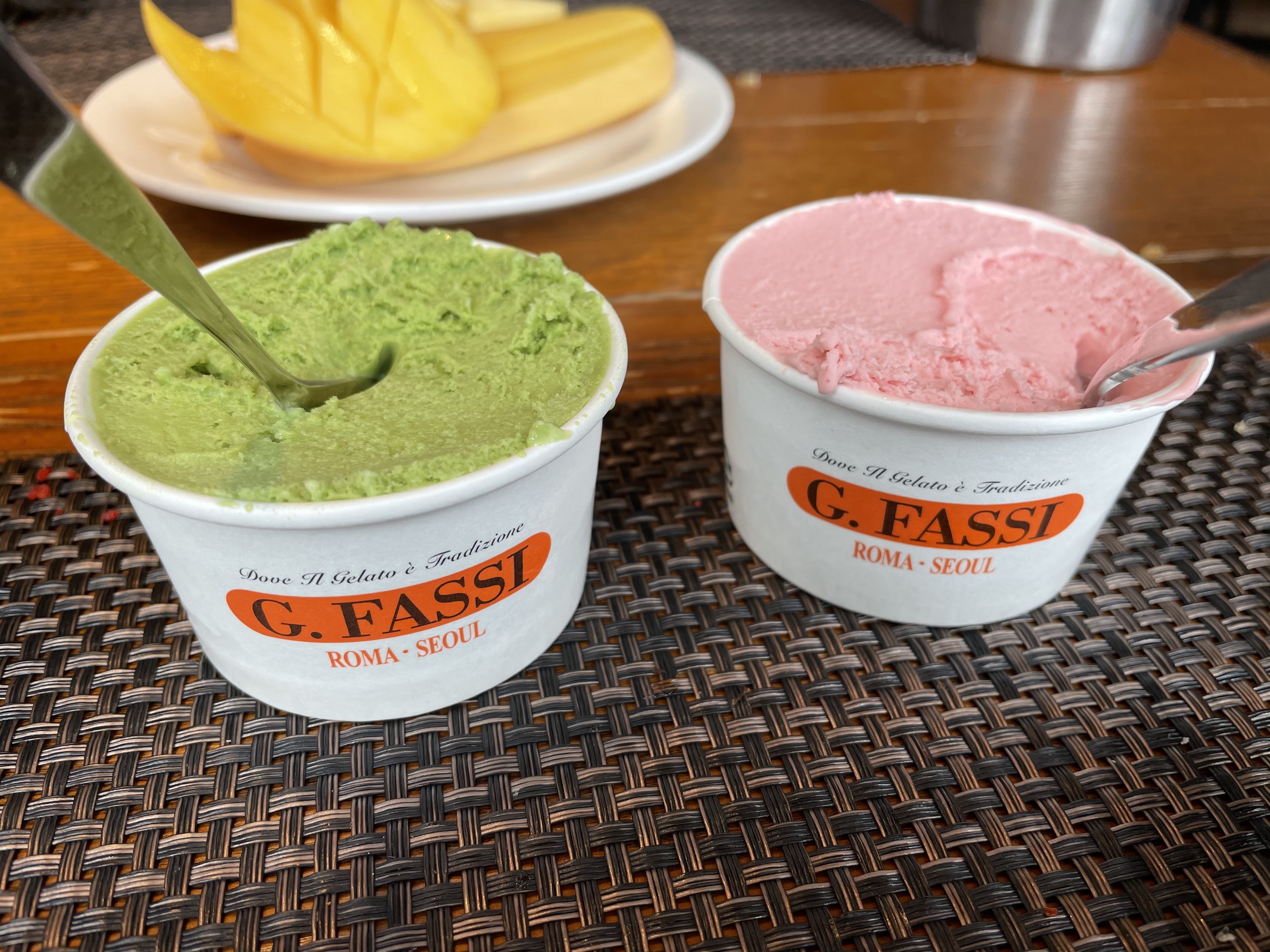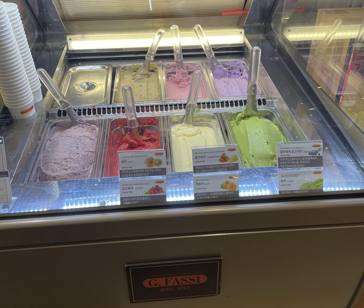 지파씨라는 젤라또아이스크림 브랜드인가봐요. 리조네로, 호두, 라즈베리, 딸기치즈, 복숭아, 블루베리요고라또, 녹차 까지 8가지 맛이 있었어요.
