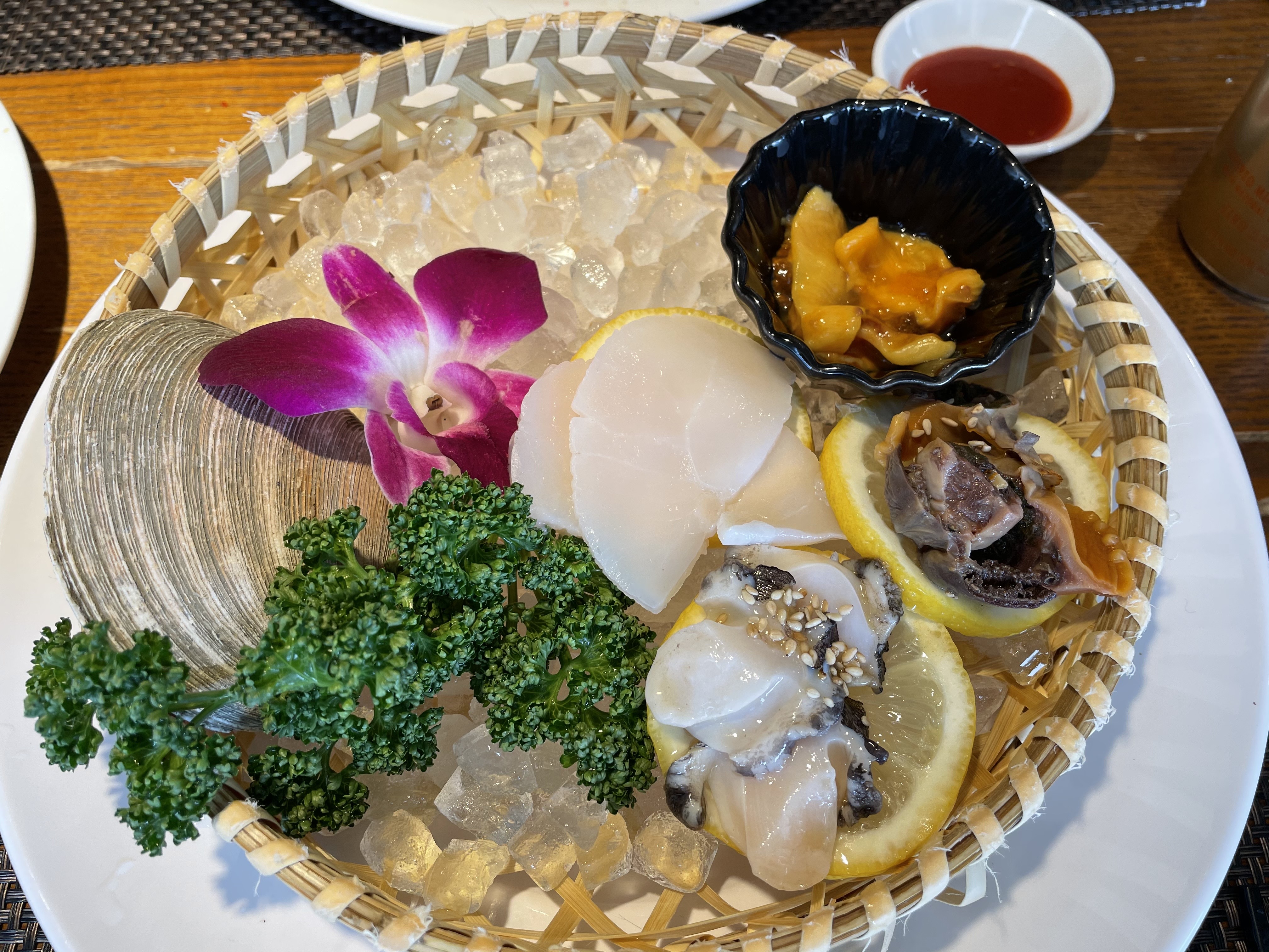 가리비, 전복, 키조개, 피조개, 참소라 등을 시켰어요. 정말 해산물들이 다 맛있었는데, 저는 특히 전복이 좋아서, 두 번째 받을 때는 전복을 두 개 시켰어요! 아 그런데 개인적으로 키조개는 식감이 제 스타일이 아니었어요.