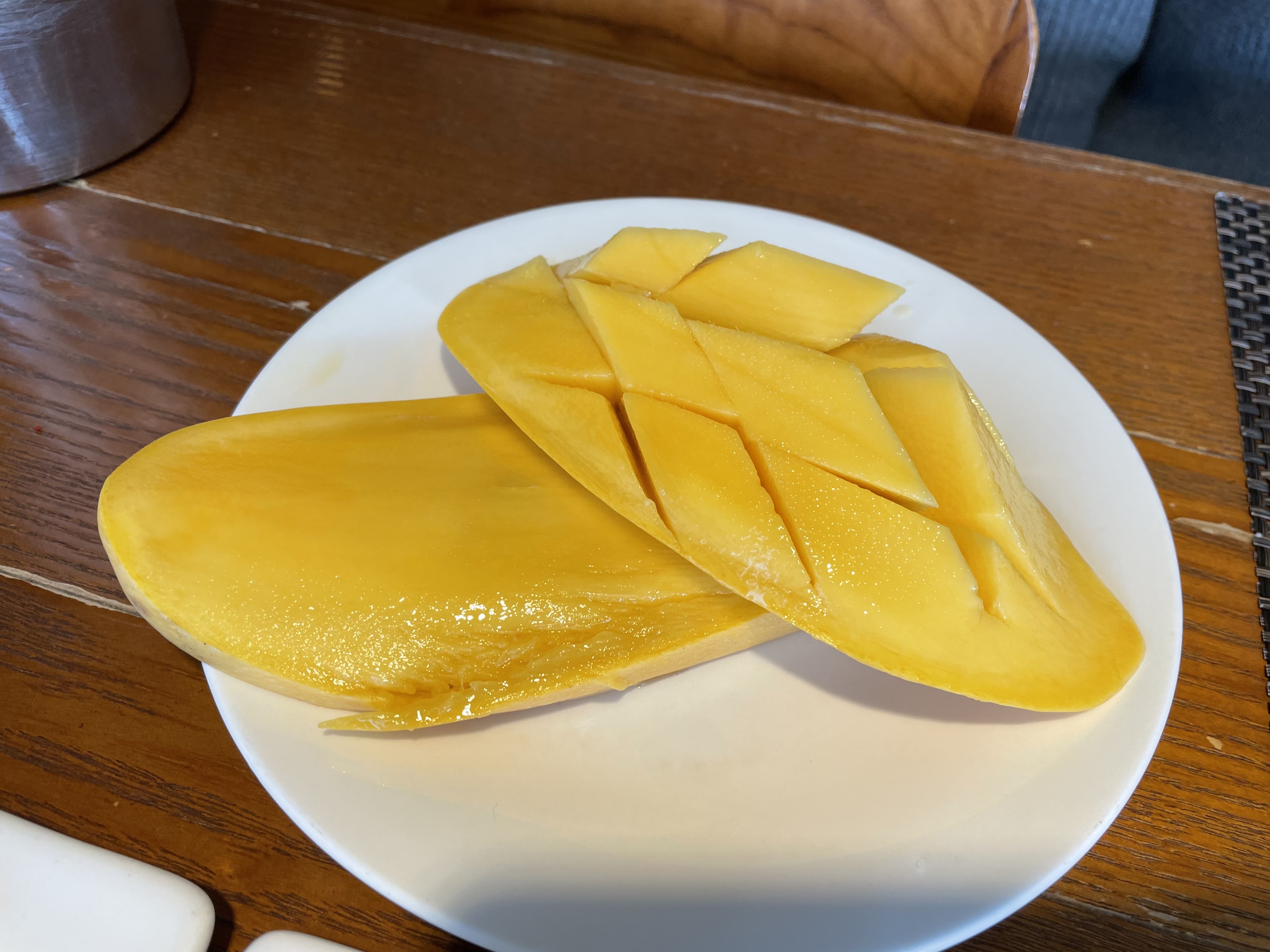 한참 먹은 망고예요. 숟가락이나 나이프로 떠먹으면 깔끔하게 클리어하실 수 있어요. 당도도 높고, 좋았어요.