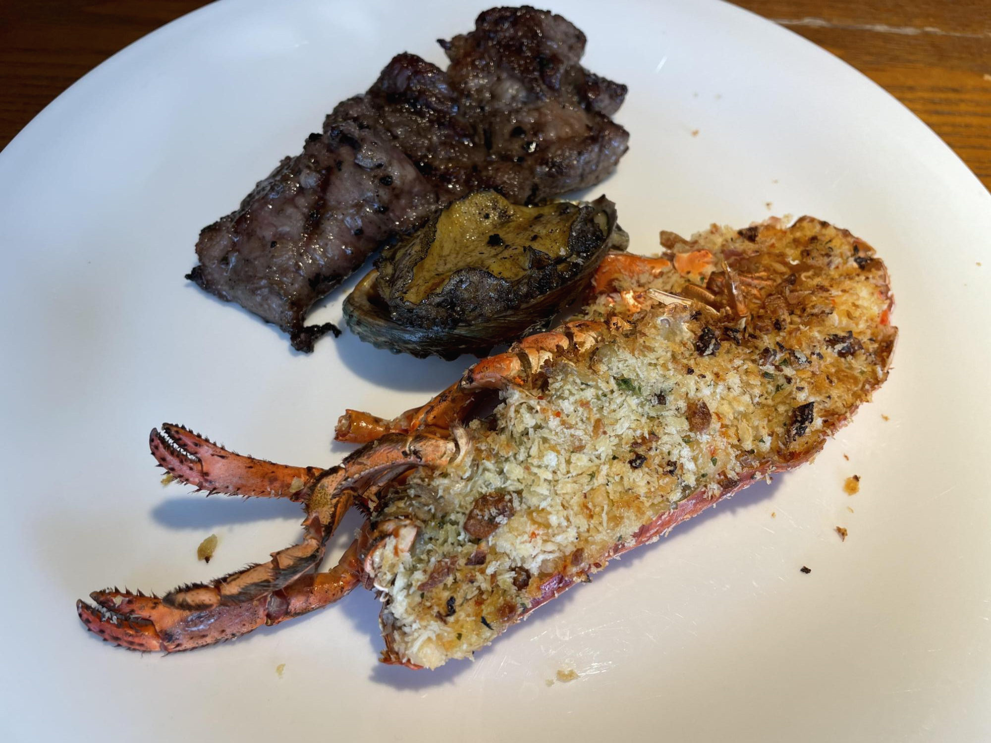 1. 베이크랍스터 : 치즈가 들어간 구운 랍스터예요. 하지만 저는 이걸 먹느니 찜이 더 낫다고 생각했어요. 노동에 비해 먹을 수 있는 것이 거의 없었어요. 맛은 괜찮았어요.