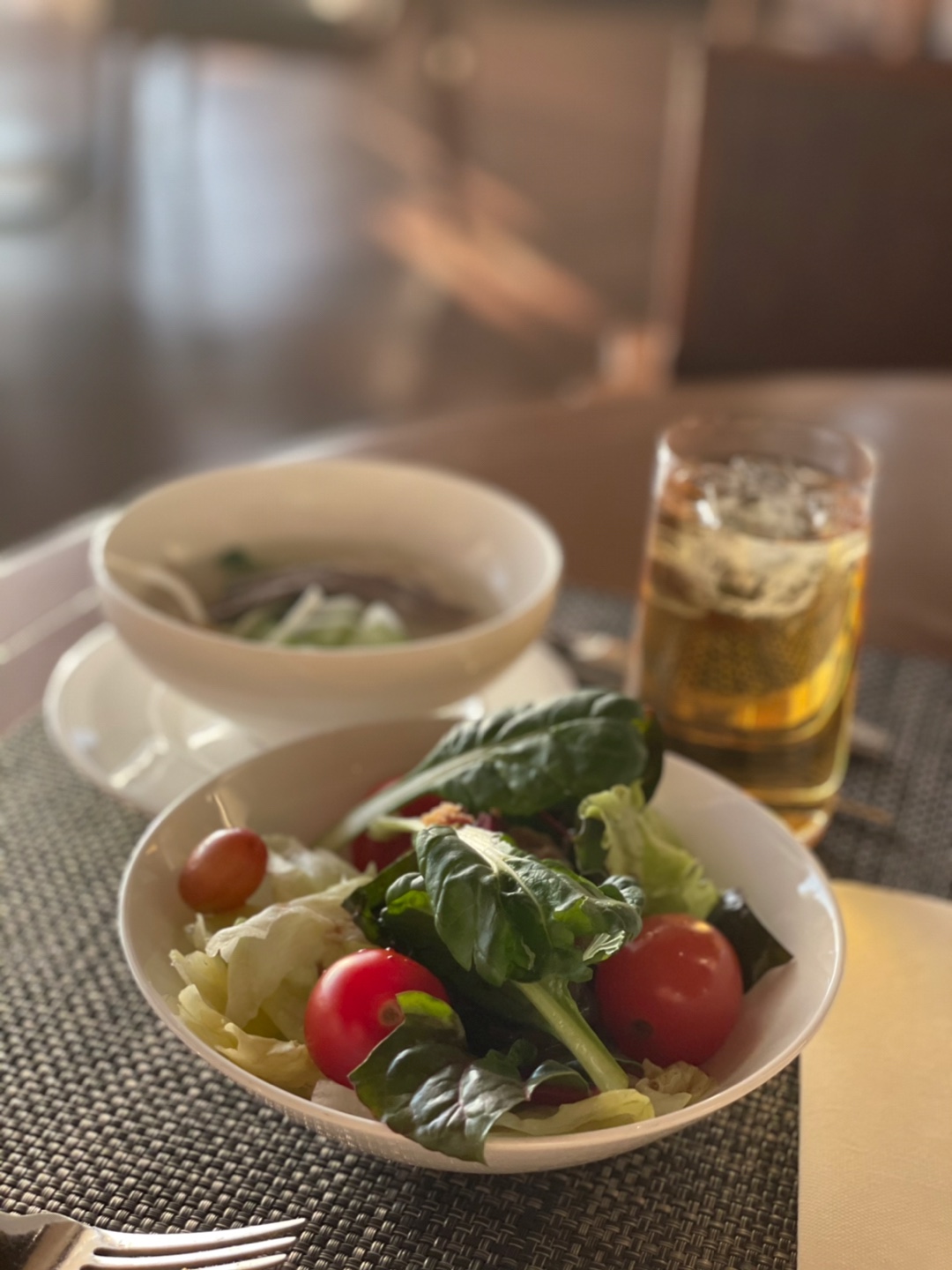 역시 아침은 사과죠. 샐러드와 쌀국수, 사과주스도 먹었어요.