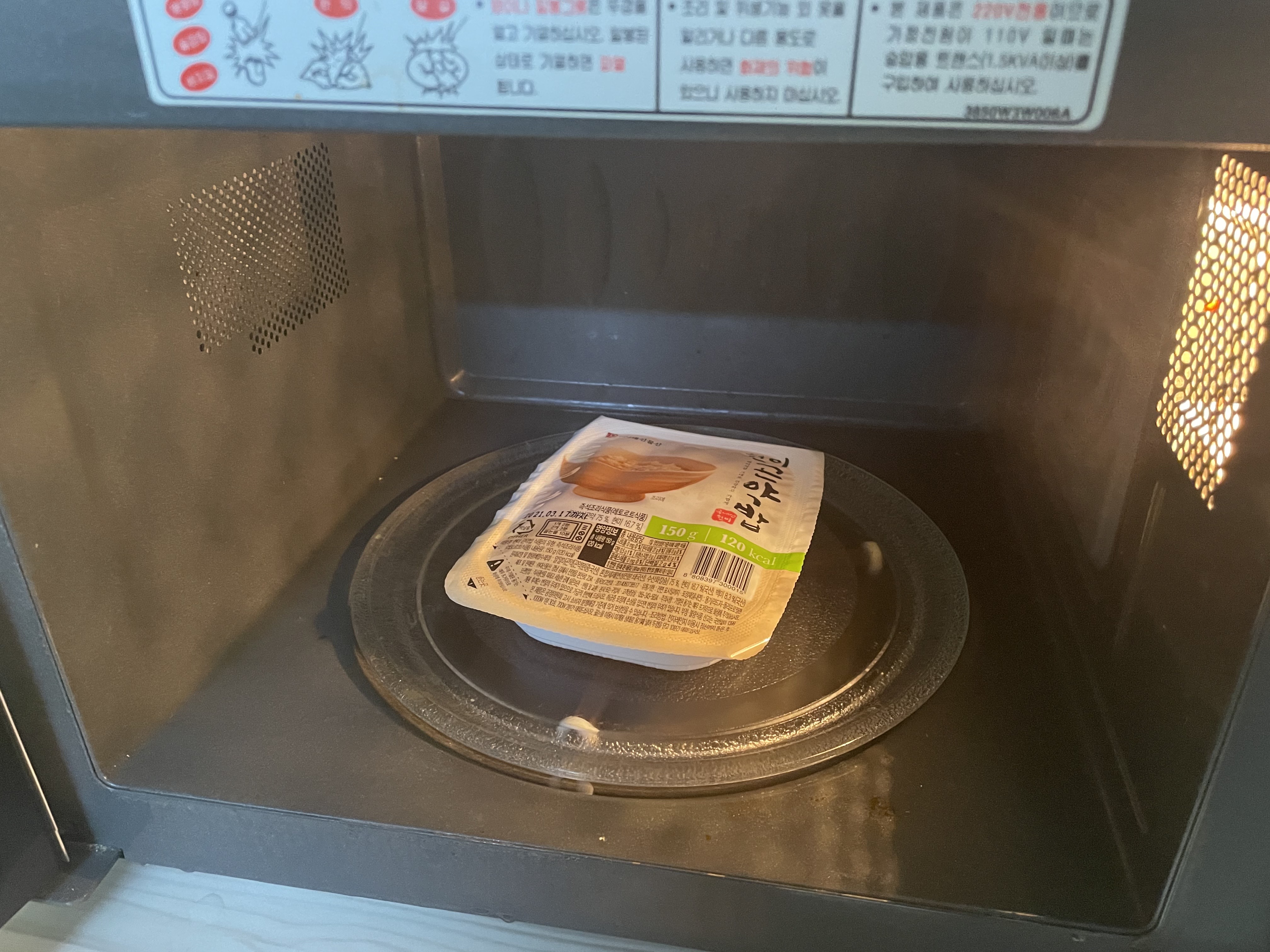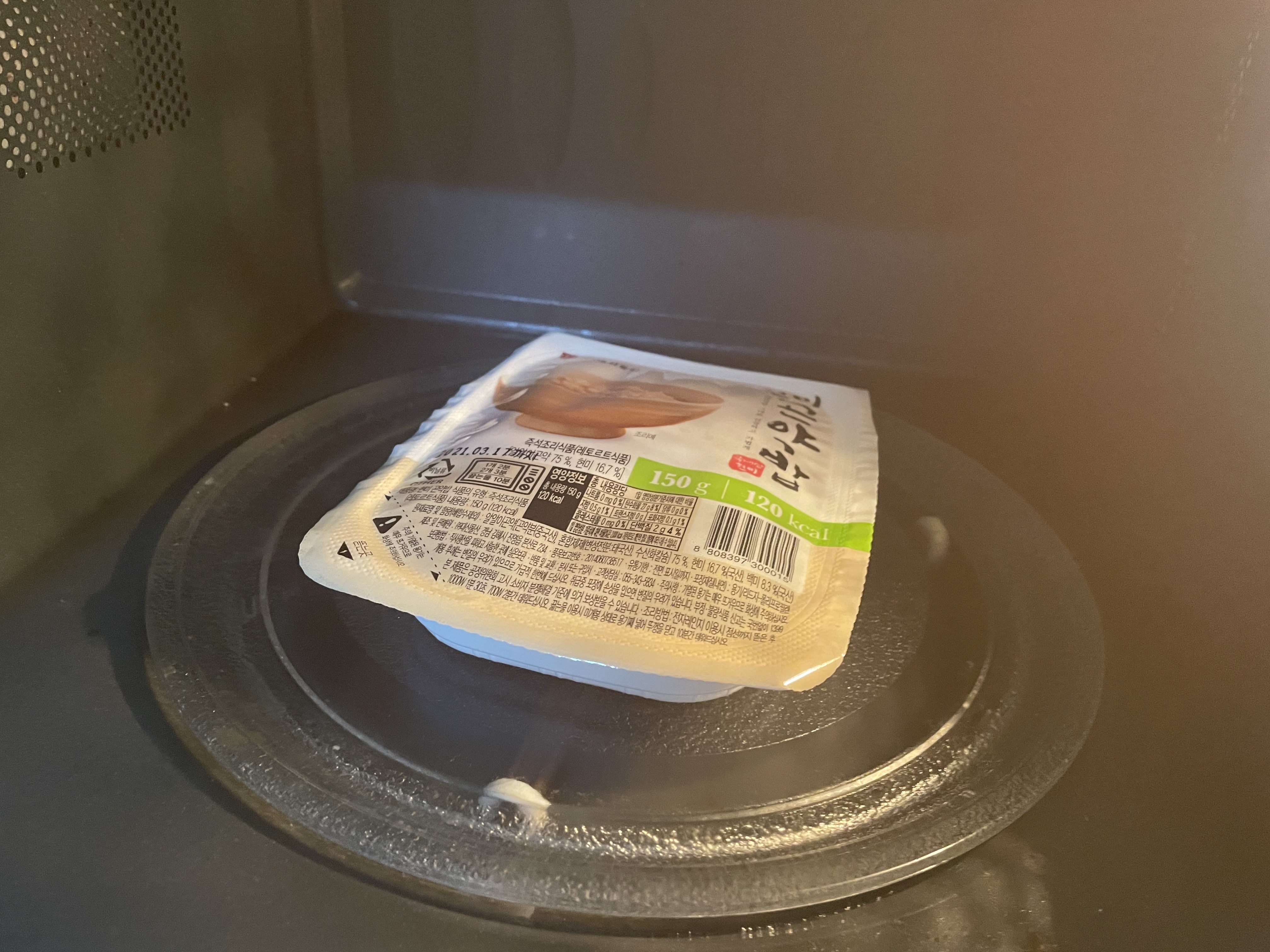 저는 전자레인지에 데워먹는데요. 뜯는 곳을 살짝 열어 공기가 빠져나갈 수 있게 해주고