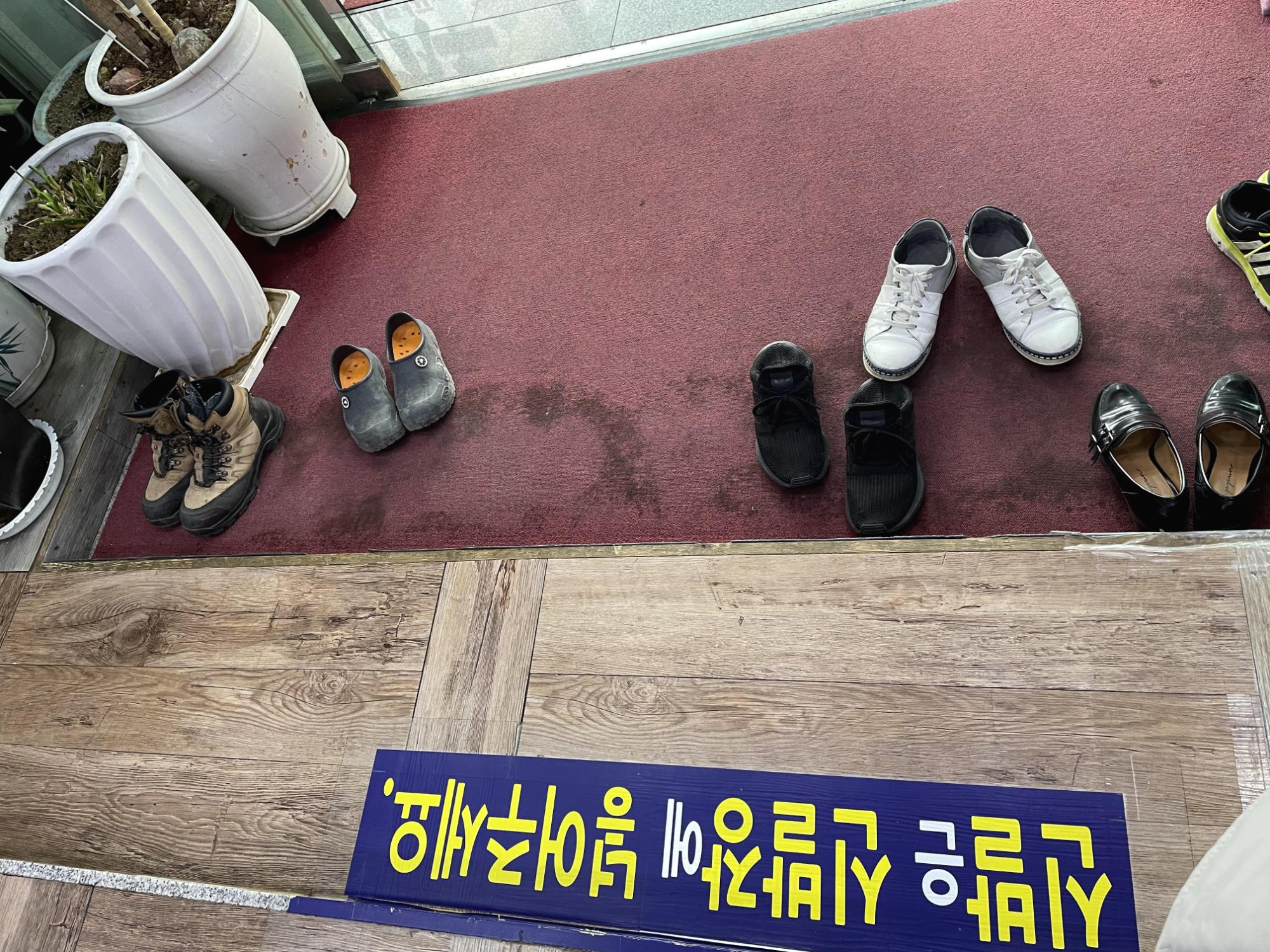 주차는 가게 옆에 경사로에 하면 되고, 신발을 벗고 들어가야 하는 곳이에요.